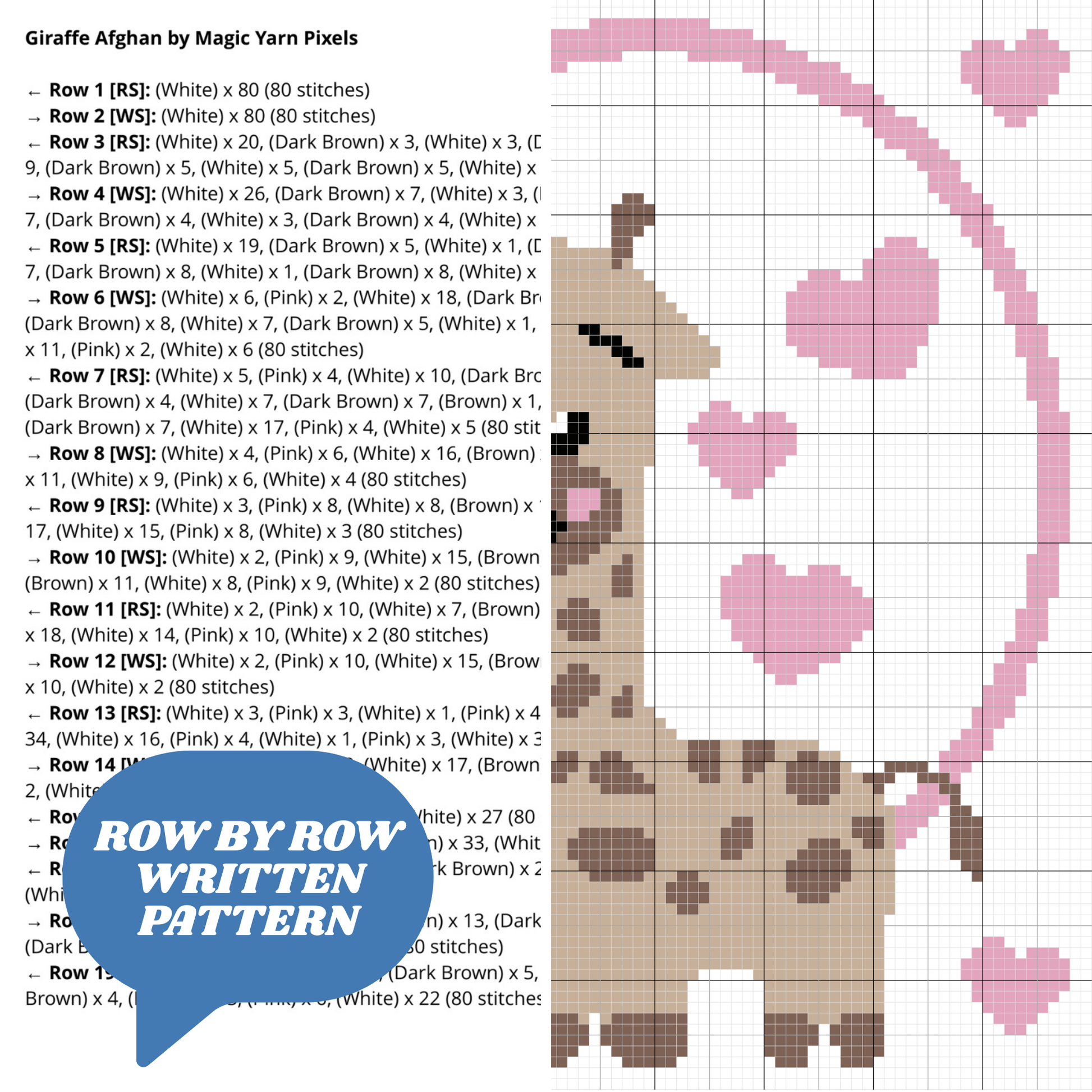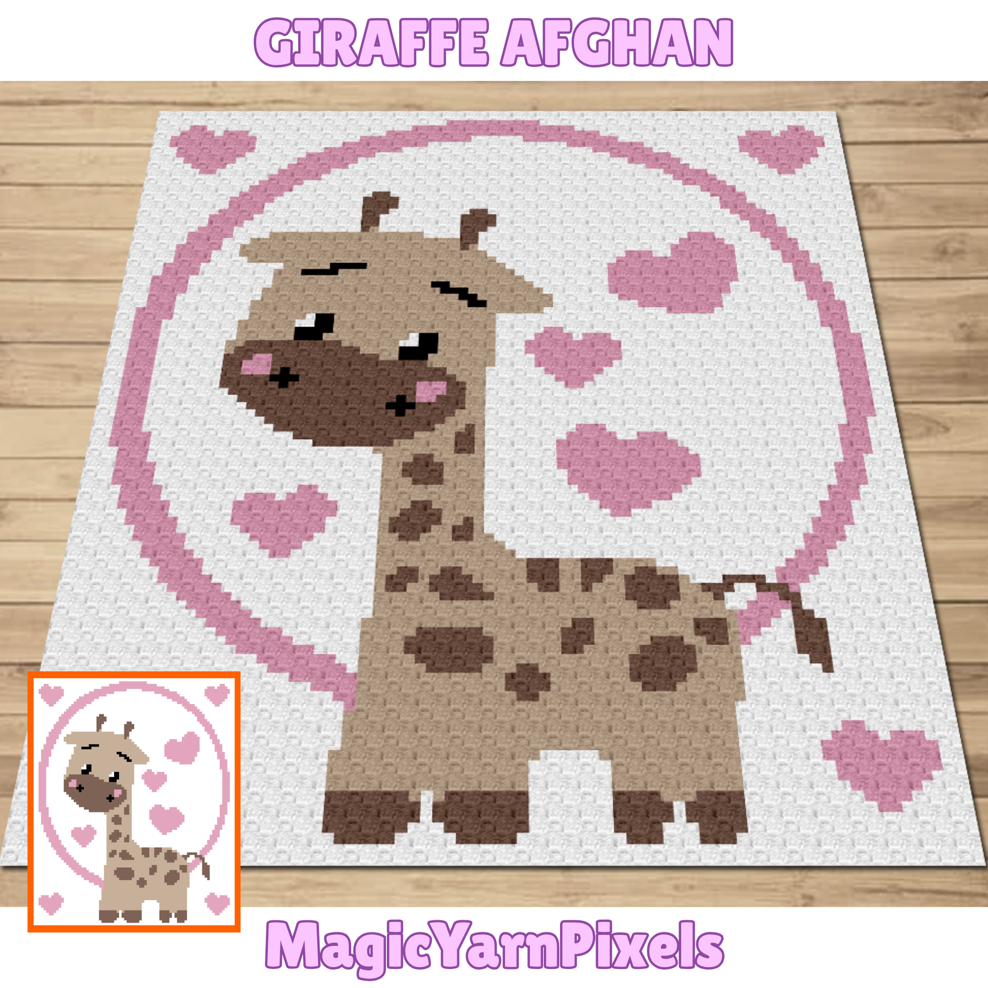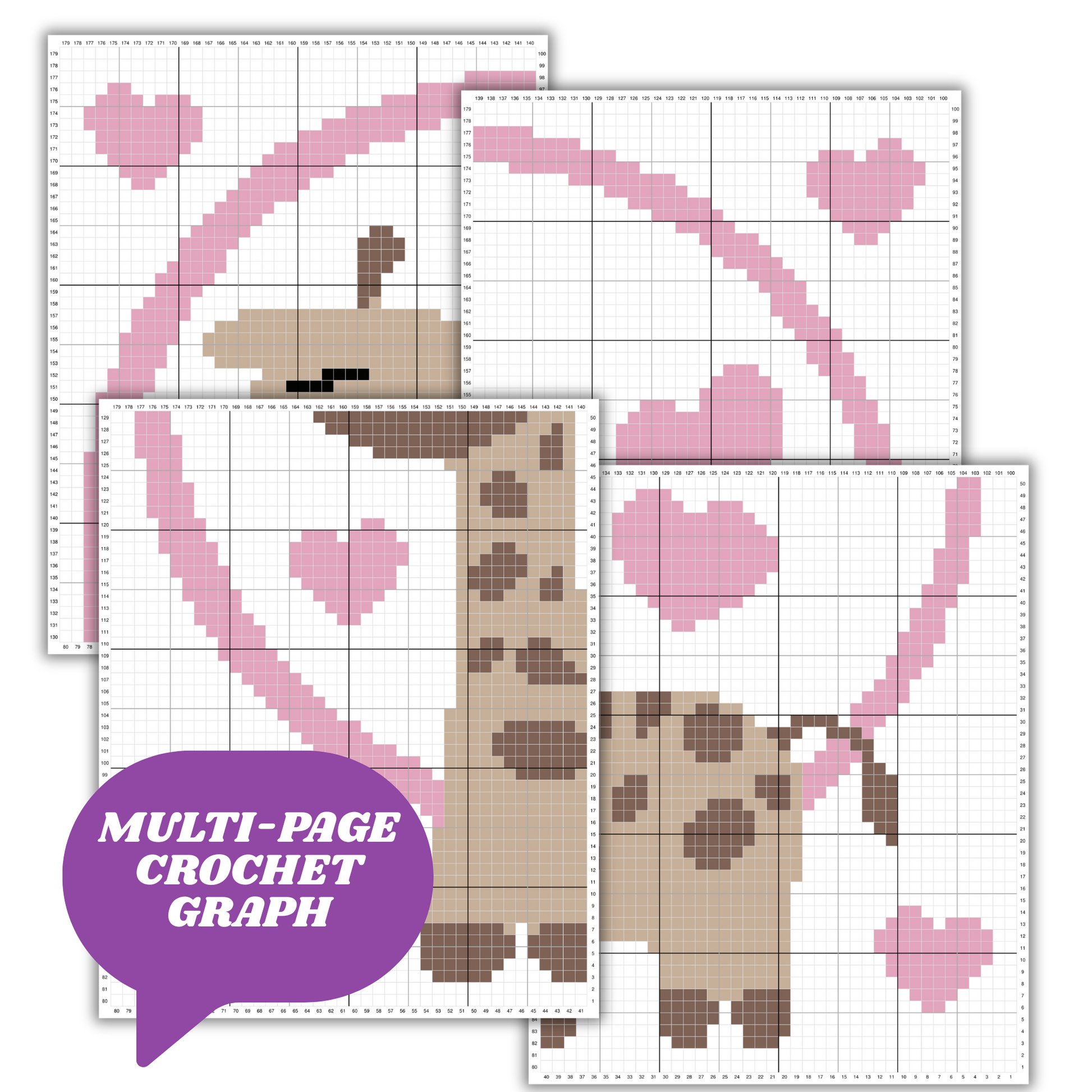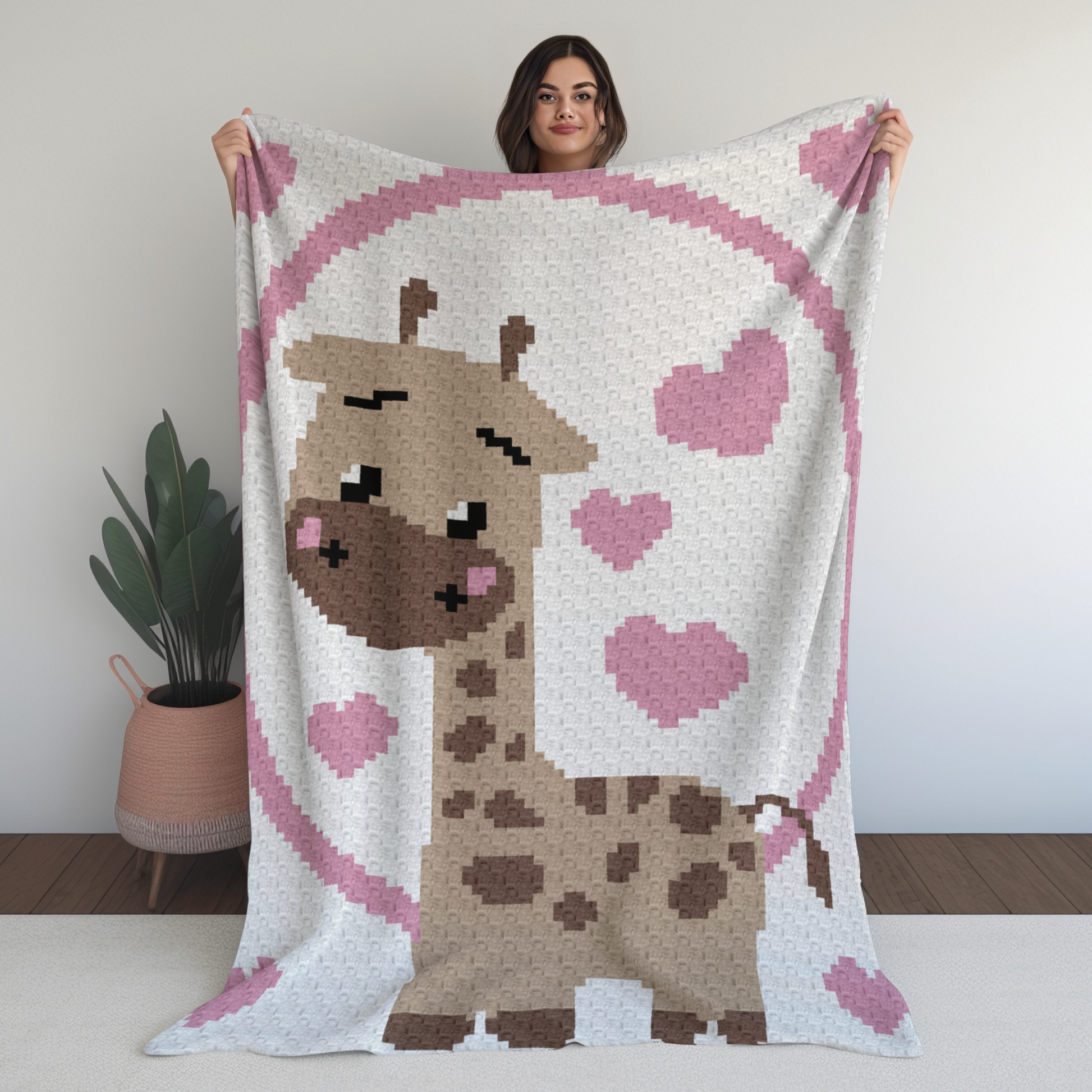 Giraffe With Hearts Graph + Written Pattern For C2C & Tapestry Crochet - Crochet Valentines Baby Blanket Pattern - C2C Jungle Themed Nursery