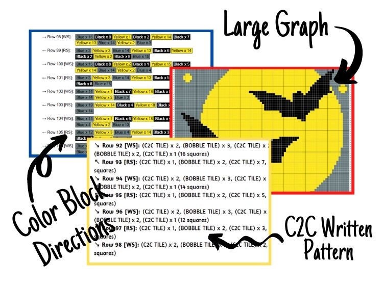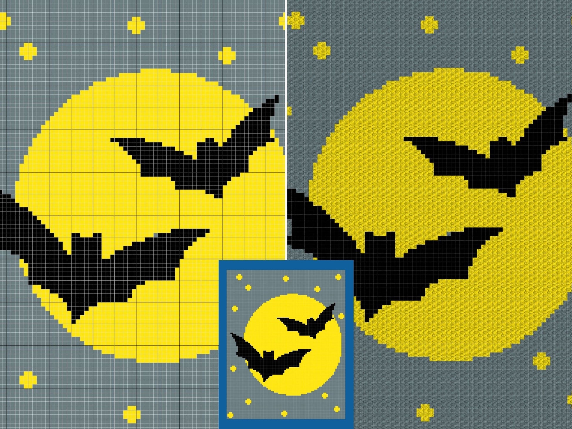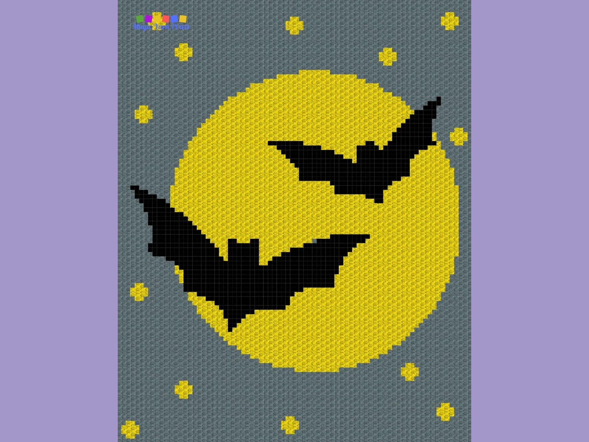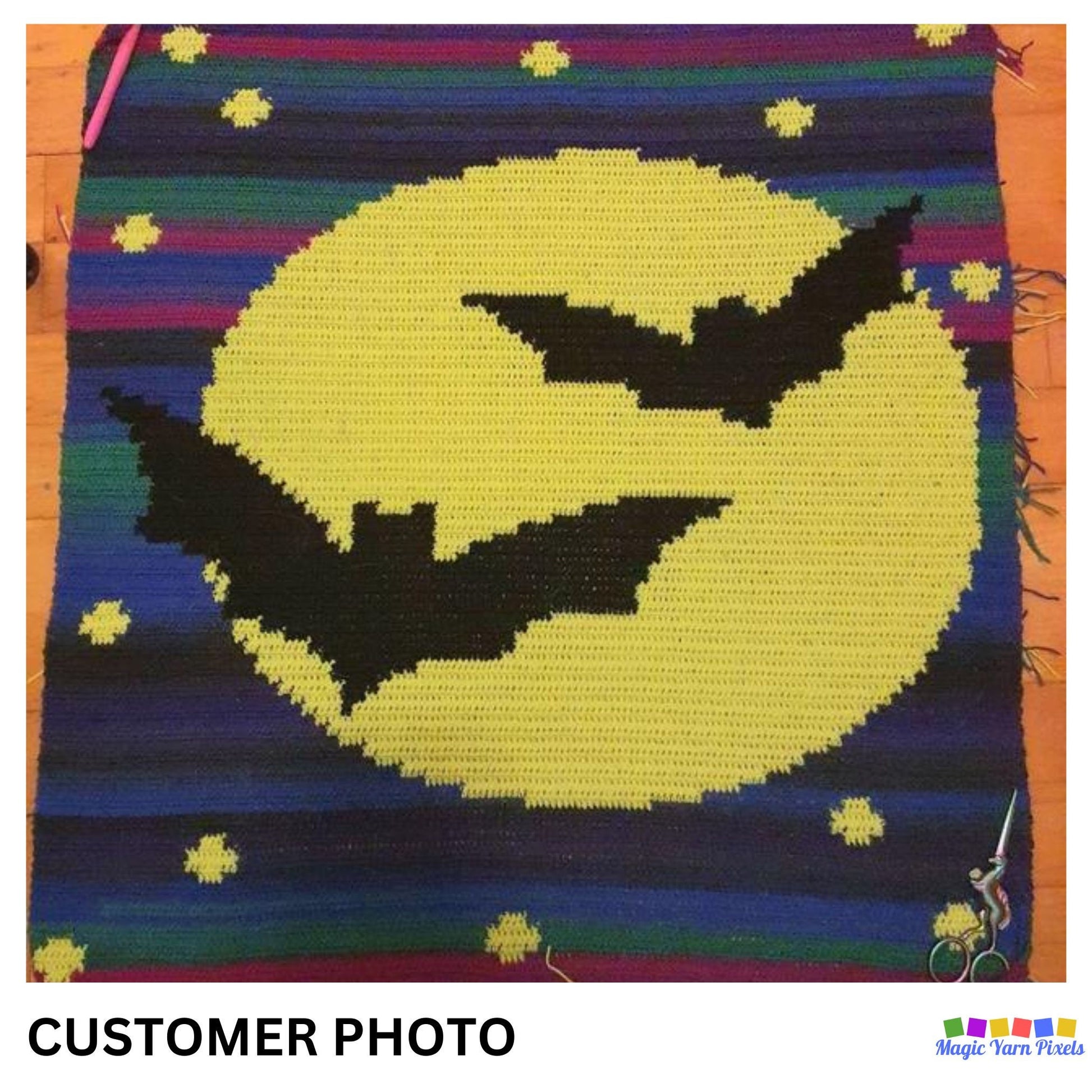 Halloween Bats In Full Moon Graph + Written Pattern For C2C & Tapestry Crochet - Halloween C2C Pattern - Bat C2C Blanket - Halloween Blanket