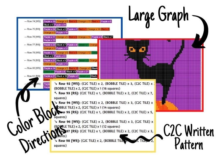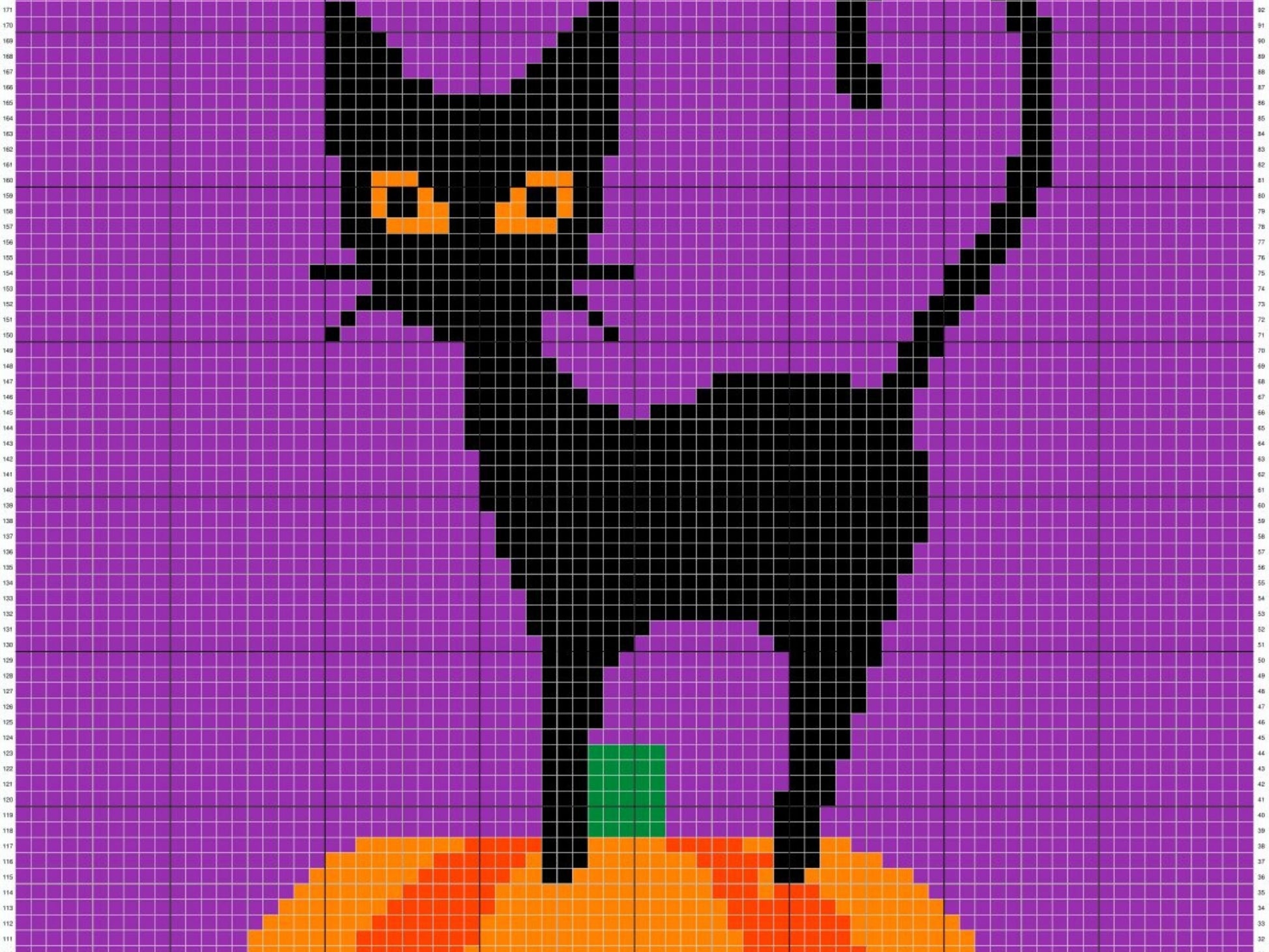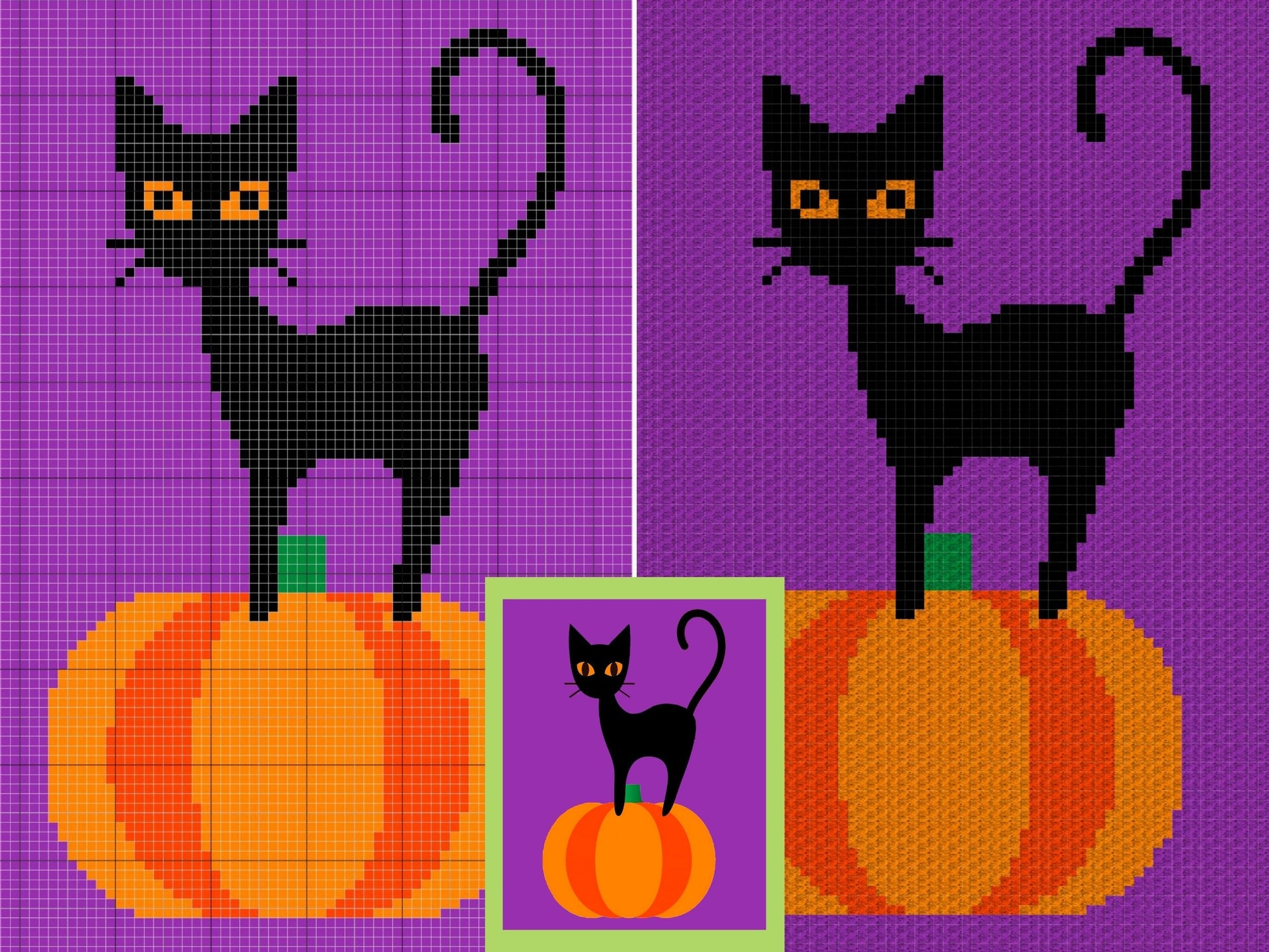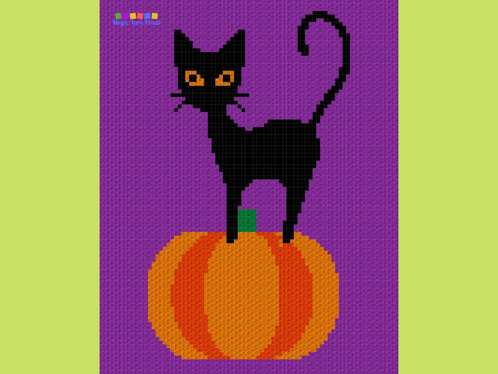 Halloween Black Cat On Pumpkin Graph + Written Pattern For C2C & Tapestry Crochet - Halloween Cat C2C Pattern Cat Crochet Blanket Cat Afghan