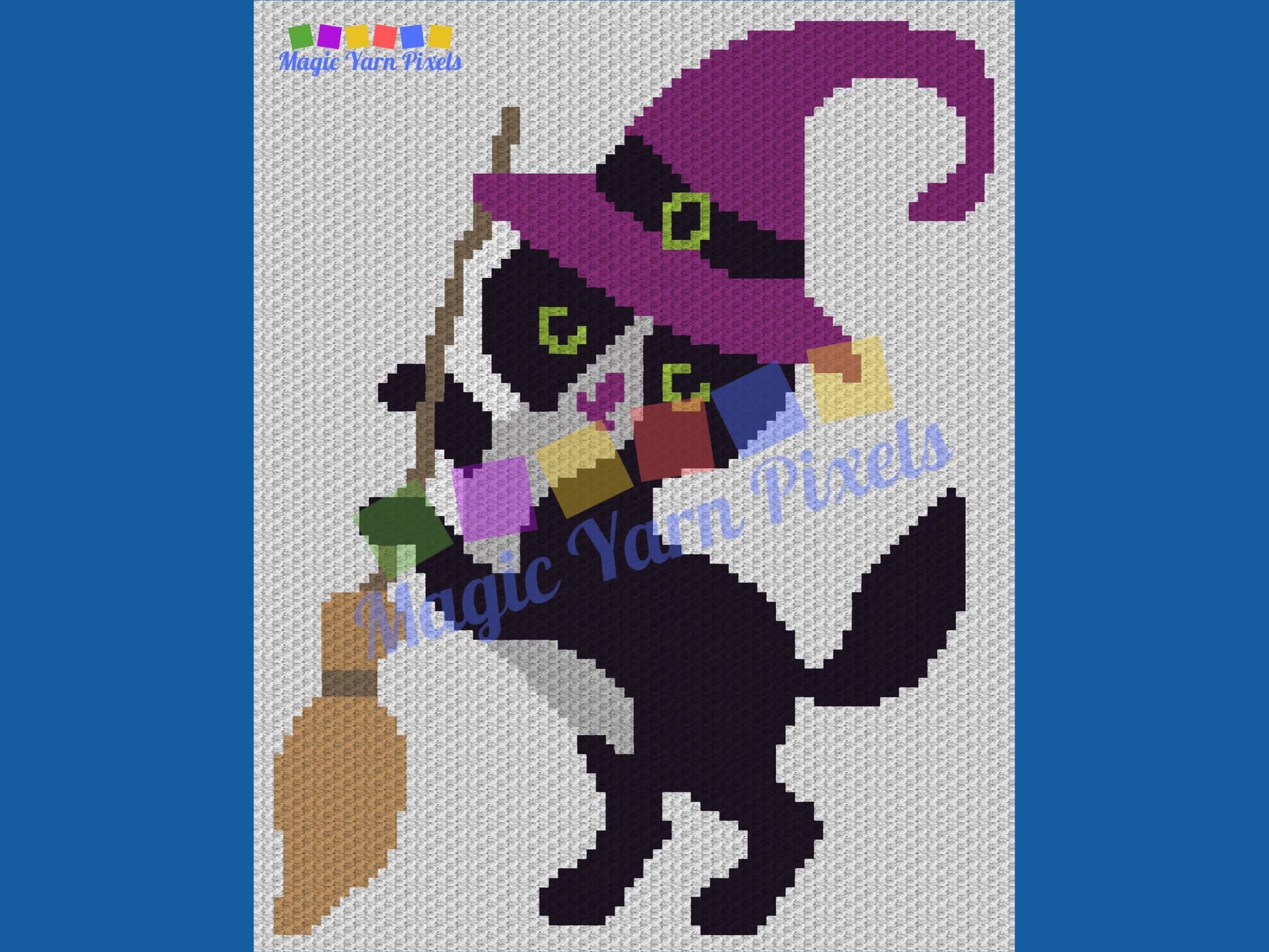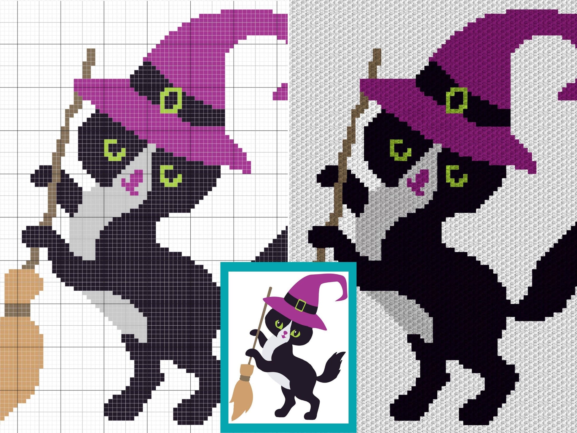 Halloween Black Cat Witch Graph and Pattern C2C & Tapestry Crochet- Cat Blanket Graphgan Crochet Spooky Blanket - C2C Halloween Blanket Gift