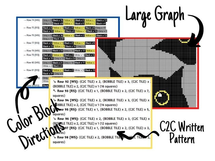 Halloween Black Cats Graph + Written Pattern For C2C & Tapestry Crochet - Black Cat C2C Crochet - Crochet Halloween Blanket - Animal Blanket