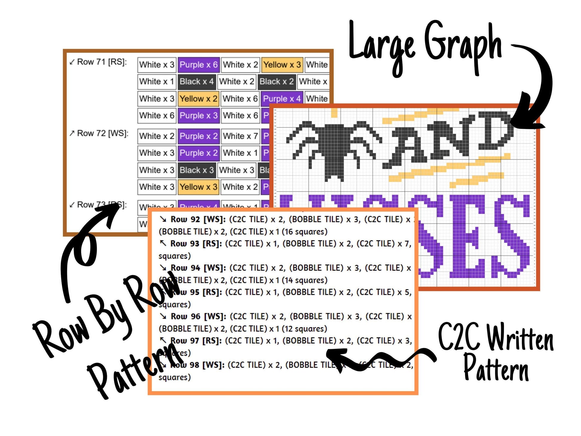 Halloween Bugs & Kisses Graph and Pattern C2C and Tapestry Crochet - Halloween C2C Graphgan - Crochet Halloween Blanket - C2C Spooky Blanket