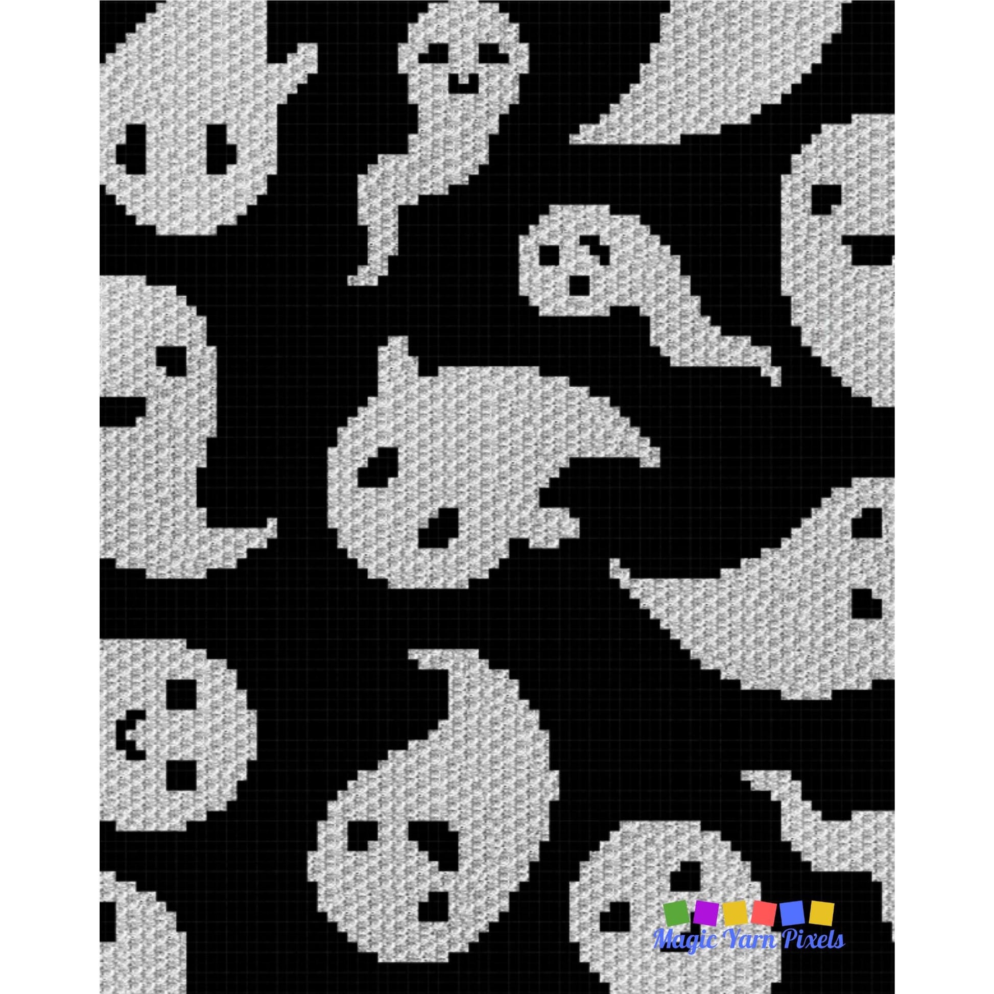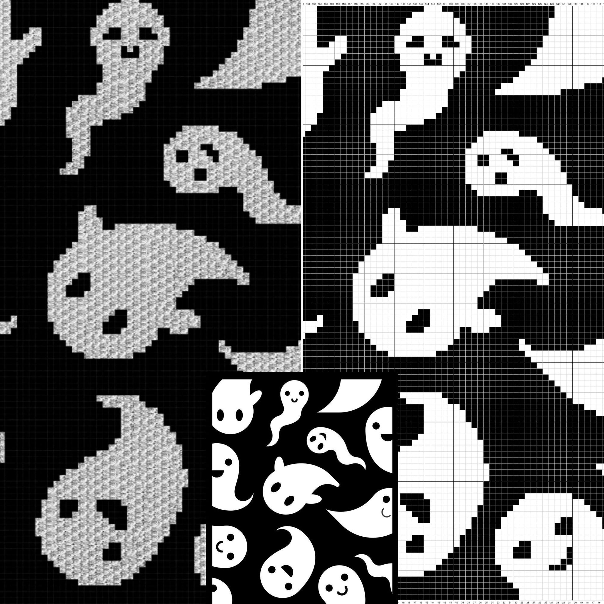 Halloween Ghosts Graph + Written Pattern For C2C & Tapestry Crochet - Crochet Ghost Pattern - Halloween Ghosts C2C Crochet Blanket Baby Gift