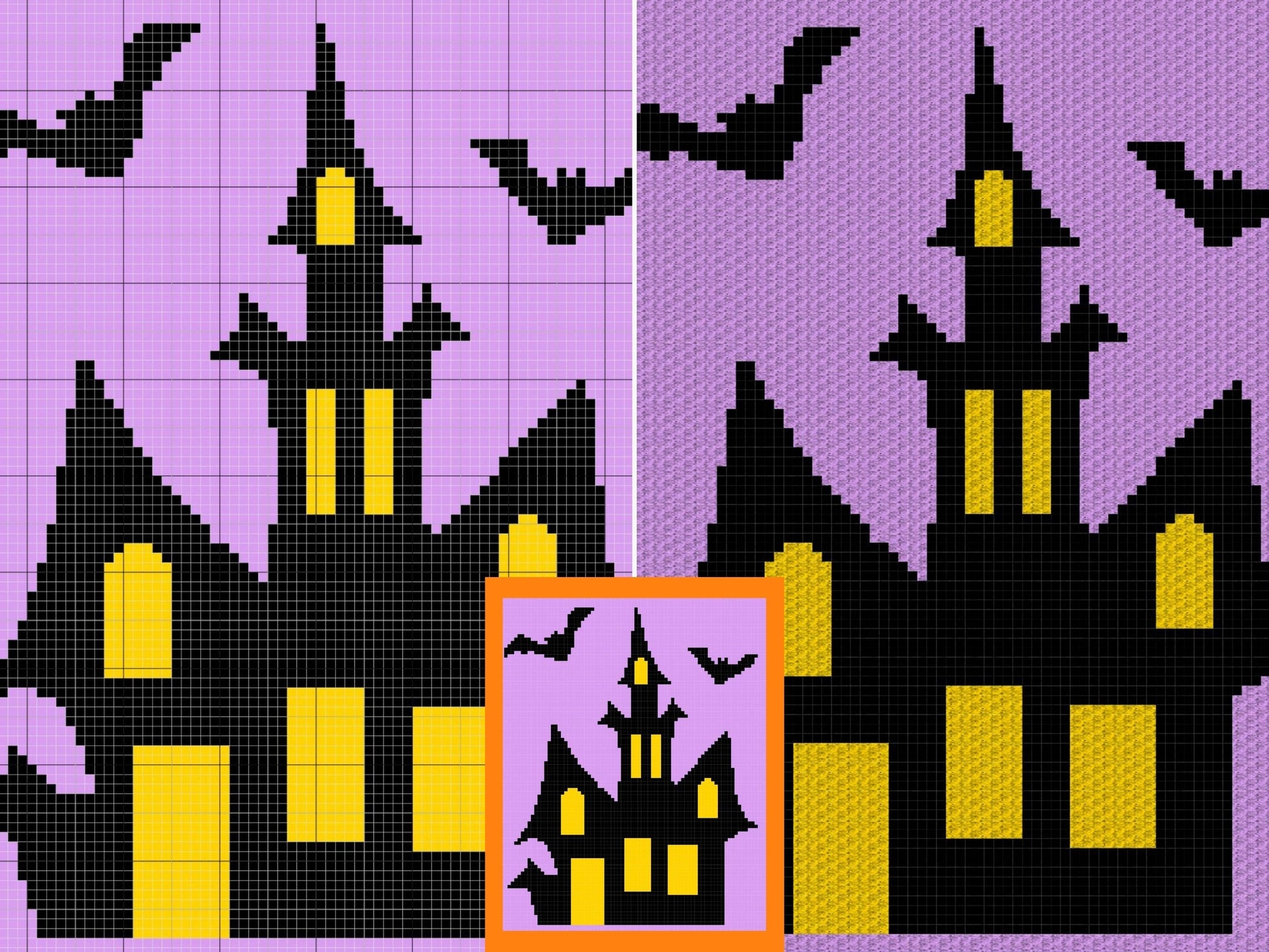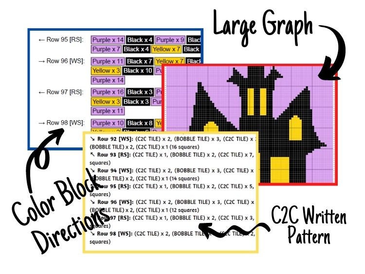 Halloween Haunted Mansion Graph + Written Pattern For C2C & Tapestry Crochet - Haunted House Crochet Pattern - Crochet Halloween C2C Blanket