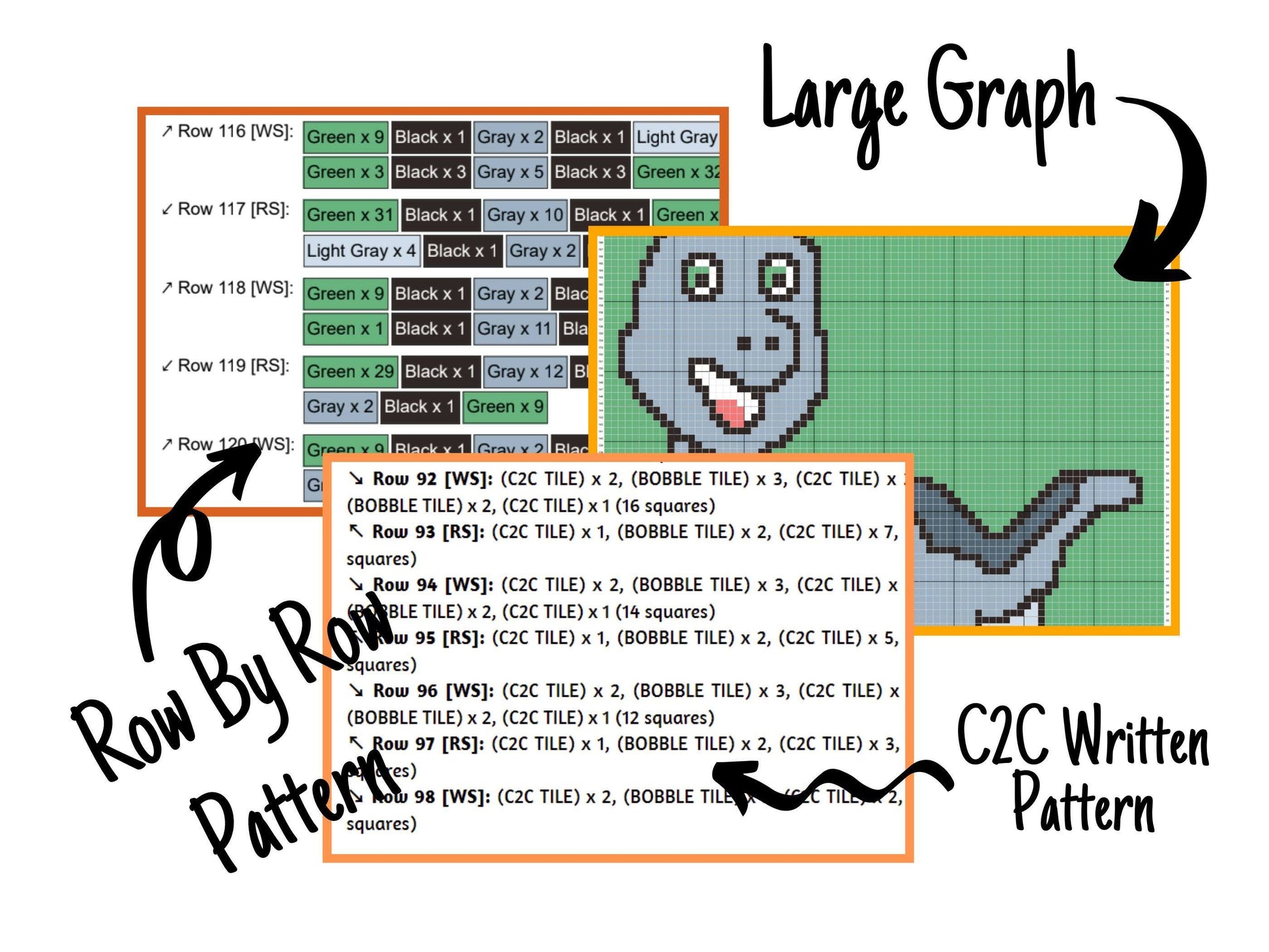 Happy Baby Dino Graph and Pattern C2C & Tapestry Crochet - C2C Baby Dinosaur Graphgan Crochet Dino Blanket - C2C Dinosaur Blanket Baby Gifts