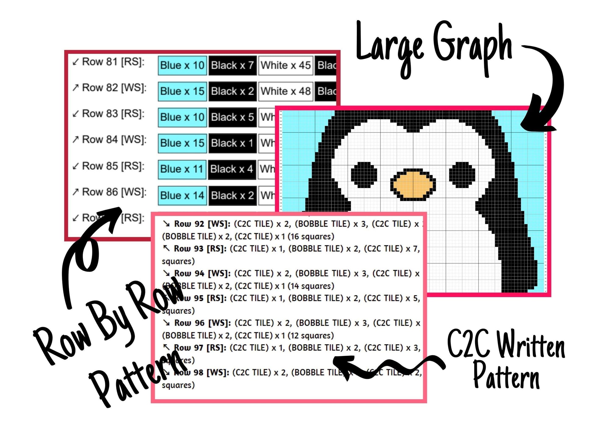 Happy Baby Penguin Graph and Pattern C2C & Tapestry Crochet -Penguin Love Graphgan Penguin Crochet C2C Blanket-Crochet Penguin C2C Gift Baby