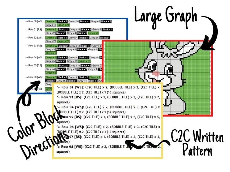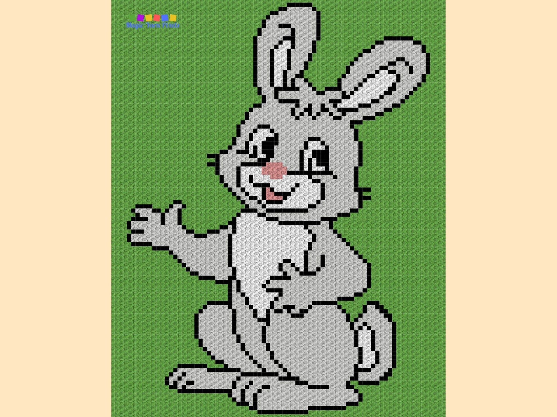 Happy Bunny Graph + Written Pattern For C2C & Tapestry Crochet - Crochet Bunny C2C Graphgan - Crochet Bunny Blanket - Animal Baby Blanket