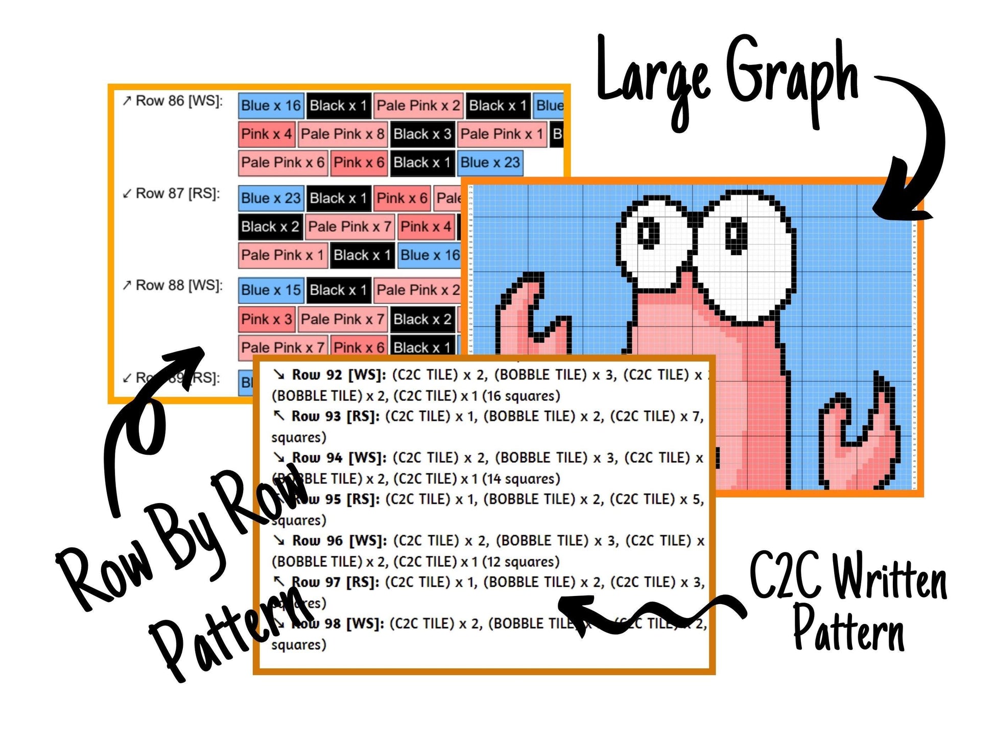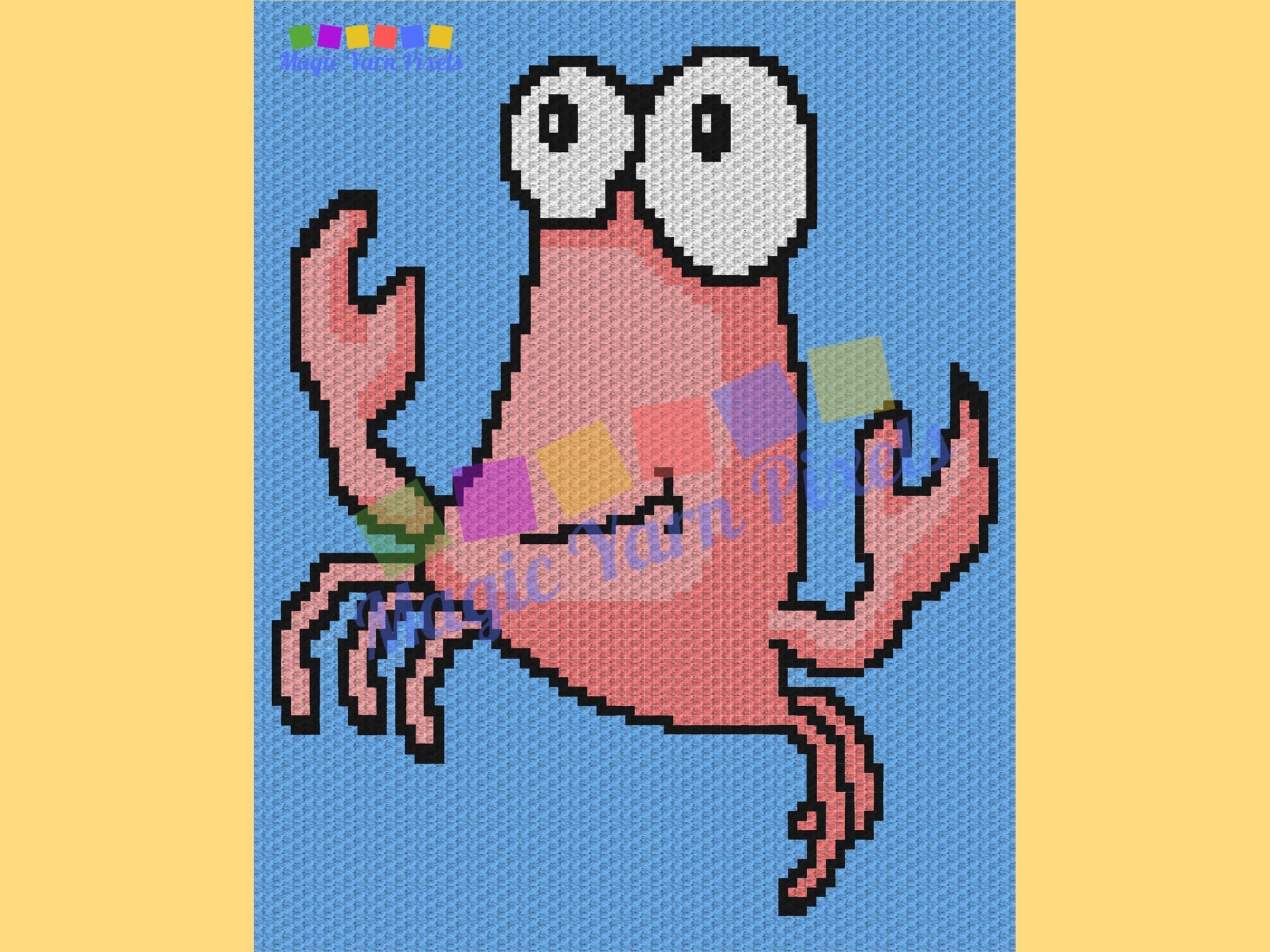 Happy Crab Graph and Pattern C2C & Tapestry Crochet - C2C Crochet Crab Graphgan Ocean Animals Crochet Blanket - C2C Beach Blanket Gifts Baby