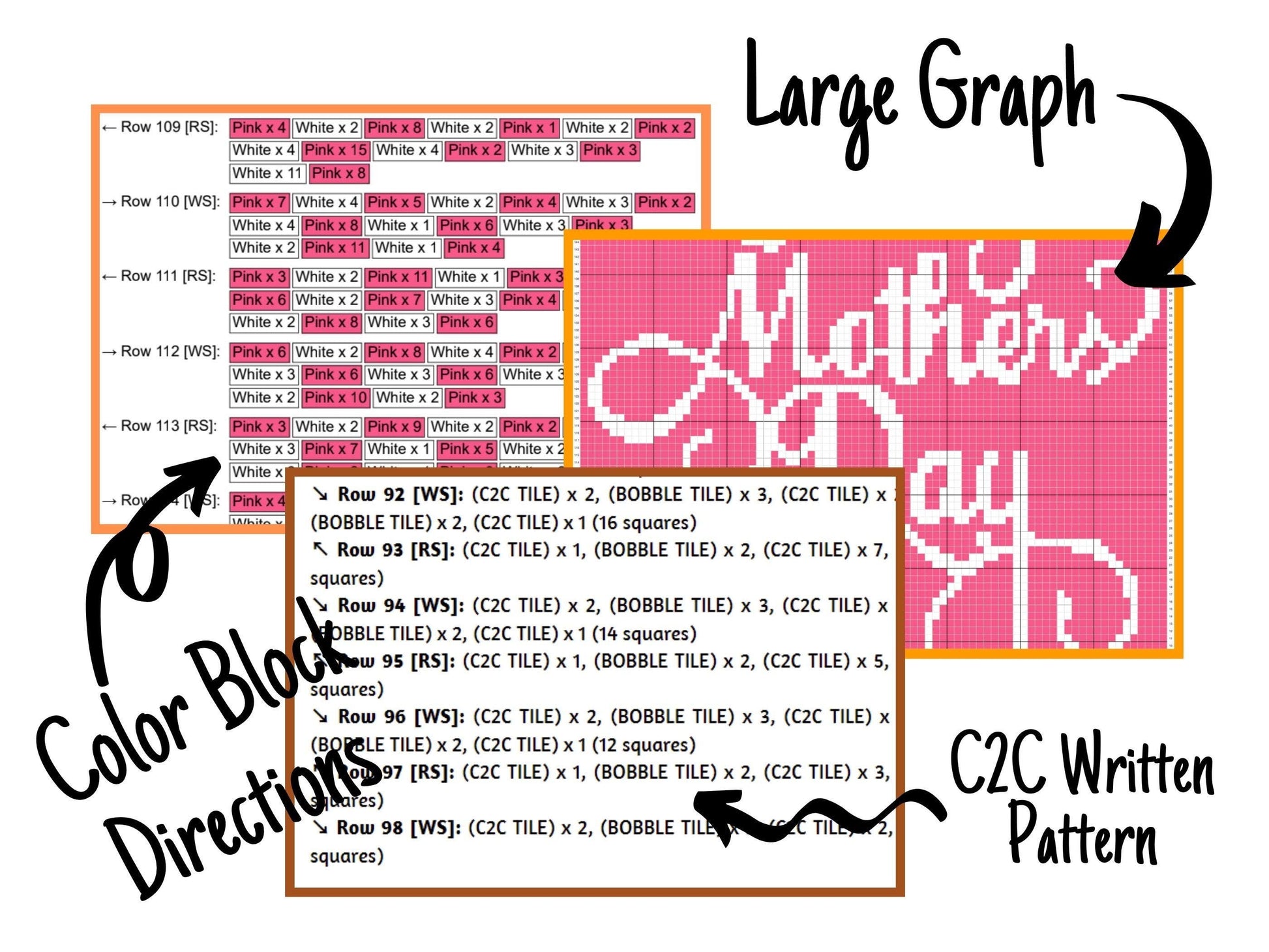 Happy Mother's Day Graph & Pattern C2C Tapestry Crochet - Mom Blanket Graphgan- Gift For Mom Crochet Blanket- C2C Mothers Day Blanket Gift