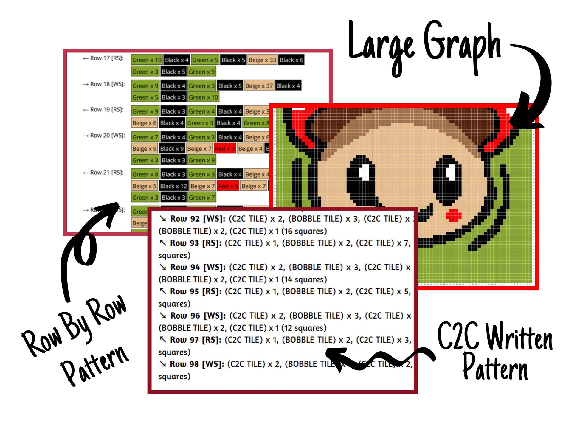- the written c2c pattern (starts from the lower right corner)
