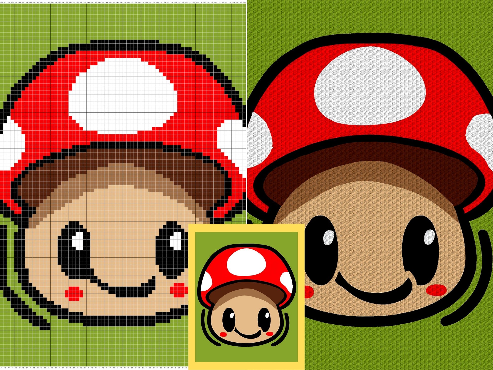 Happy Mushroom Graph & Pattern C2C + Tapestry Crochet - Mushroom C2C Graphgans - Mushroom Crochet Blanket Pattern - C2C Mushroom Crochet