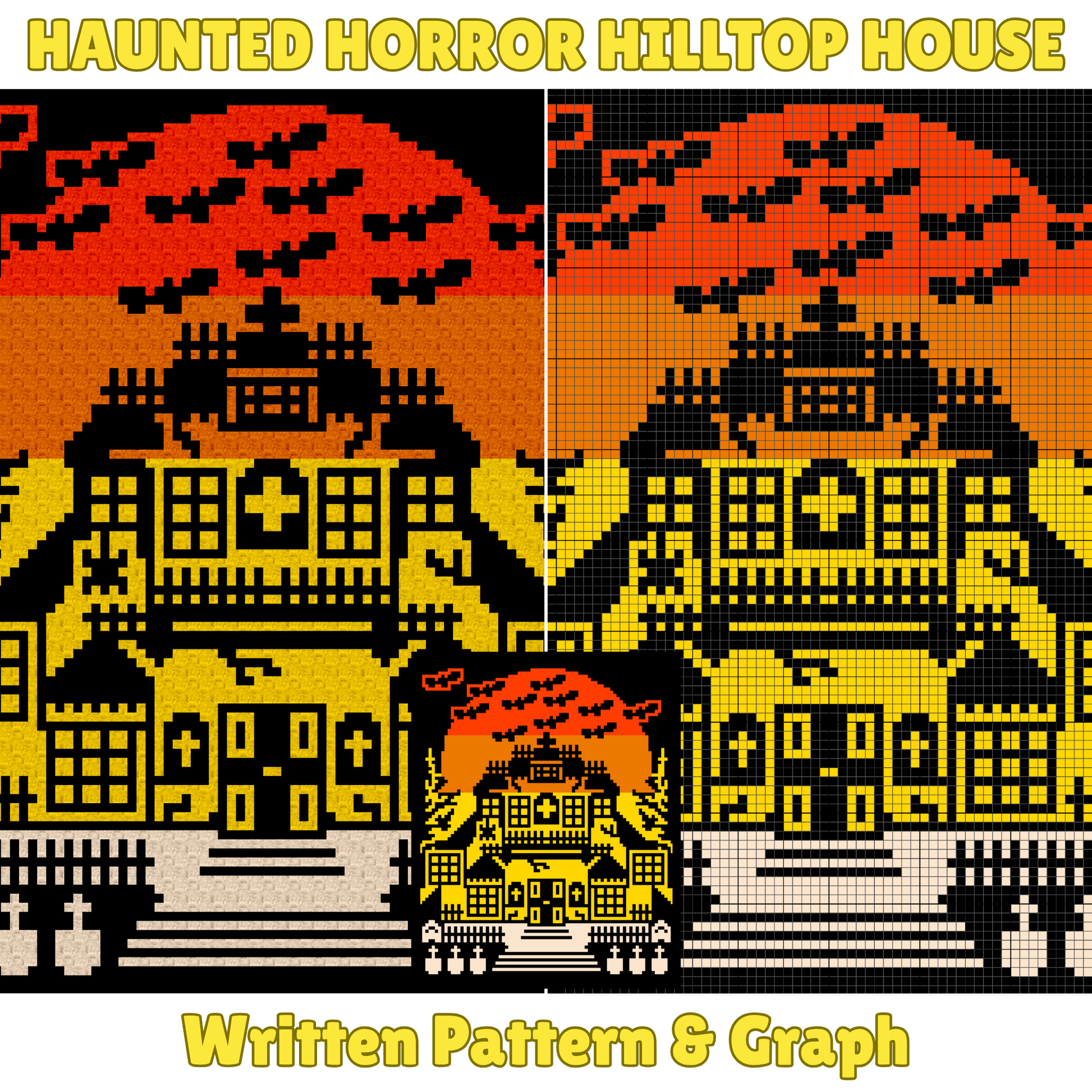 Haunted Horror Hilltop House Blanket Graph and Pattern for C2C & Tapestry Crochet | Halloween Afghan | Haunted House Spooky Halloween Decor