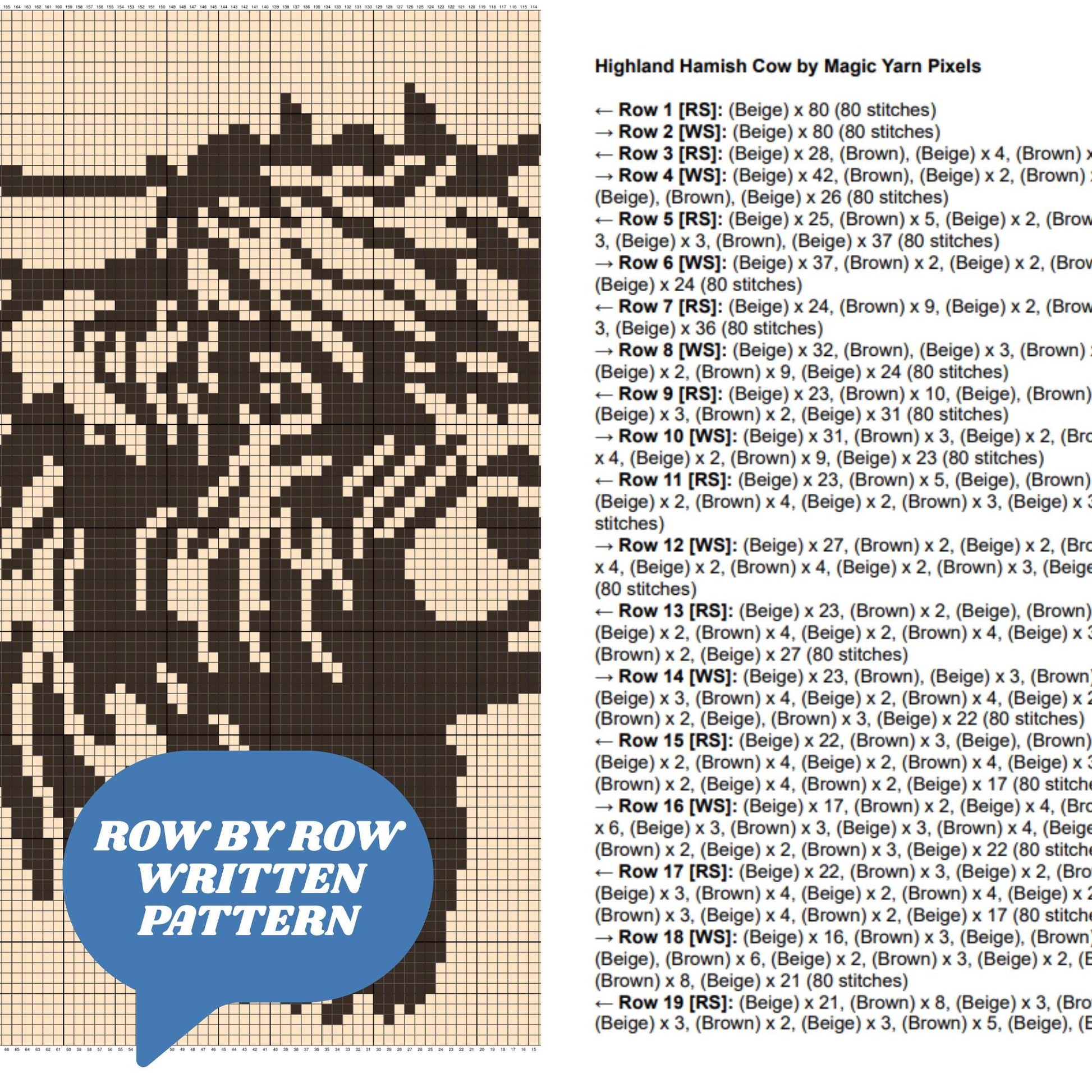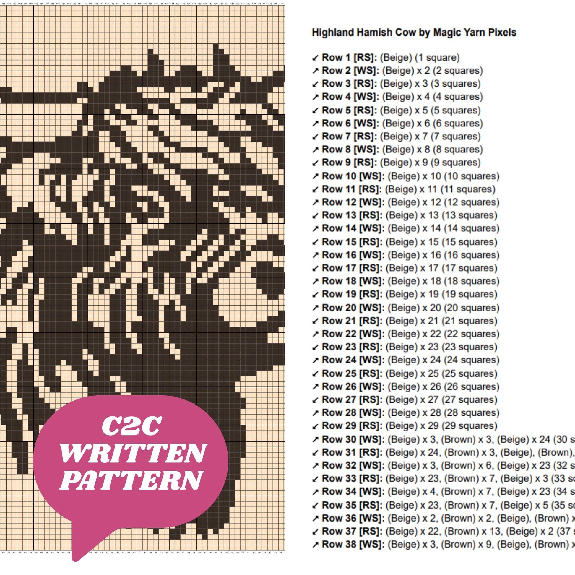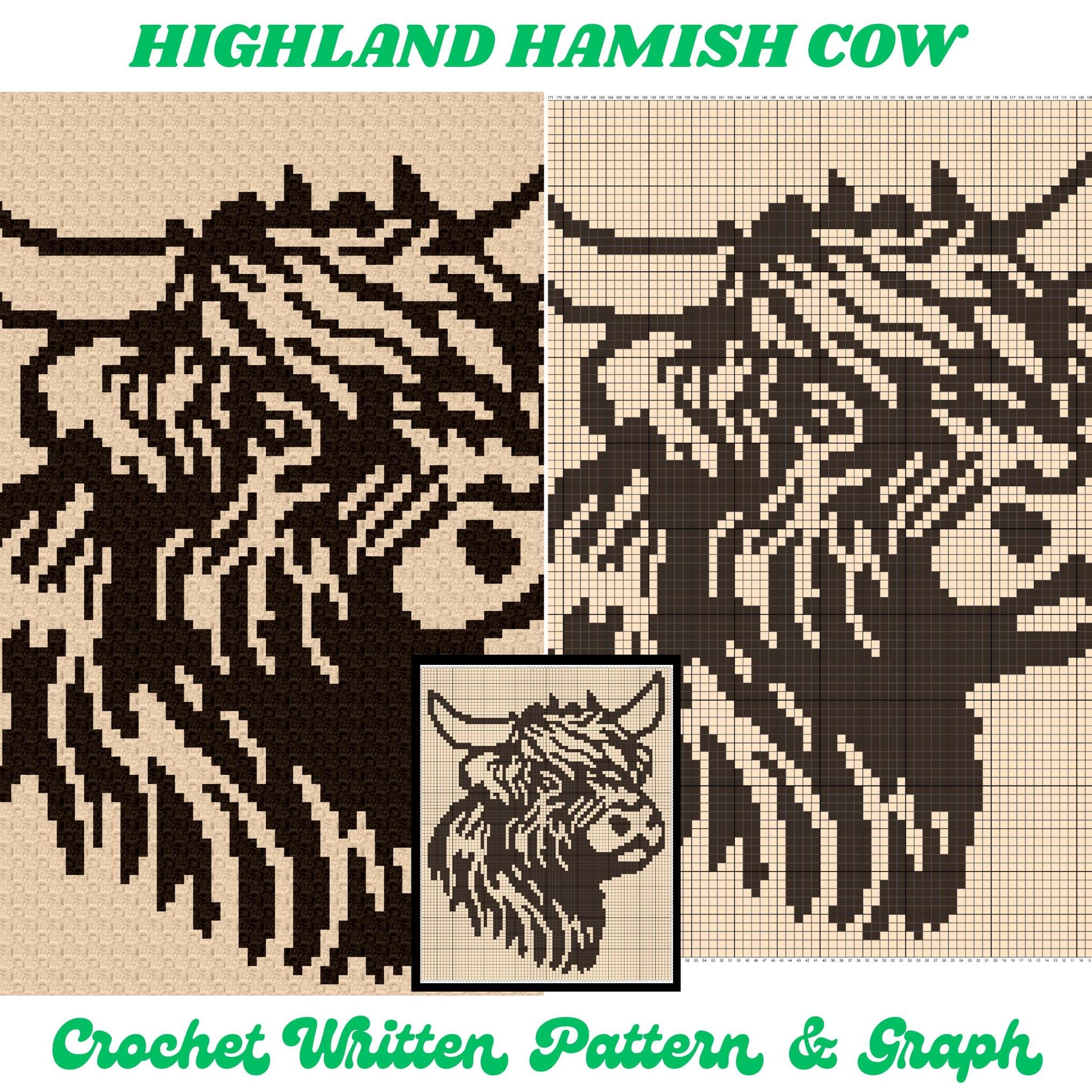 Highland Hamish Cow Crochet Graph + Written Pattern For C2C & Tapestry Crochet | Scottish Cow Afghan Farm Throw Baby Shower Gift Boy Girl