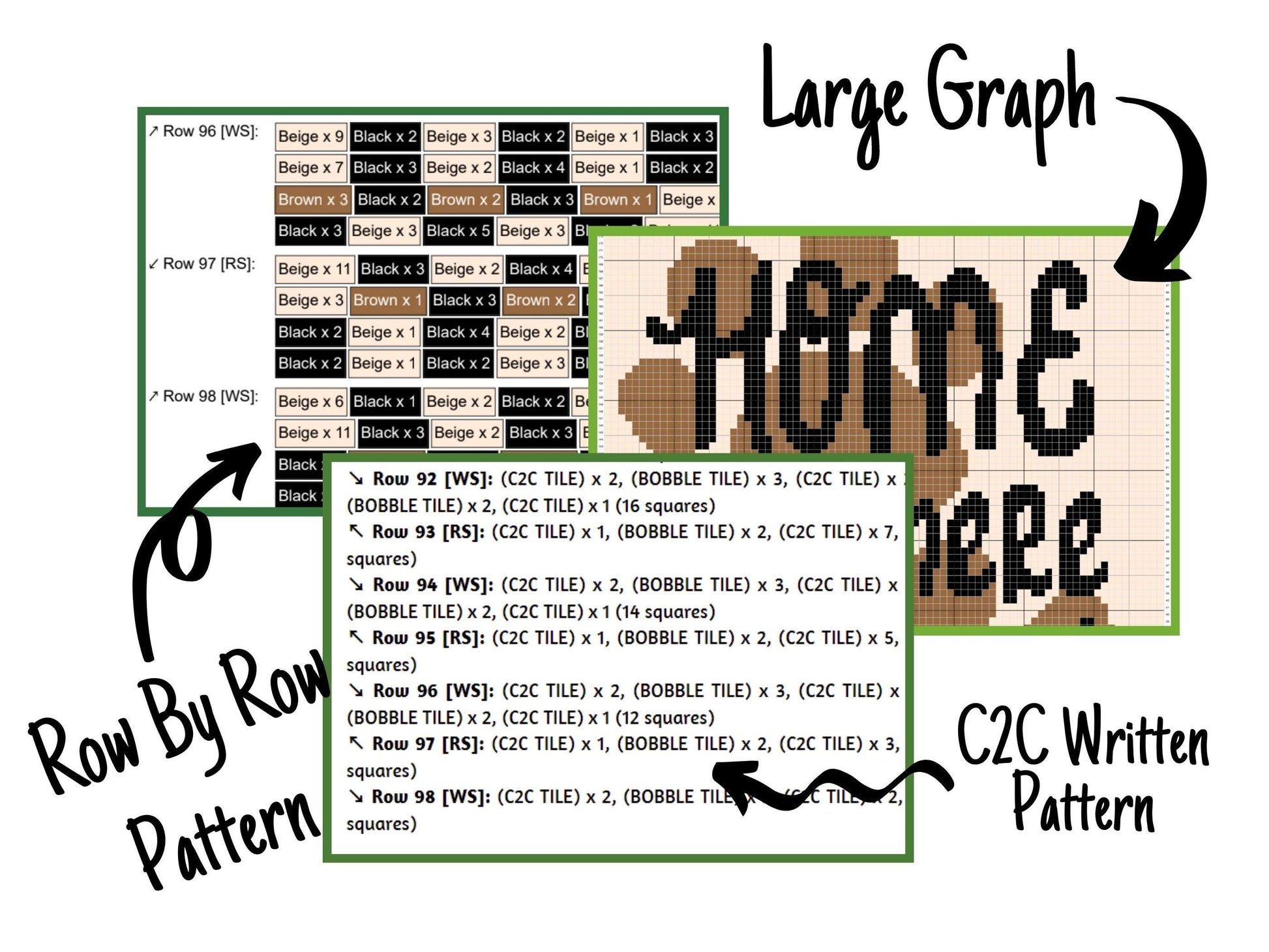 - the written c2c pattern (starts from the lower right corner)