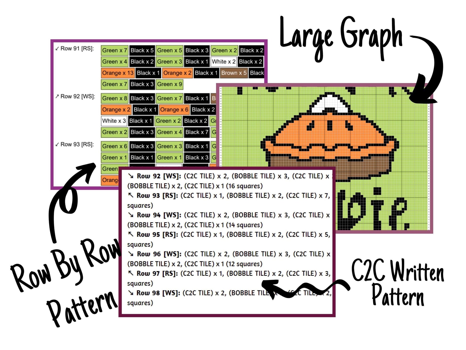 I'm Only Here For The Pie Graph and Pattern C2C & Tapestry Crochet- C2C Thanksgiving Graphgan Autumn Crochet - C2C Fall Crochet Blanket Gift