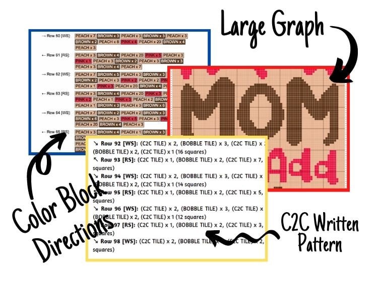 Instant Mom Just Add Coffee Graph + Written Pattern For C2C & Tapestry Crochet - Mothers Day Crochet Pattern - Crochet Mom Blanket Mom Gifts
