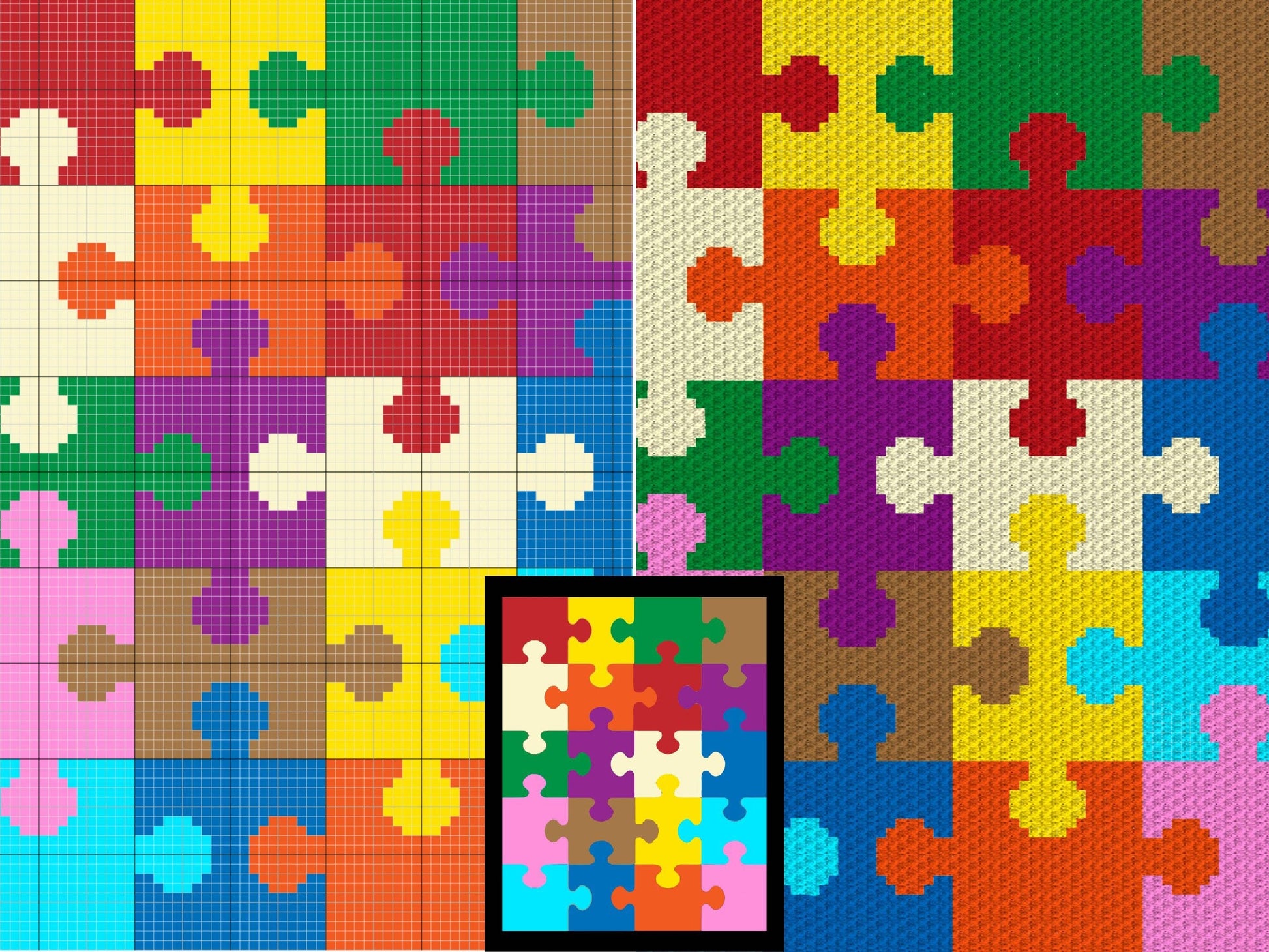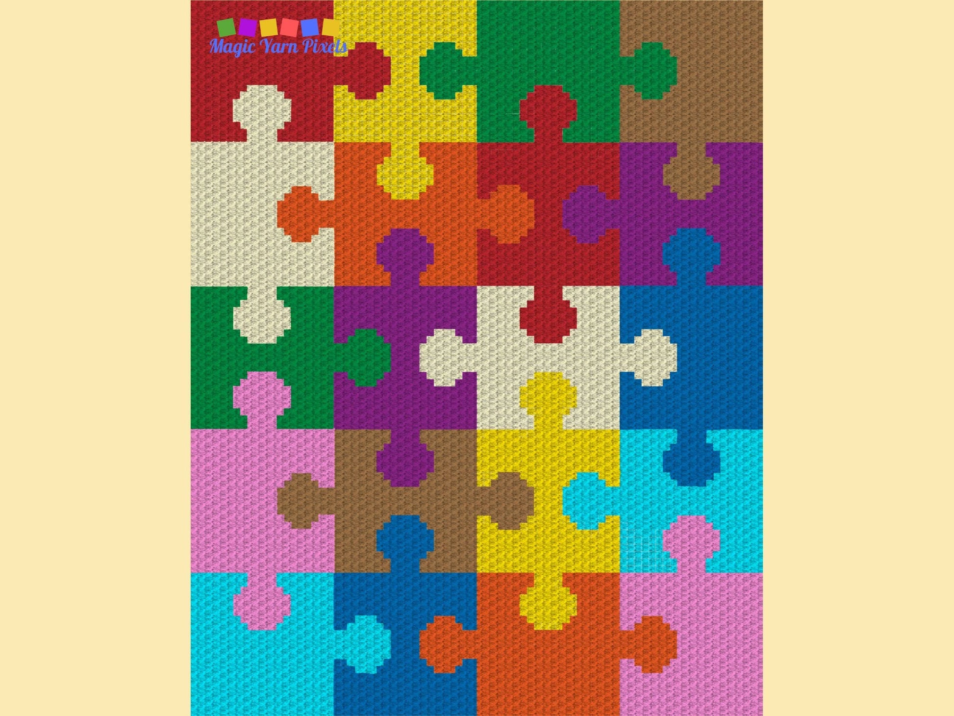 "Jigsaw Puzzle Pattern" is a DIGITAL DOWNLOAD (available in PDF format only), written in ENGLISH ONLY that can be used to crochet a blanket using various techniques, such as C2C, Mini C2C, SC, HDC, DC, Tapestry Crochet etc.