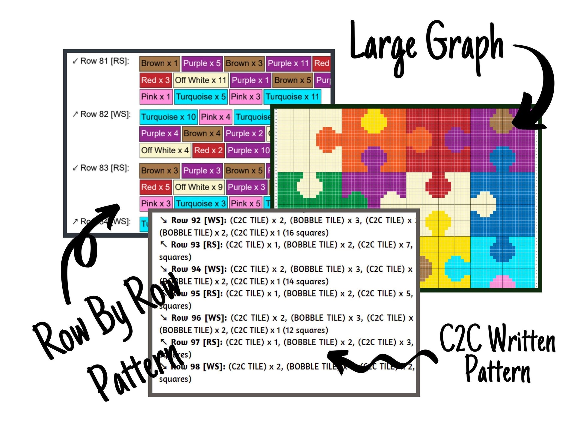 Jigsaw Puzzle Pattern Graph and Pattern C2C & Tapestry Crochet - C2C Rainbow Puzzle Graphgan - C2C Crochet Puzzle Blanket Baby Shower Gifts