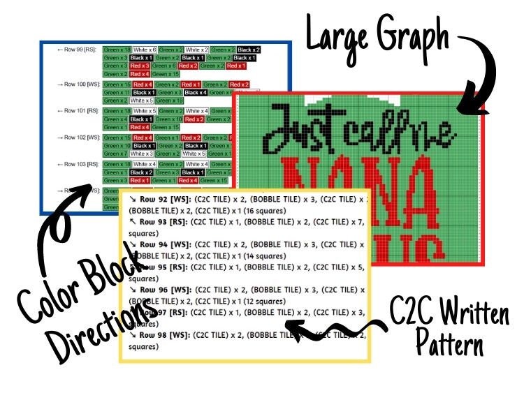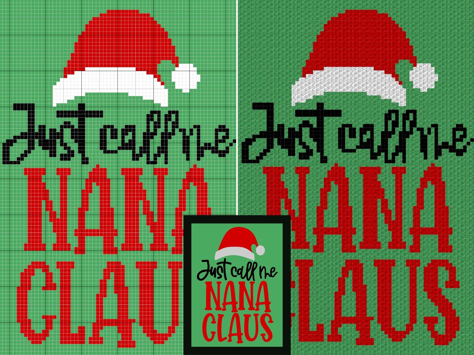 Just Call Me Nana Claus Graph + Written Pattern For C2C & Tapestry Crochet - Santa C2C Pattern - Christmas Crochet Blanket Christmas Afghan