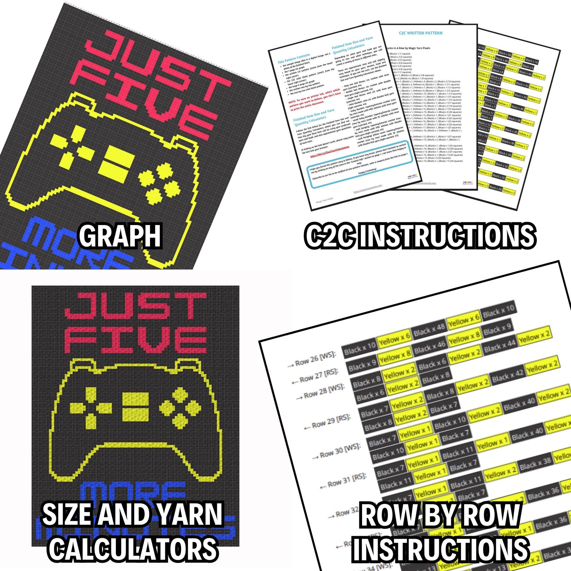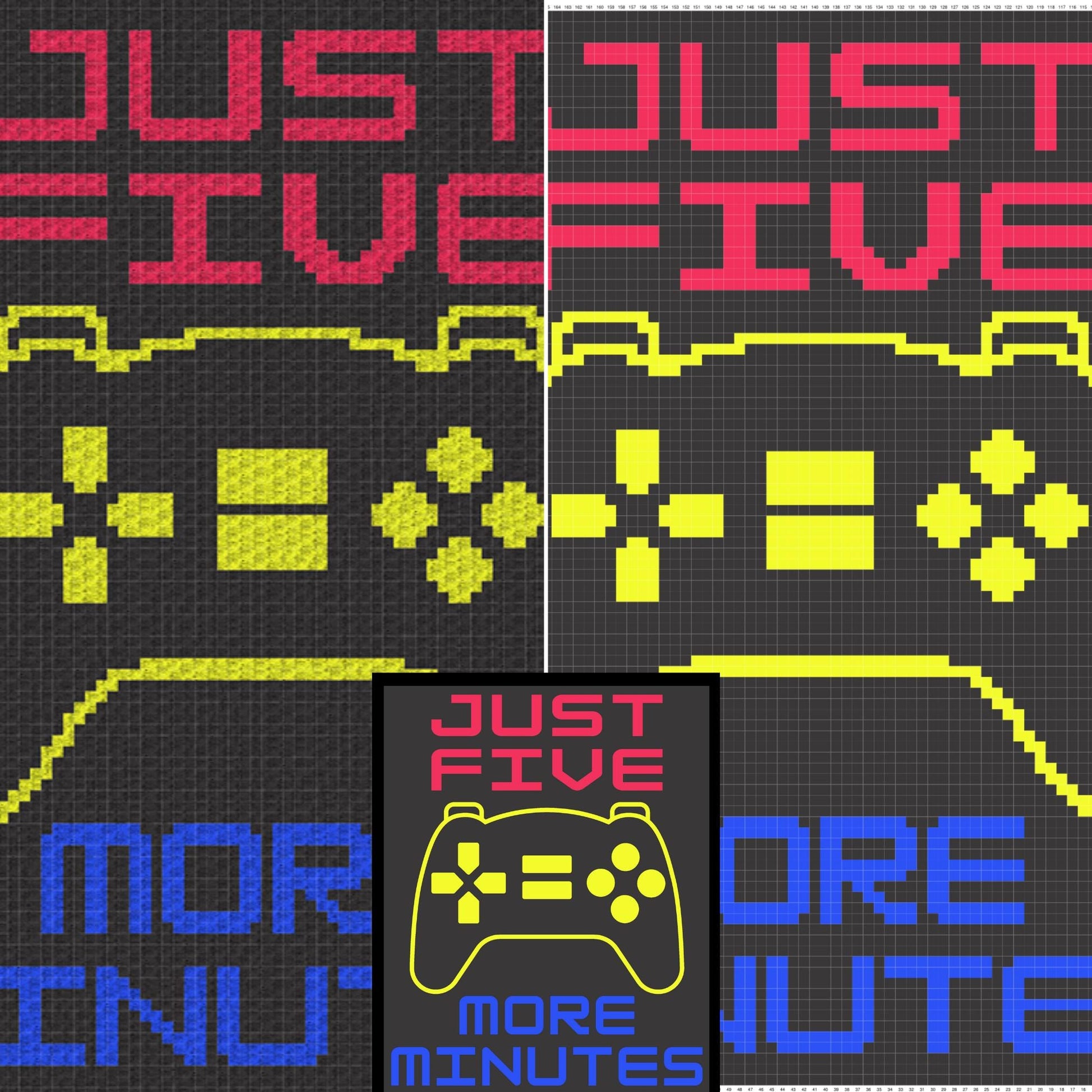 Just Five More Minutes Gamer Mantra Graph Written Pattern For C2C & Tapestry Crochet - Gamers C2C Graphgan - C2C Crochet Gamer Pattern Gifts