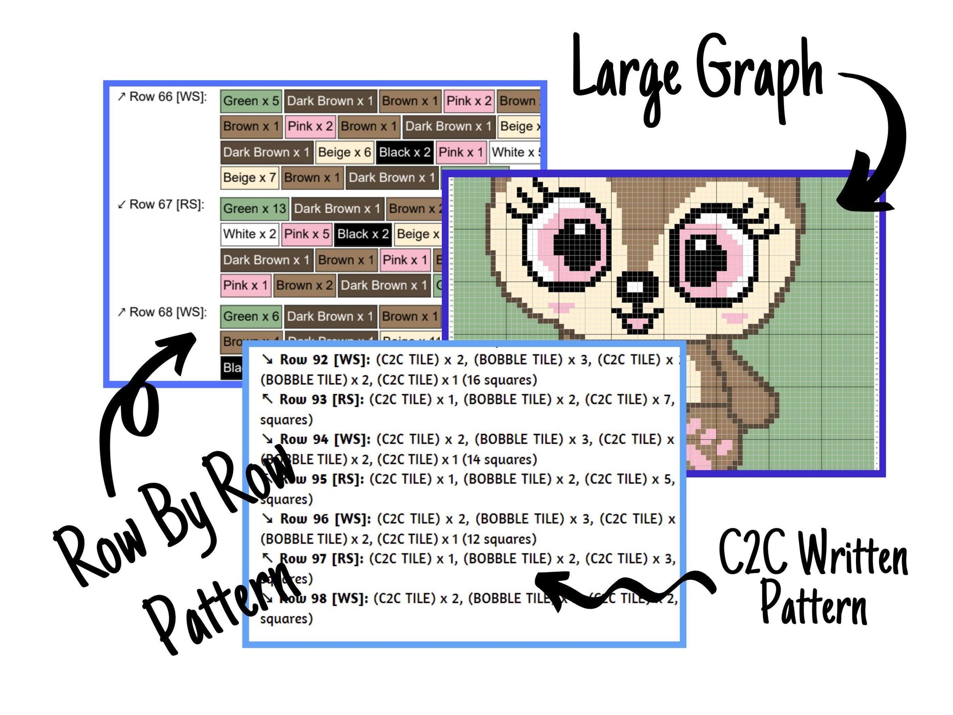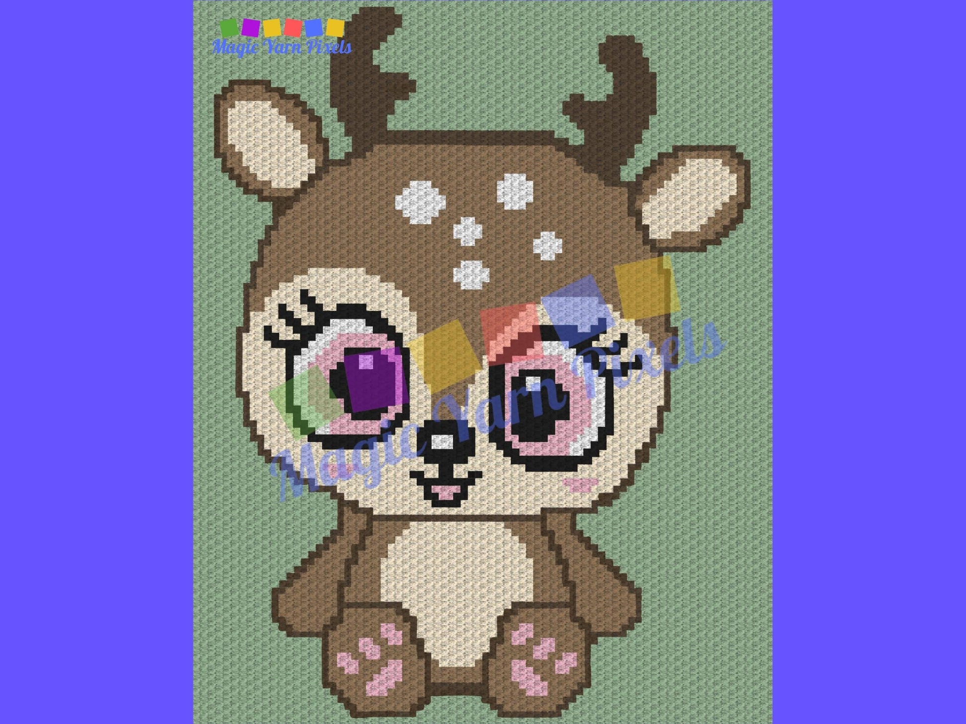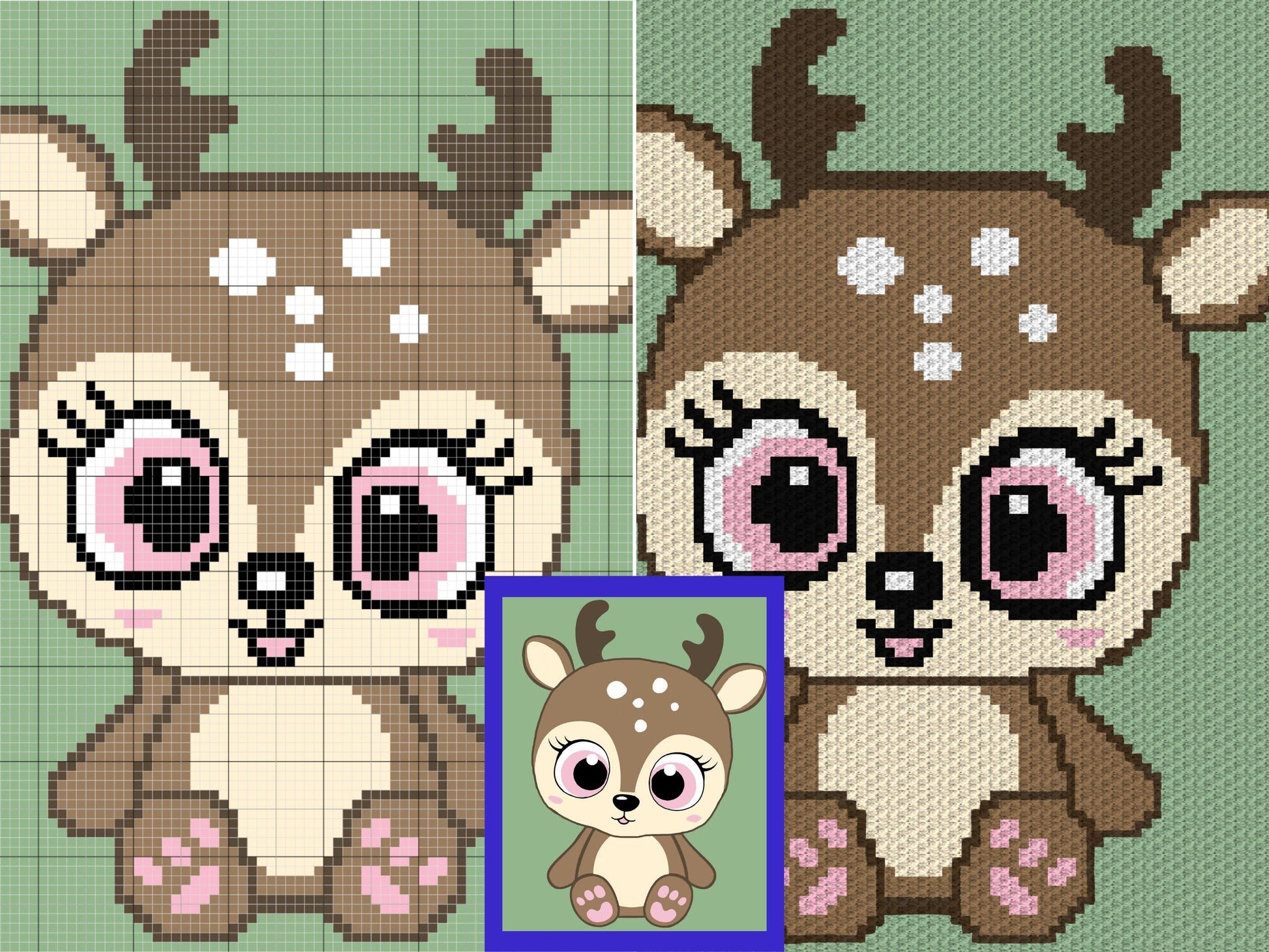 Kawaii Baby Deer Graph and Pattern C2C & Tapestry Crochet - Deer Crochet Graphgans - Crochet Deer Blanket - C2C Woodland Blanket Gift Babies