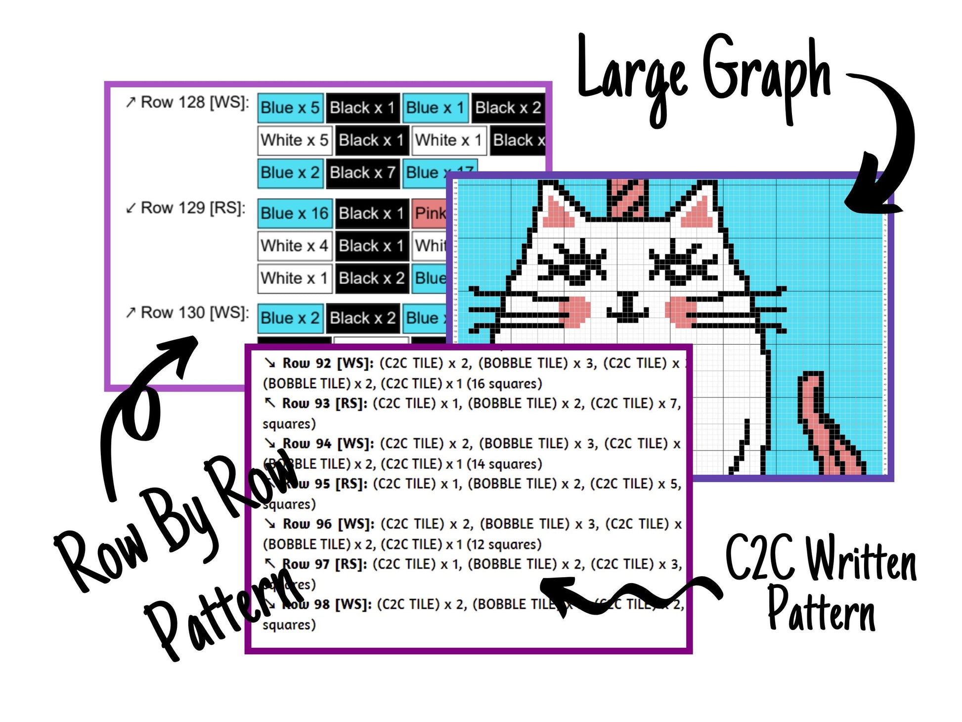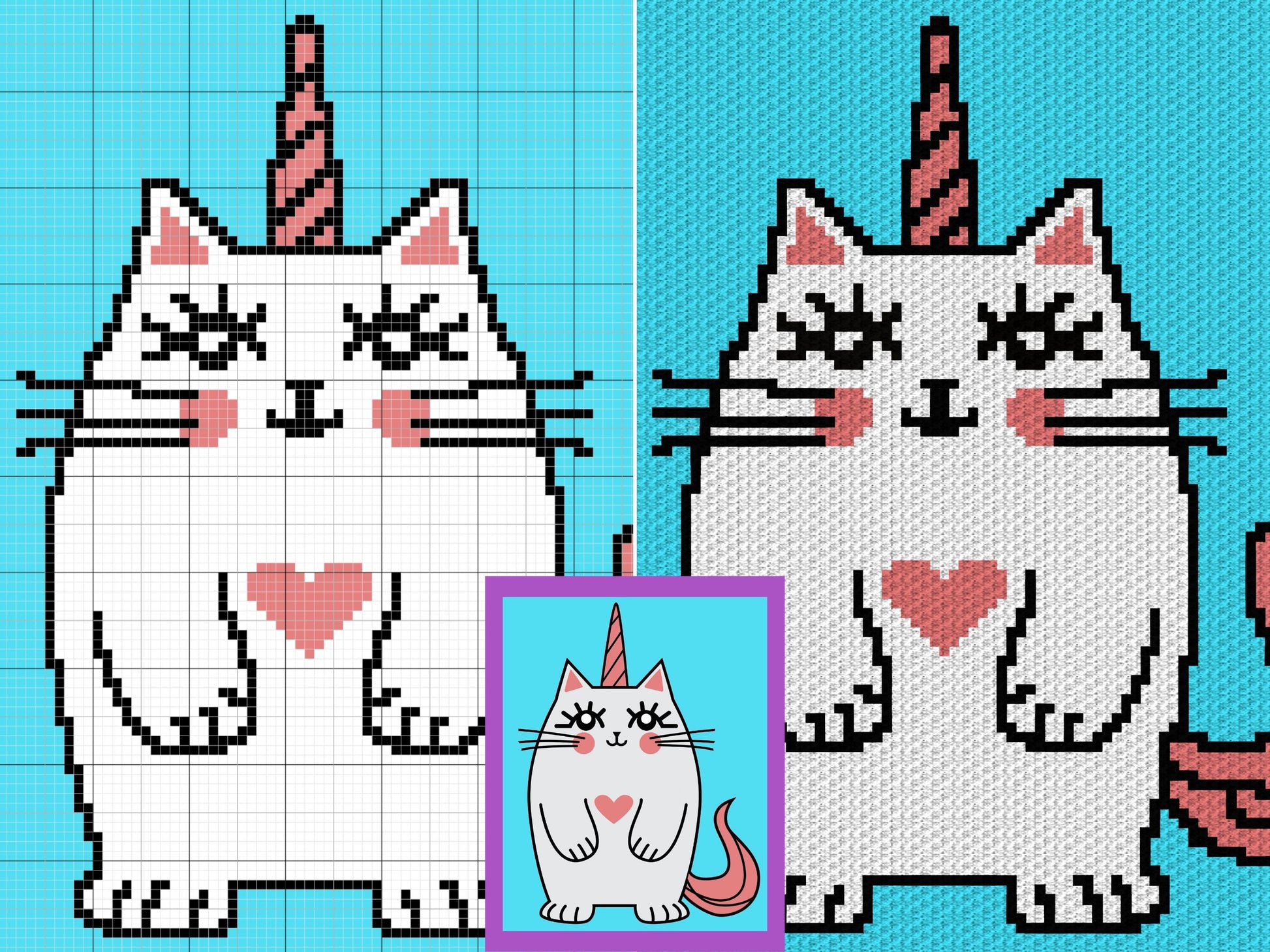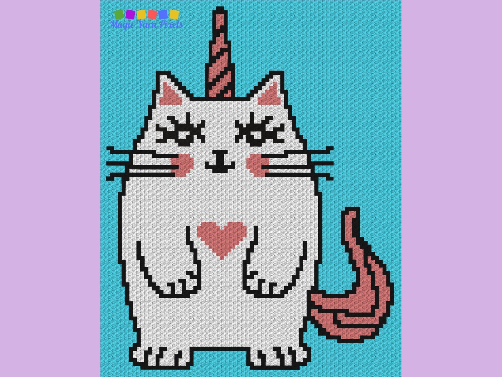 Kawaii Cat Unicorn Graph and Pattern C2C & Tapestry Crochet - Cat Graphgan - C2C Crochet Unicorn Blanket - C2C Unicorn Cat Baby Blanket Gift