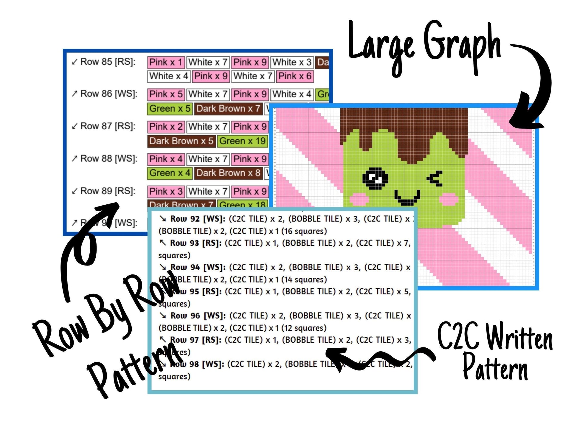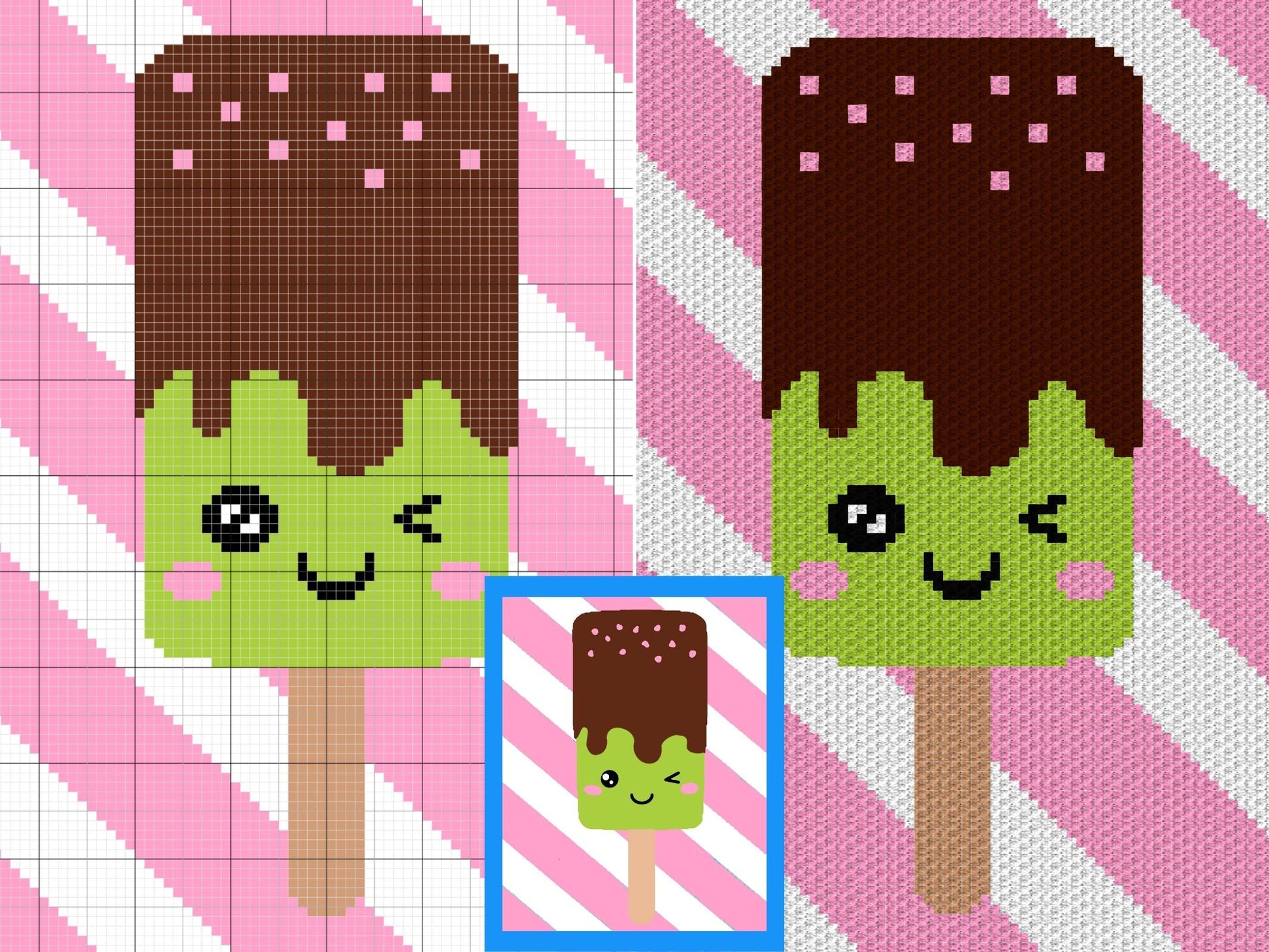 "Kawaii Chocolate Mint Ice Cream" is a DIGITAL DOWNLOAD (available in PDF format only), written in ENGLISH ONLY that can be used to crochet a blanket using various techniques, such as C2C, Mini C2C, SC, HDC, DC, Tapestry Crochet etc.