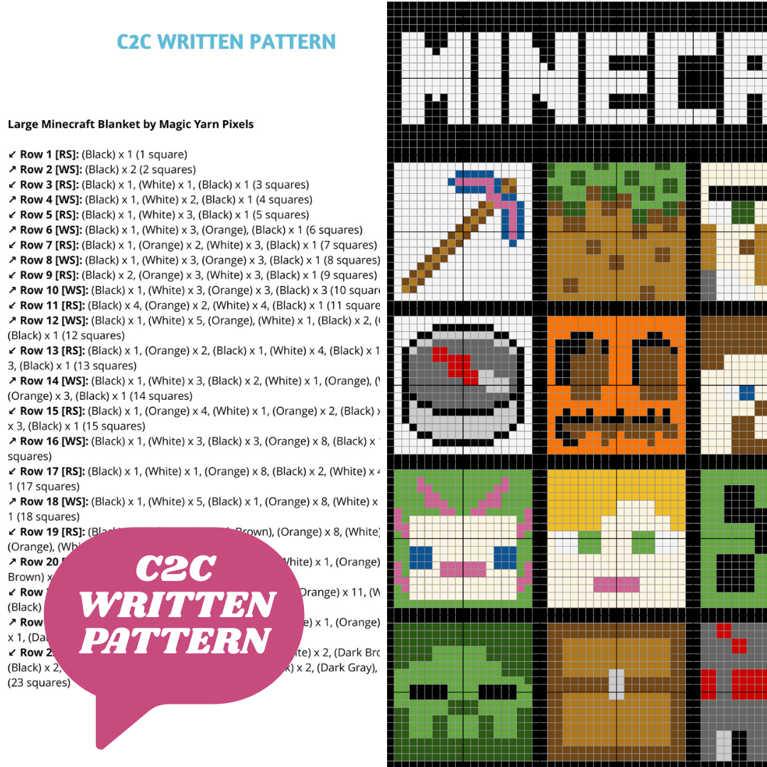 "Large Minecraft Blanket" is a DIGITAL DOWNLOAD (available in PDF format only), written in ENGLISH ONLY that can be used to crochet a blanket using various techniques, such as C2C, Mini C2C, SC, HDC, DC, Tapestry Crochet etc.