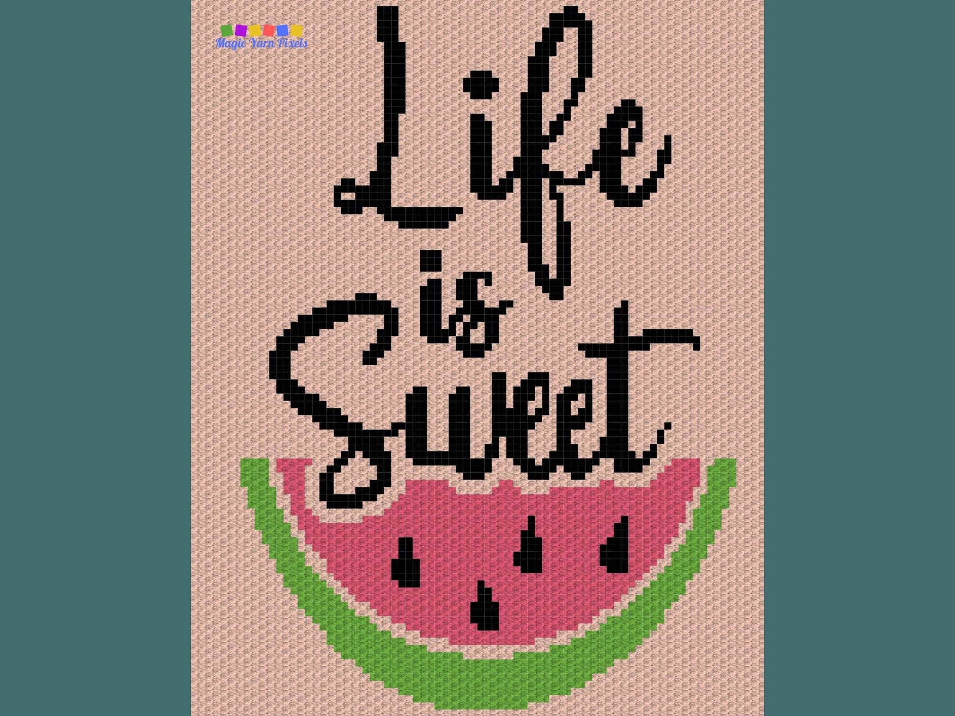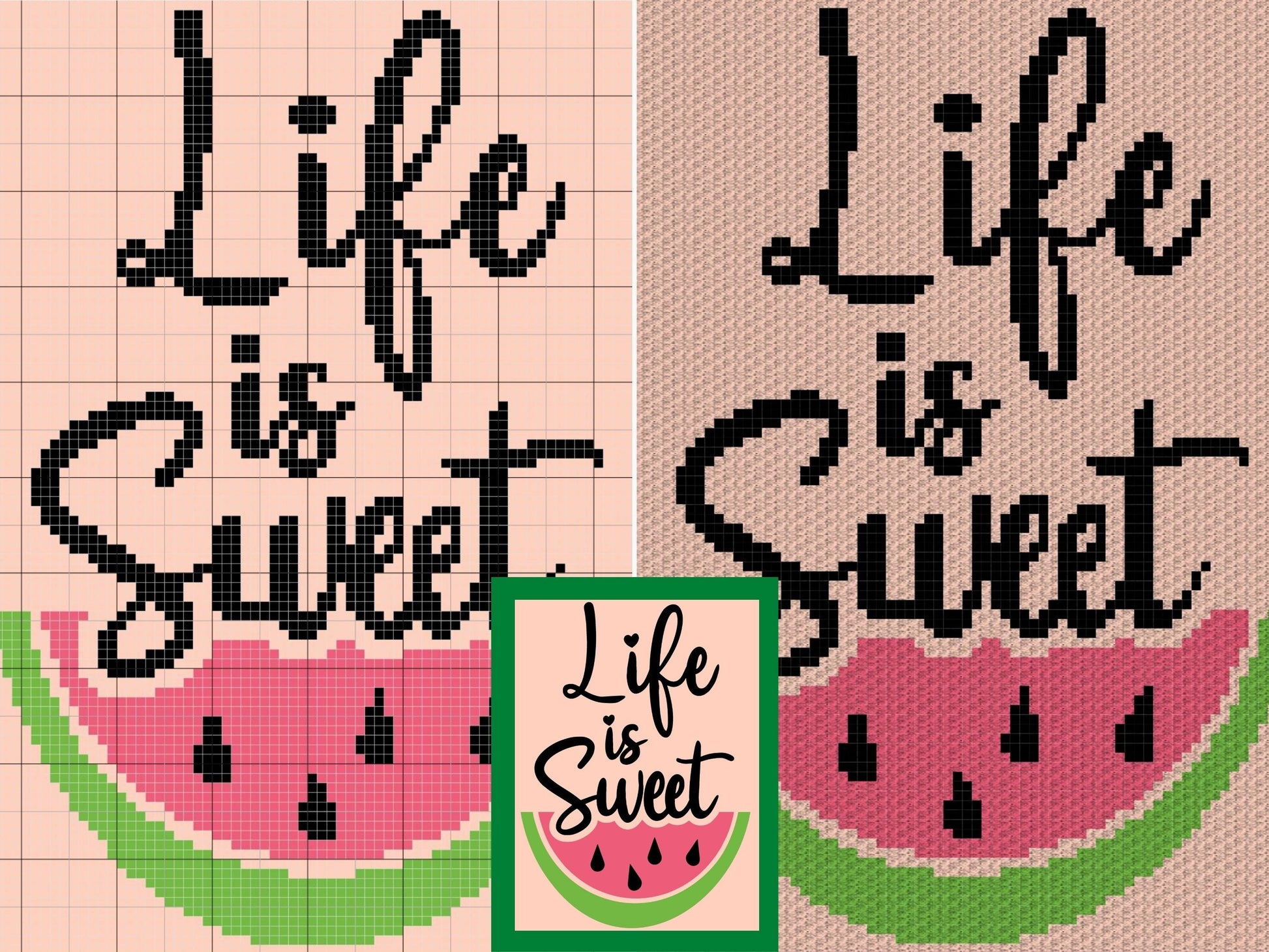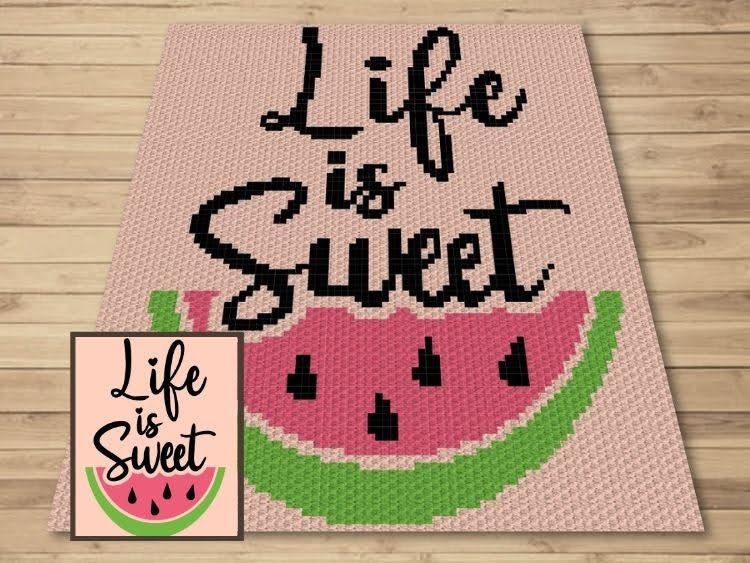Life Is Sweet Watermelon Graph + Written Pattern For C2C & Tapestry Crochet - C2C Quote Graphghan - Quote Crochet Blanket - Crochet Afghan