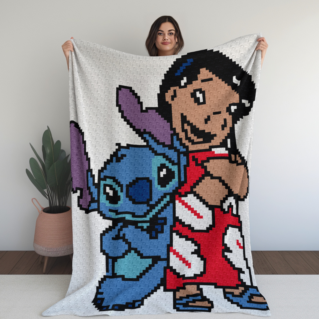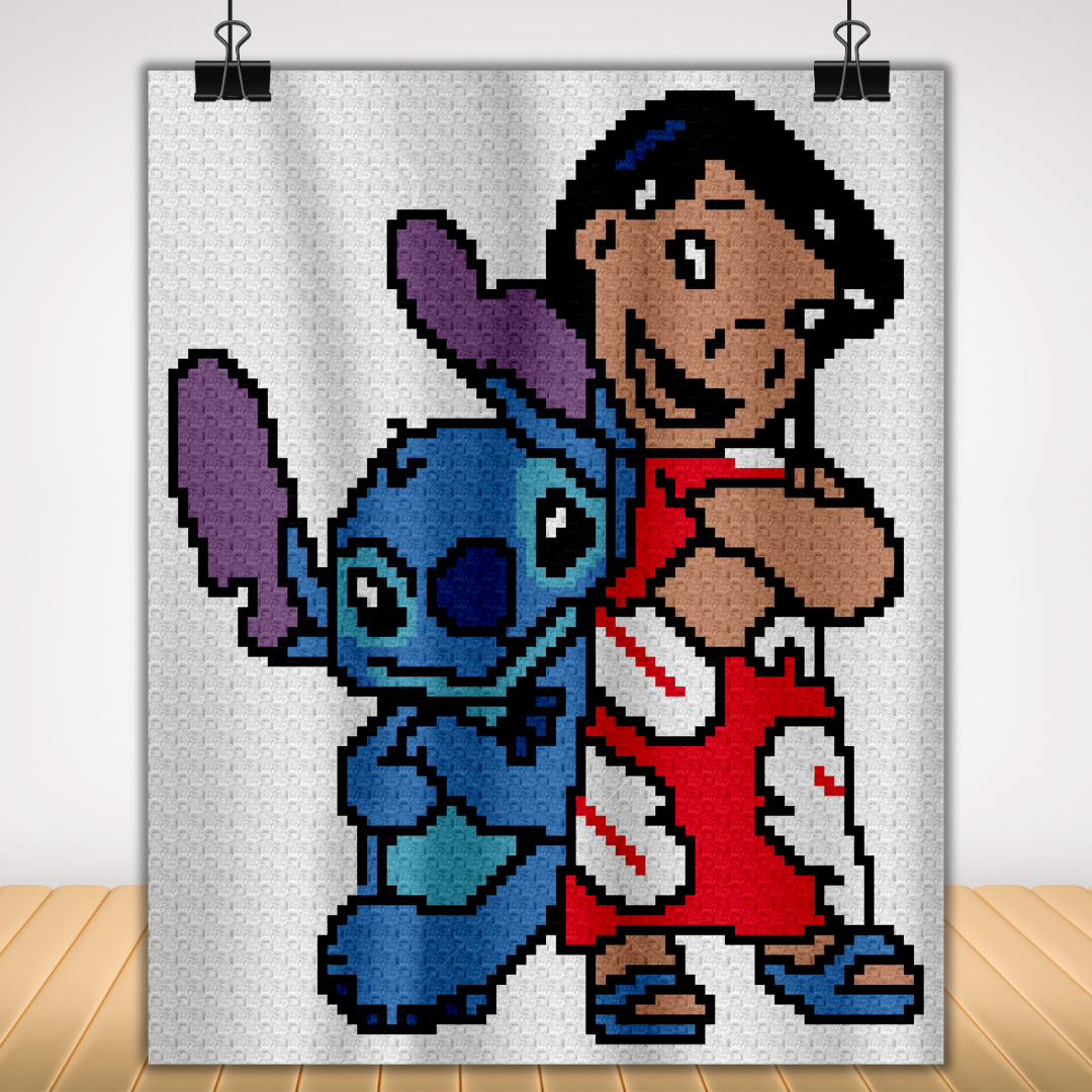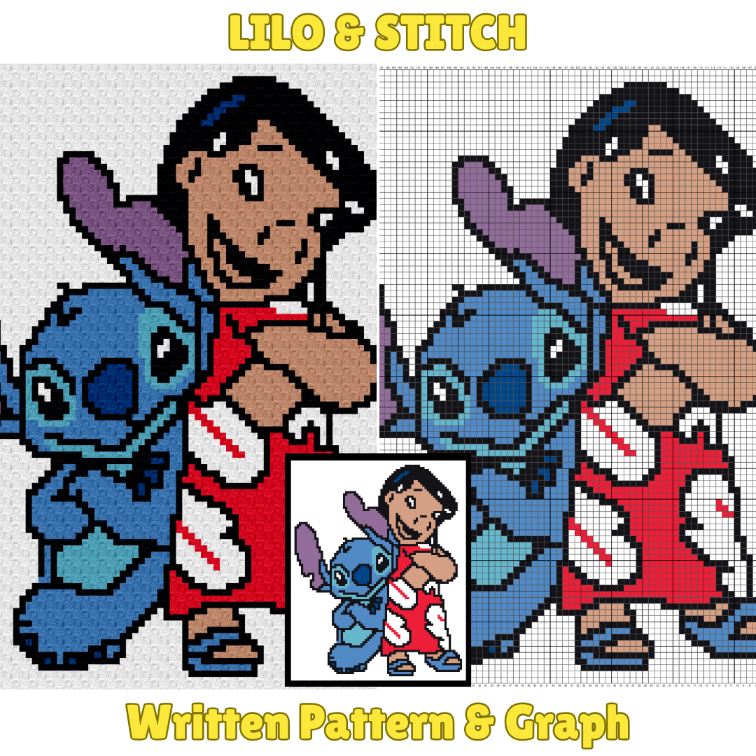 "Lilo and Stitch" is a DIGITAL DOWNLOAD (available in PDF format only), written in ENGLISH ONLY that can be used to crochet a blanket using various techniques, such as C2C, Mini C2C, SC, HDC, DC, Tapestry Crochet etc.