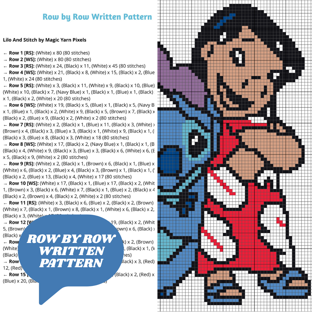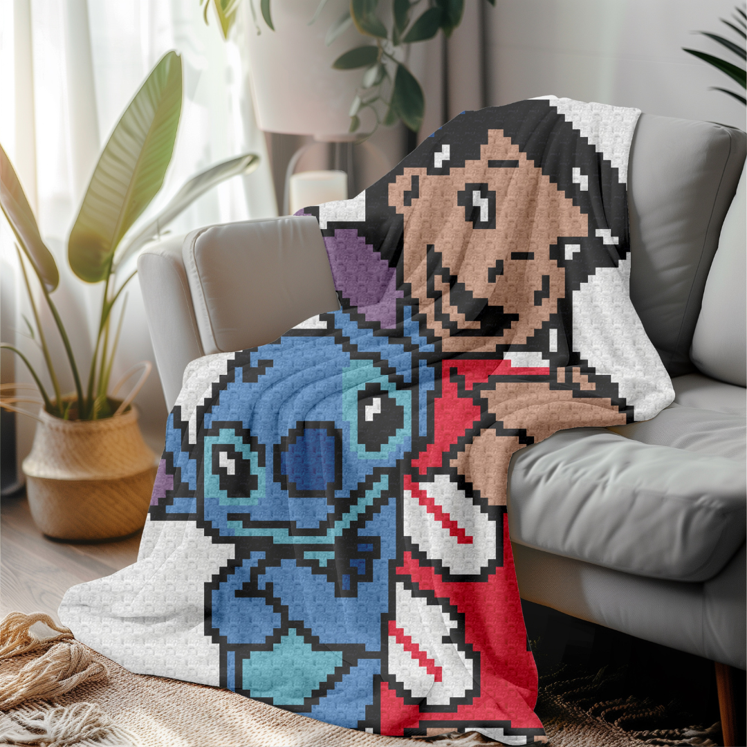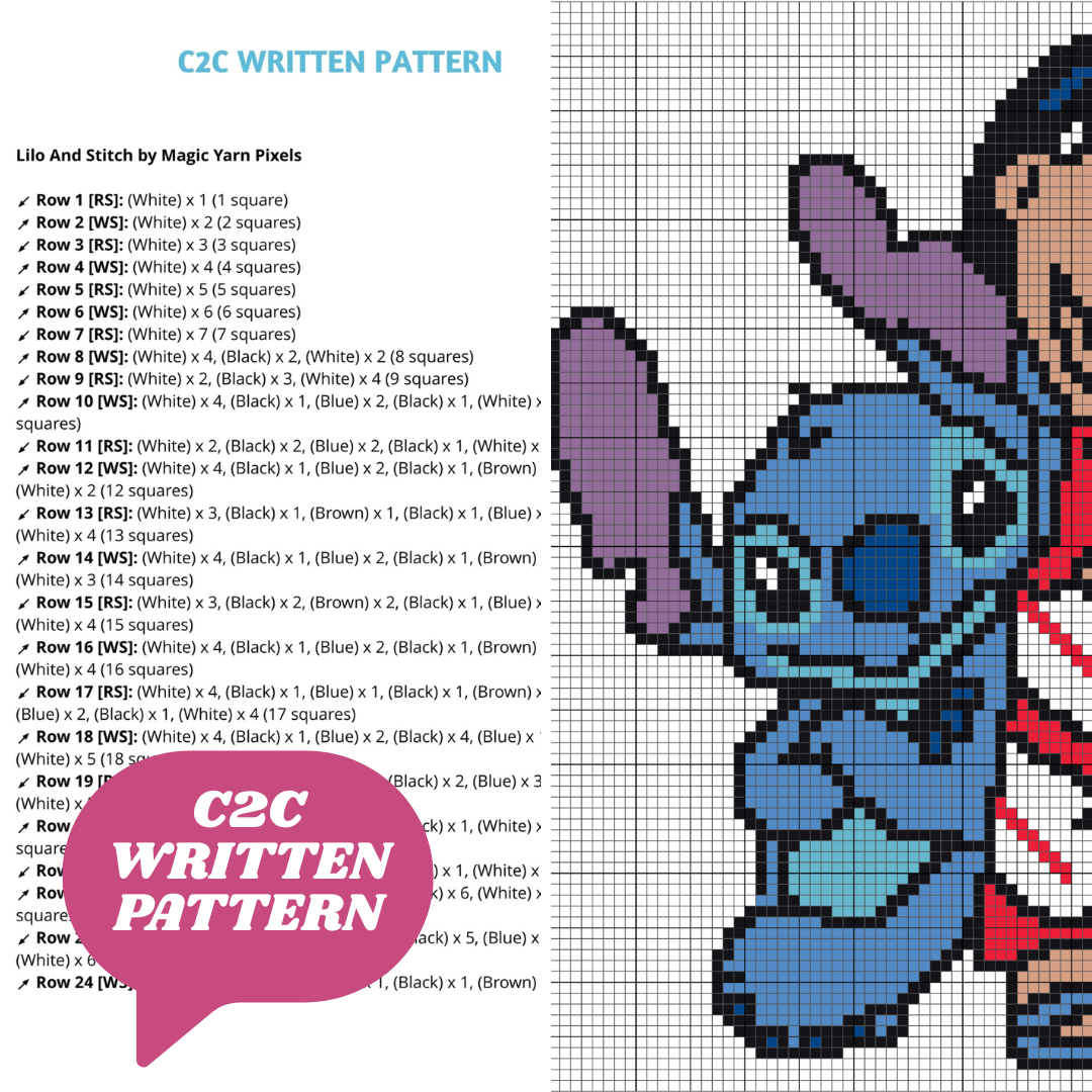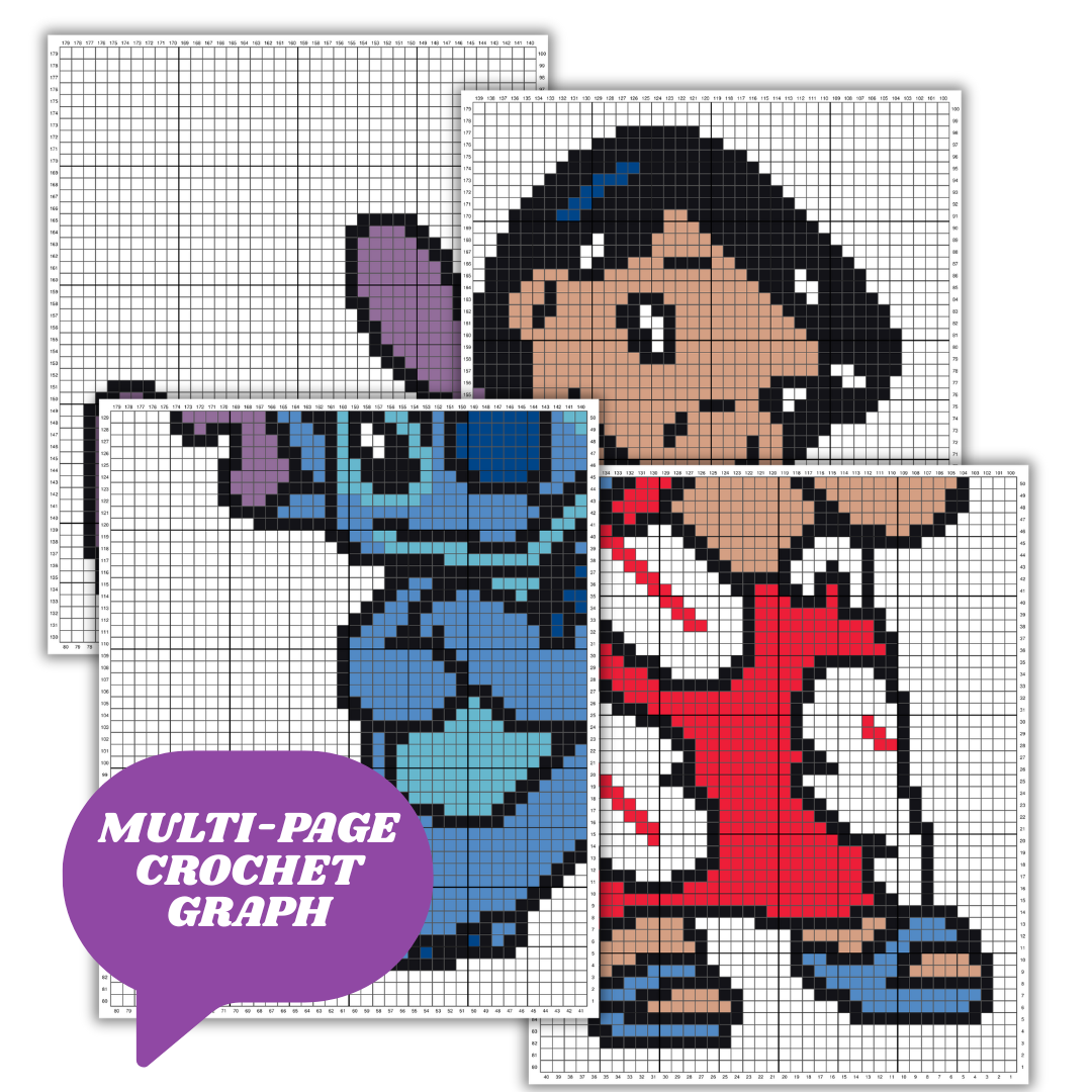 "Lilo and Stitch" is a DIGITAL DOWNLOAD (available in PDF format only), written in ENGLISH ONLY that can be used to crochet a blanket using various techniques, such as C2C, Mini C2C, SC, HDC, DC, Tapestry Crochet etc.
