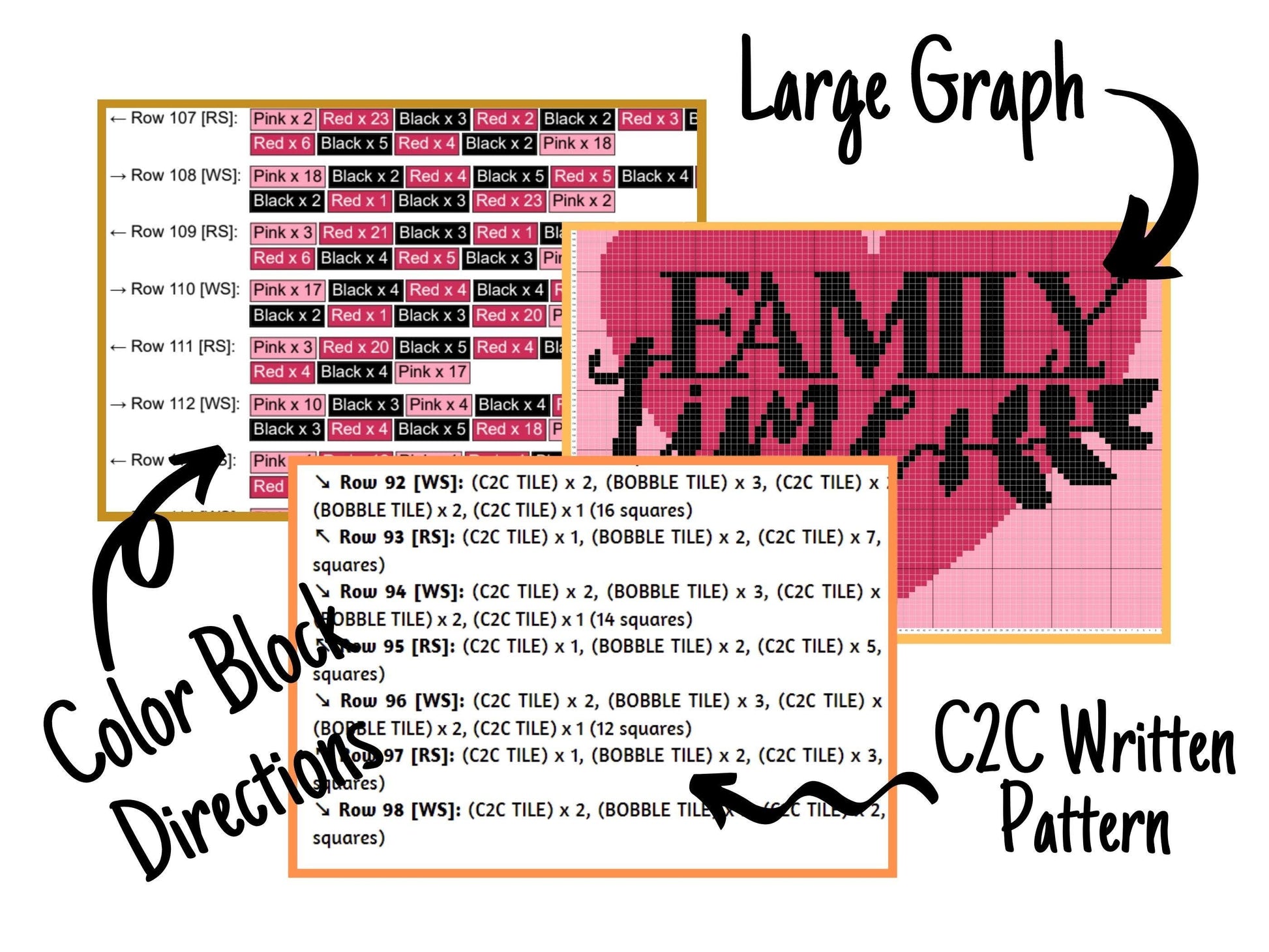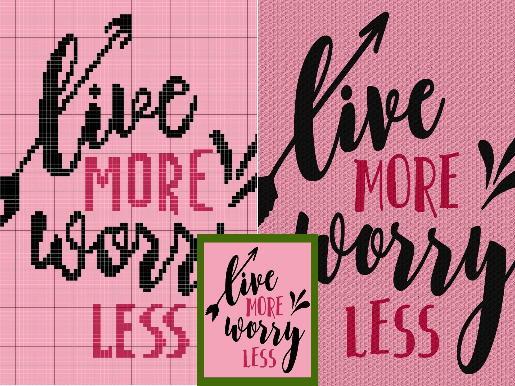 Live More Worry Less Graph and Pattern C2C & Tapestry Crochet- Quote Graphgan -Pink Crochet Blanket- Inspirational Gifts C2C Message Blanket