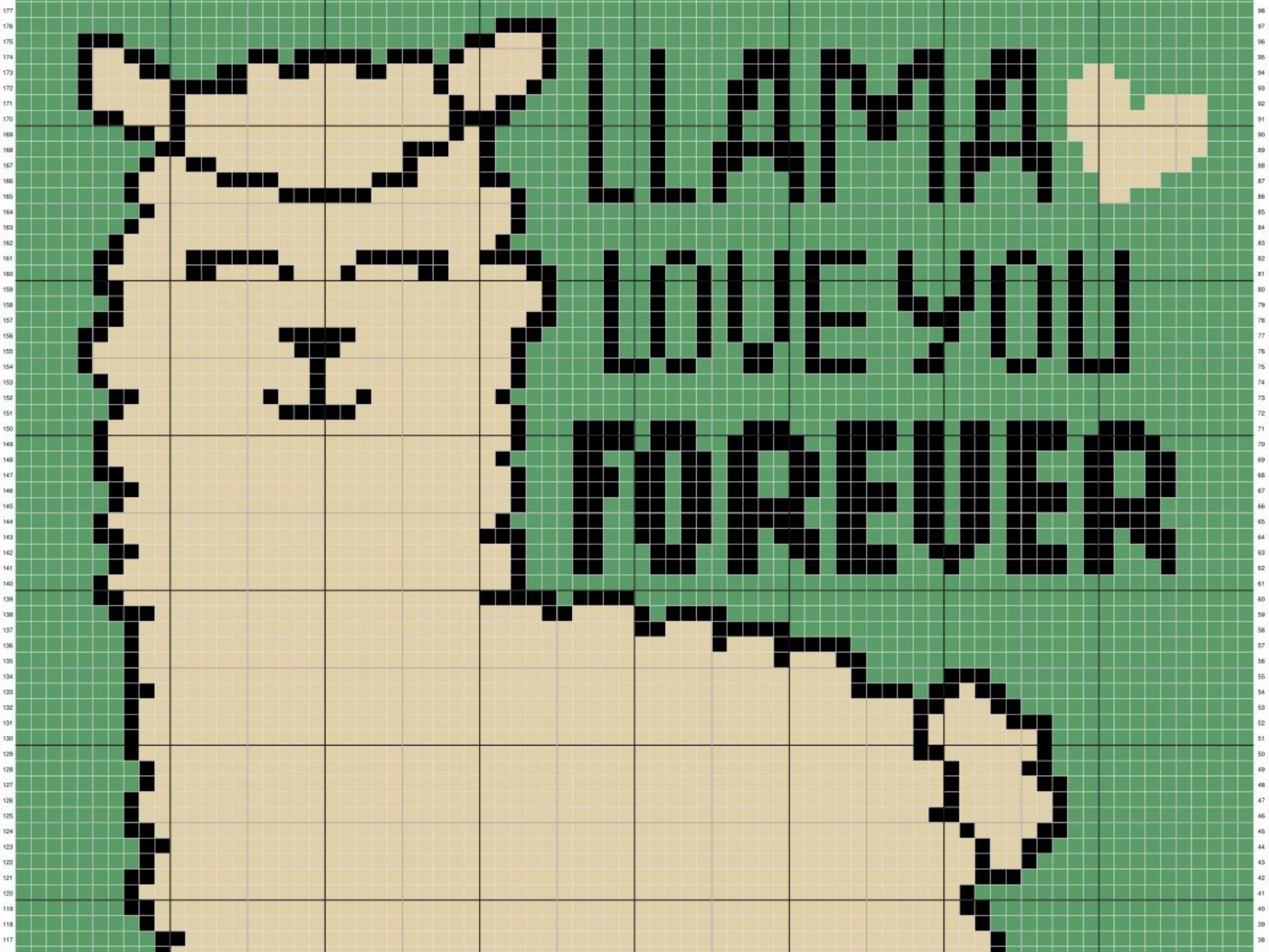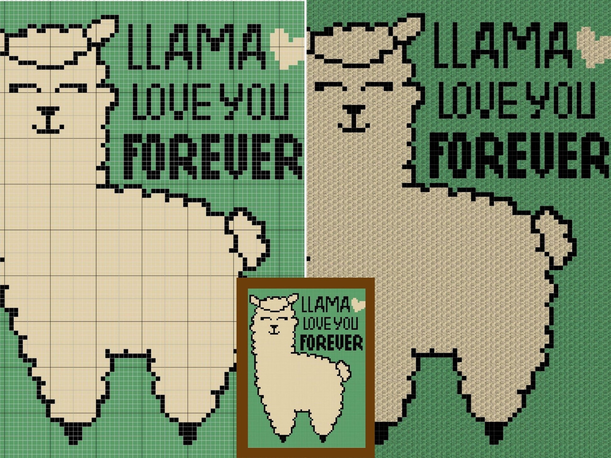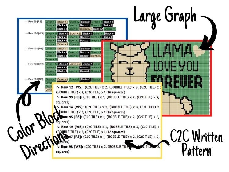 Llama Love You Forever Graph + Written Pattern For C2C & Tapestry Crochet - Llama C2C Graph - Animal Crochet Baby Blanket Llama Quote Afghan