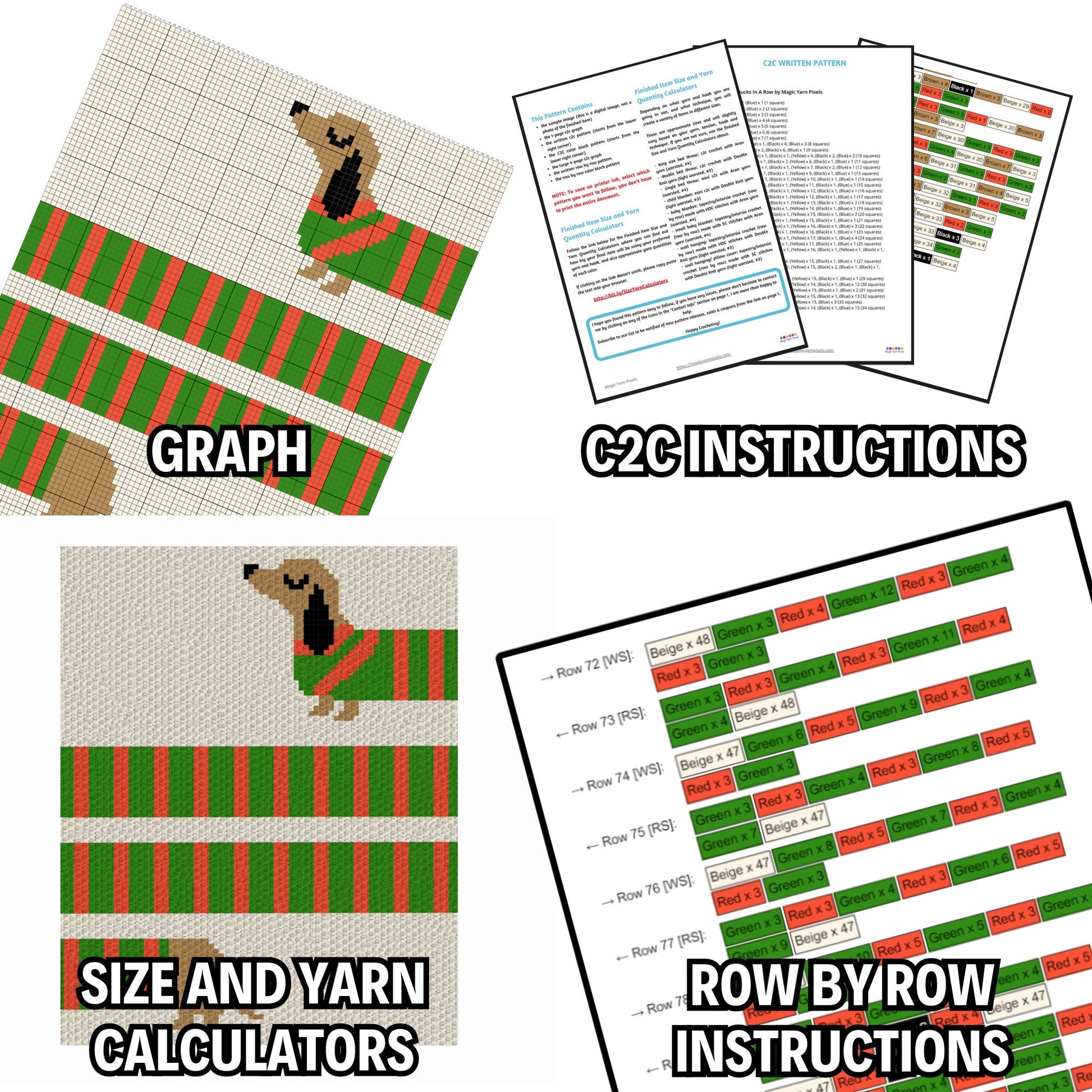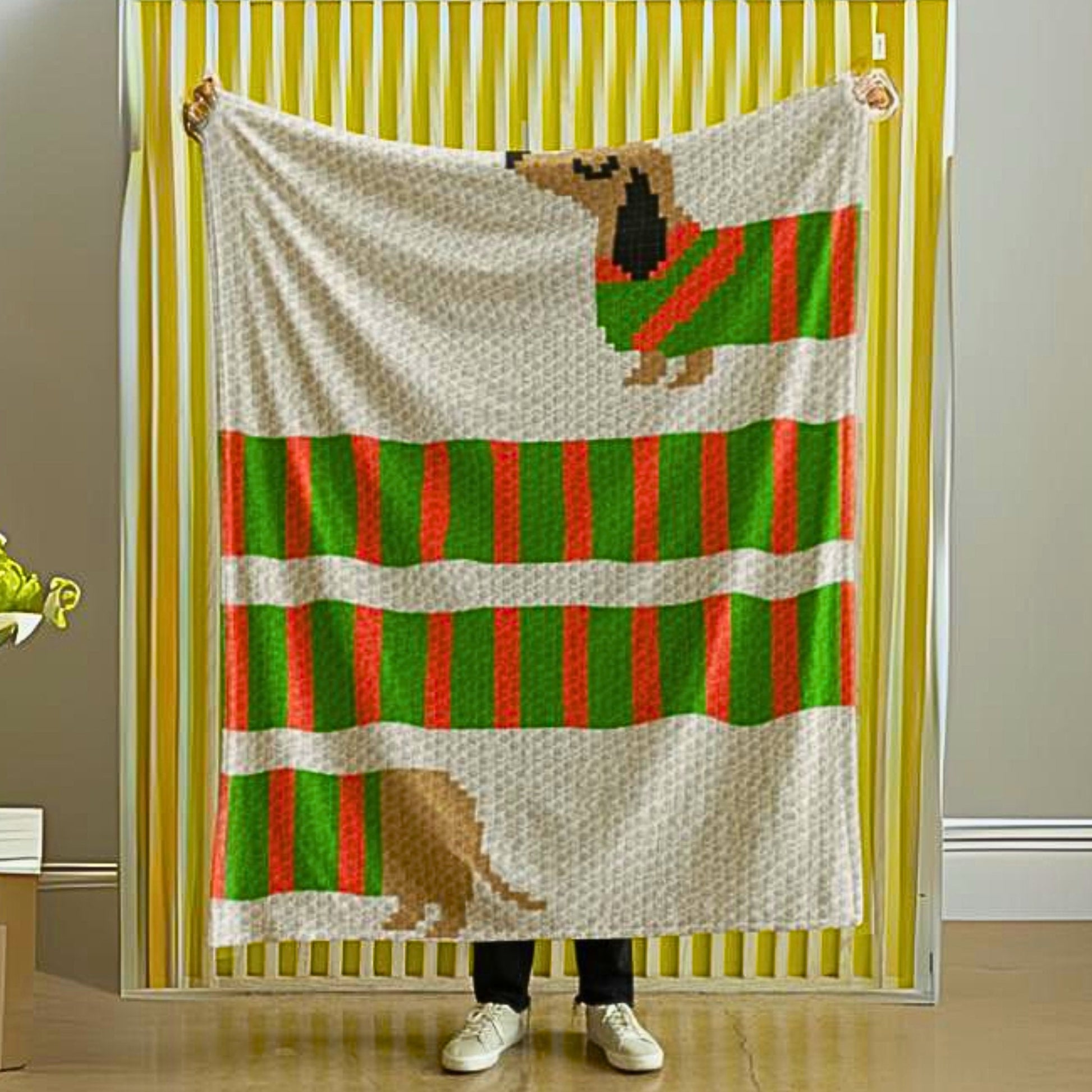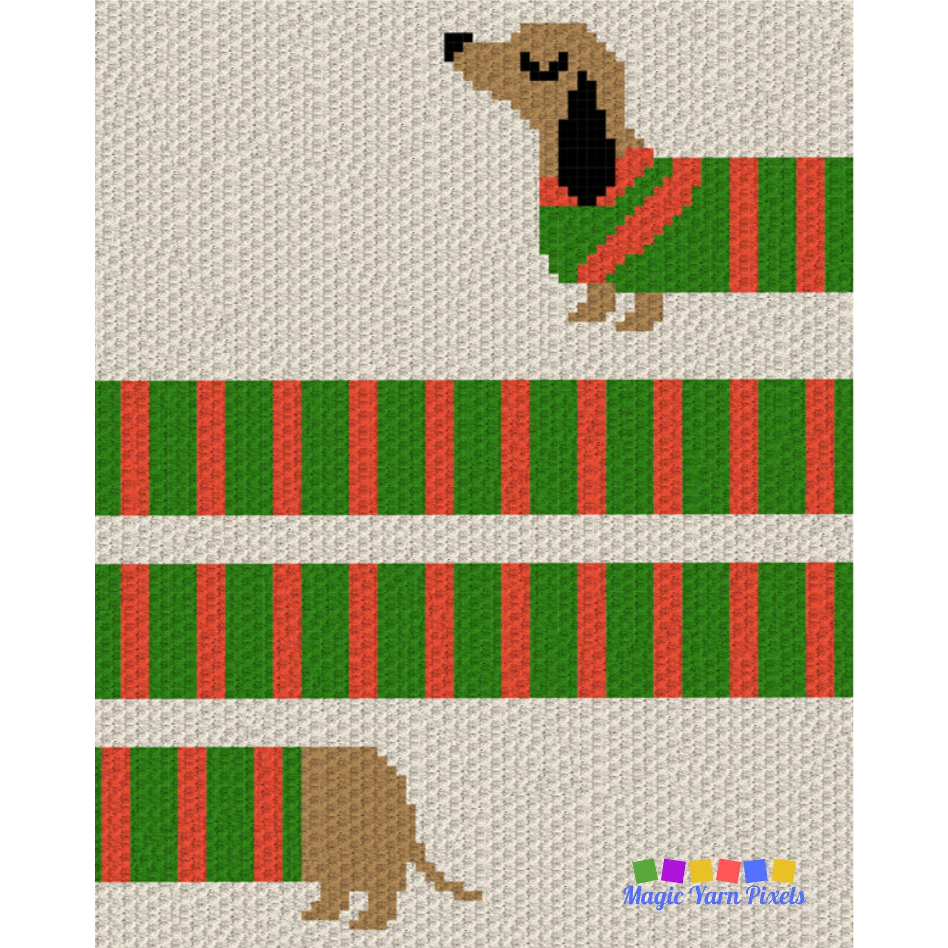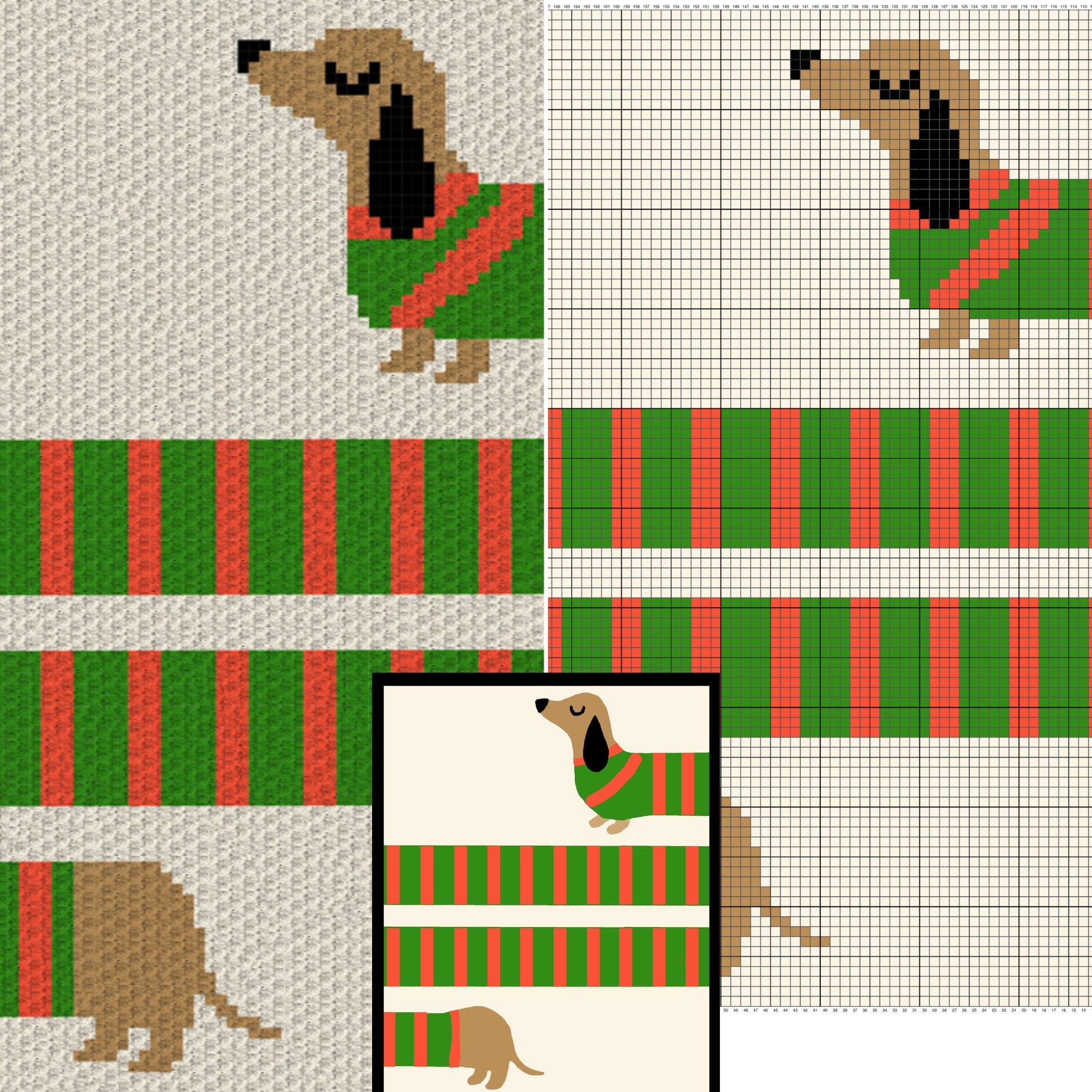 Long Sausage Dog Stripes Graph + Pattern C2C and Tapestry Crochet Puppy Blankets - Dog Lover Gifts - Crochet Dachshund C2C Blankets Fur Baby