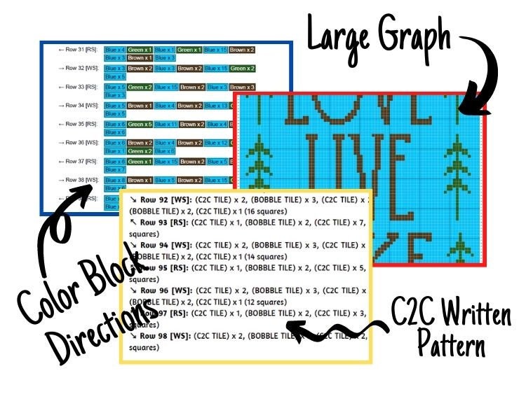 Love Live Lake Graph + Written Pattern For C2C & Tapestry Crochet - Log Cabin C2C Crochet Pattern - Cabin Woods C2C Lakehouse Throw Blanket