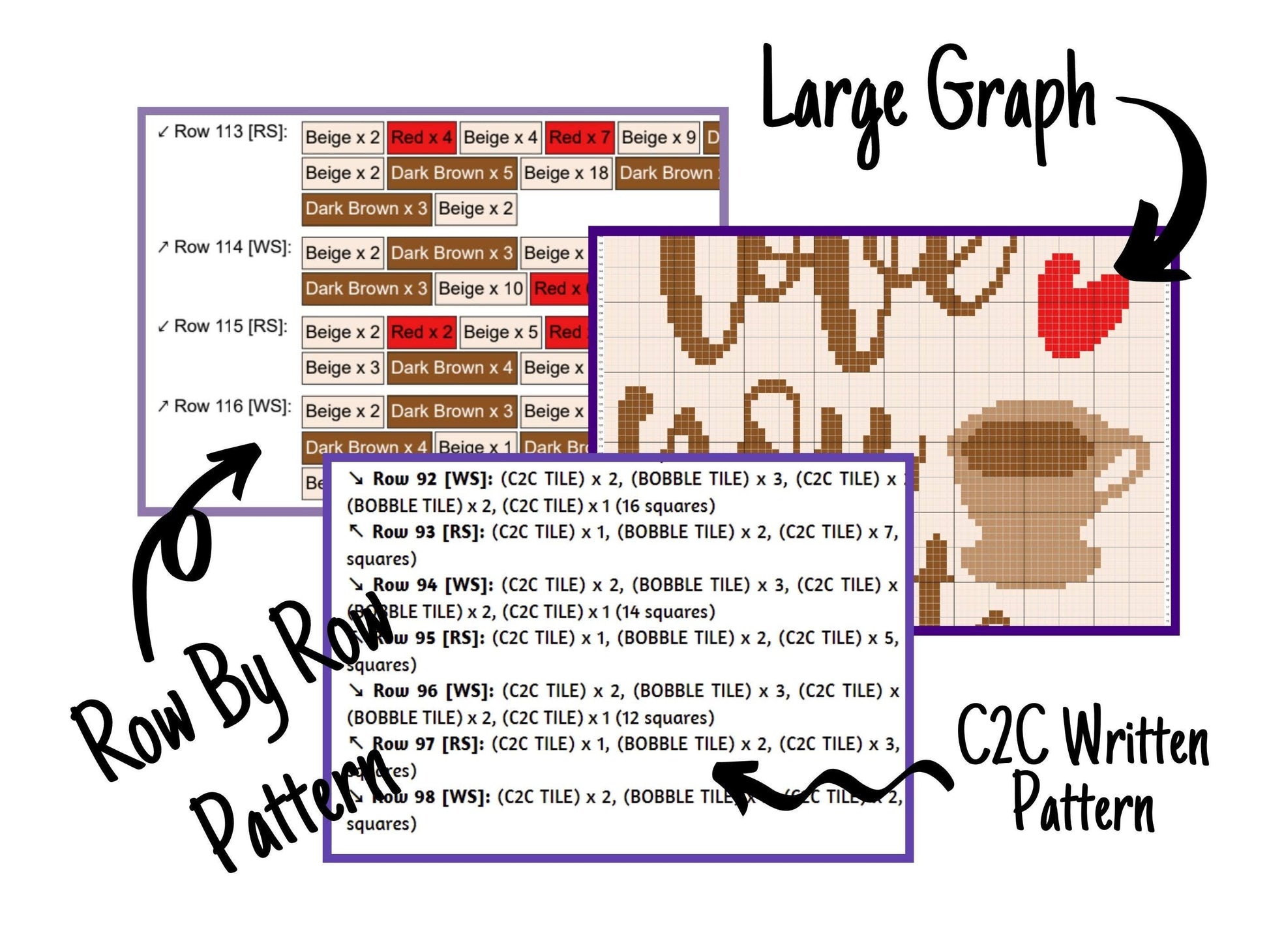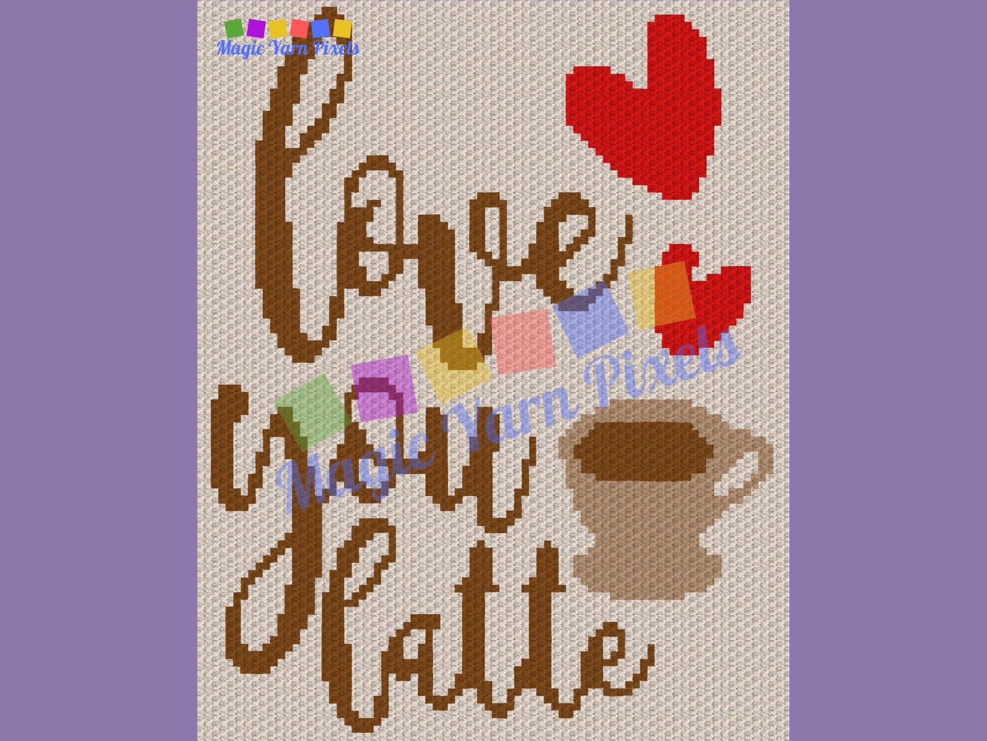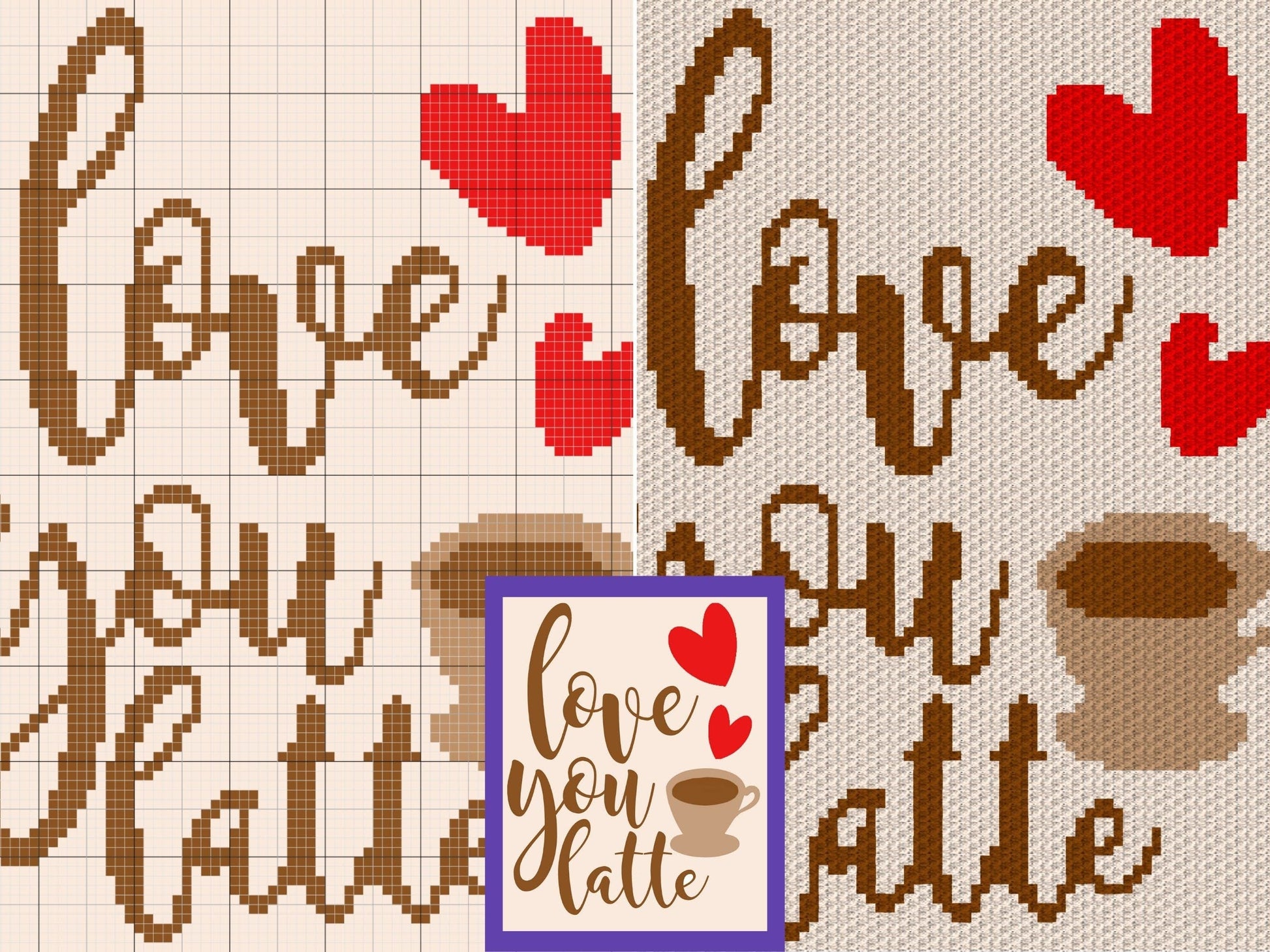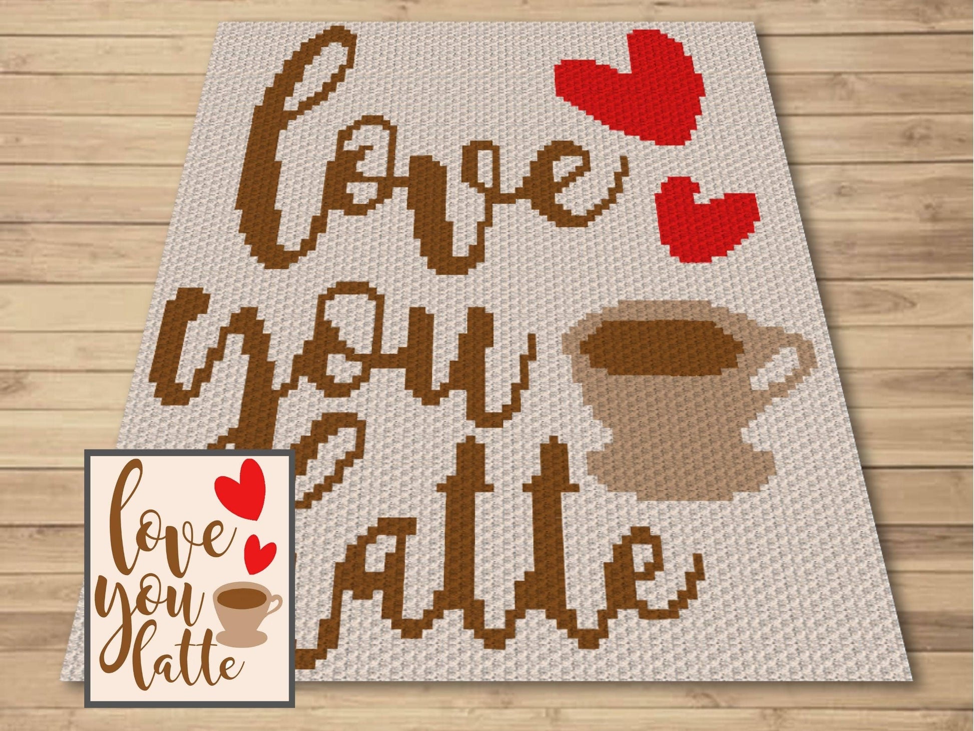 Love You Latte Graph and Pattern C2C & Tapestry Crochet - Coffee Blanket Graphgan - Coffee Crochet Blanket - Coffee Lovers Gift C2C Blankets