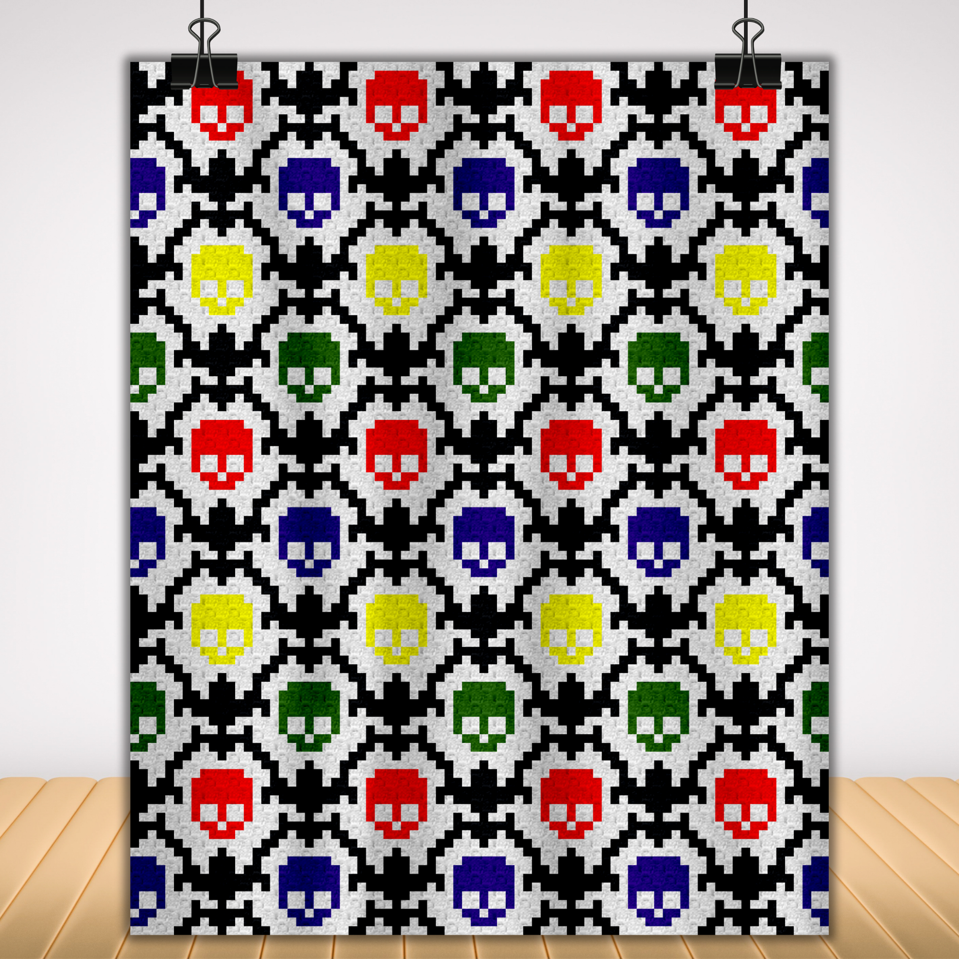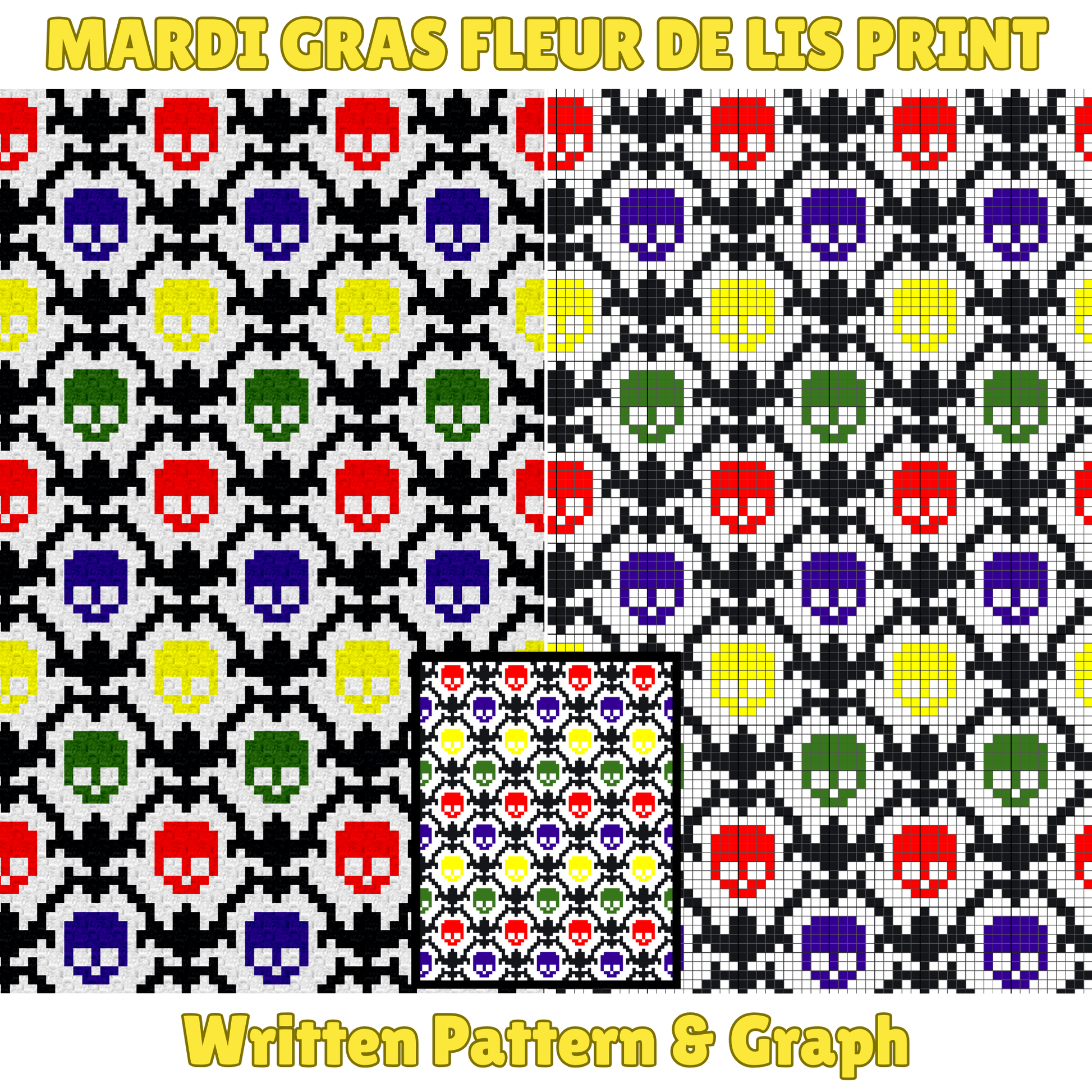 Mardi Gras Fleur De Lis Skulls Crochet Blanket Pattern w/ Chart & Written Pattern For C2C + Tapestry | Graphgan New Orleans Occult Gifts Him