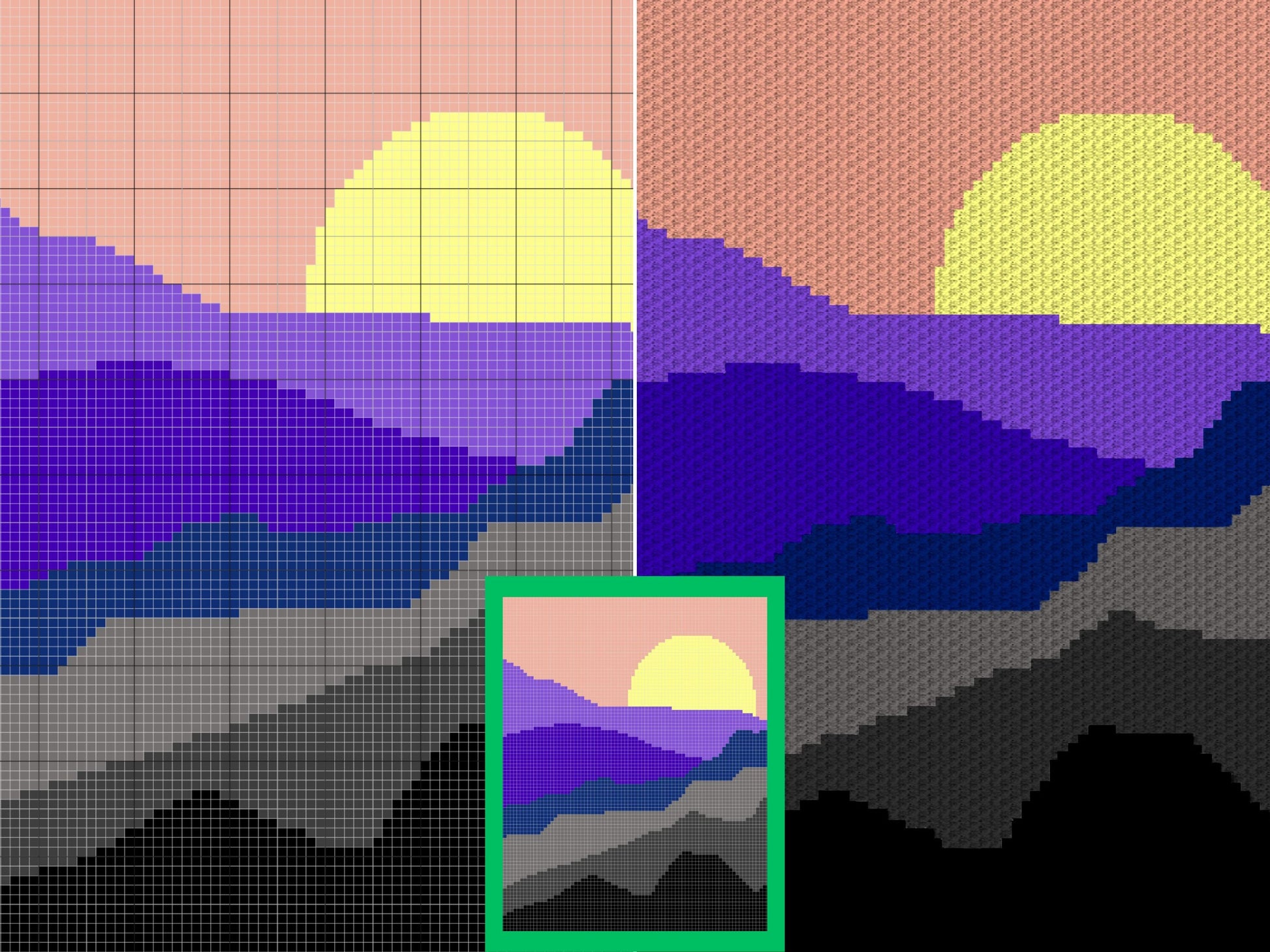 Mountain Sunset Graph and Pattern C2C & Tapestry Crochet - Boho Sunset C2C Graphgan Crochet Mountains Blanket - C2C Boho Baby Blankets Gifts