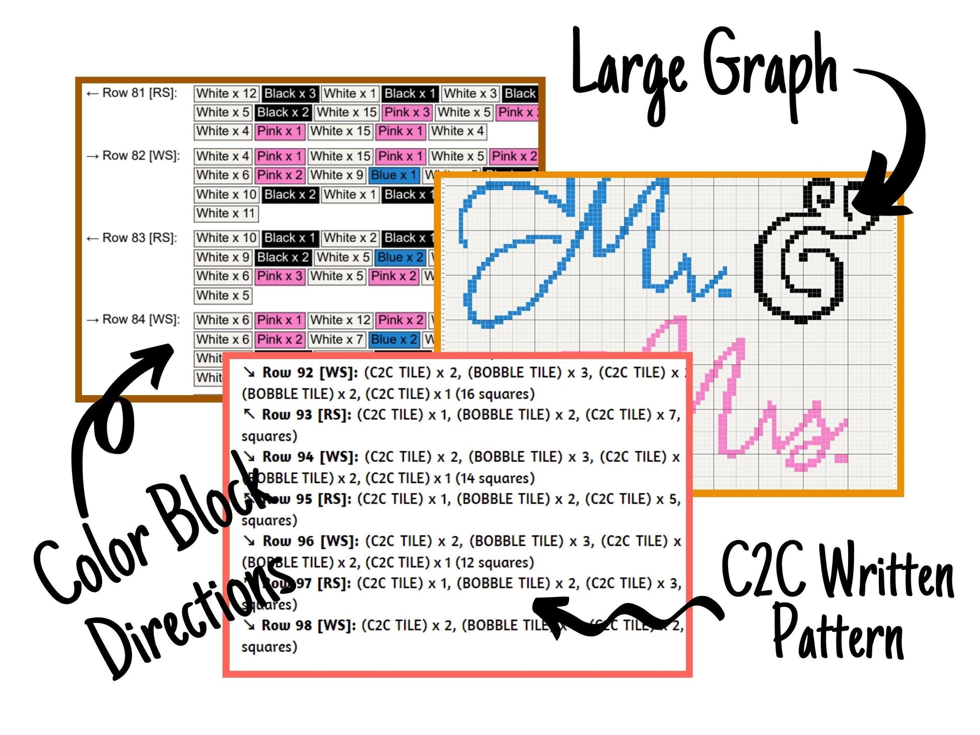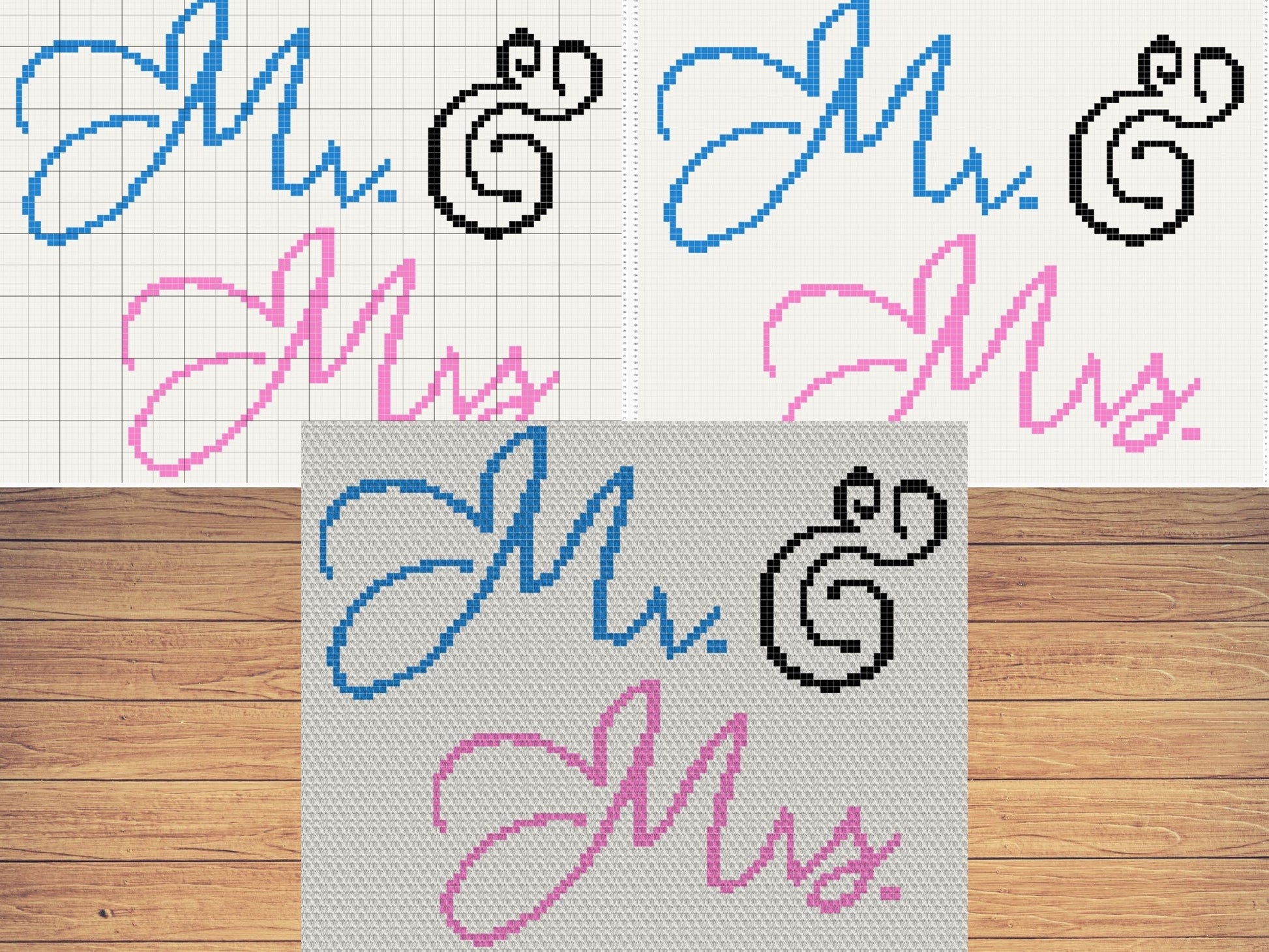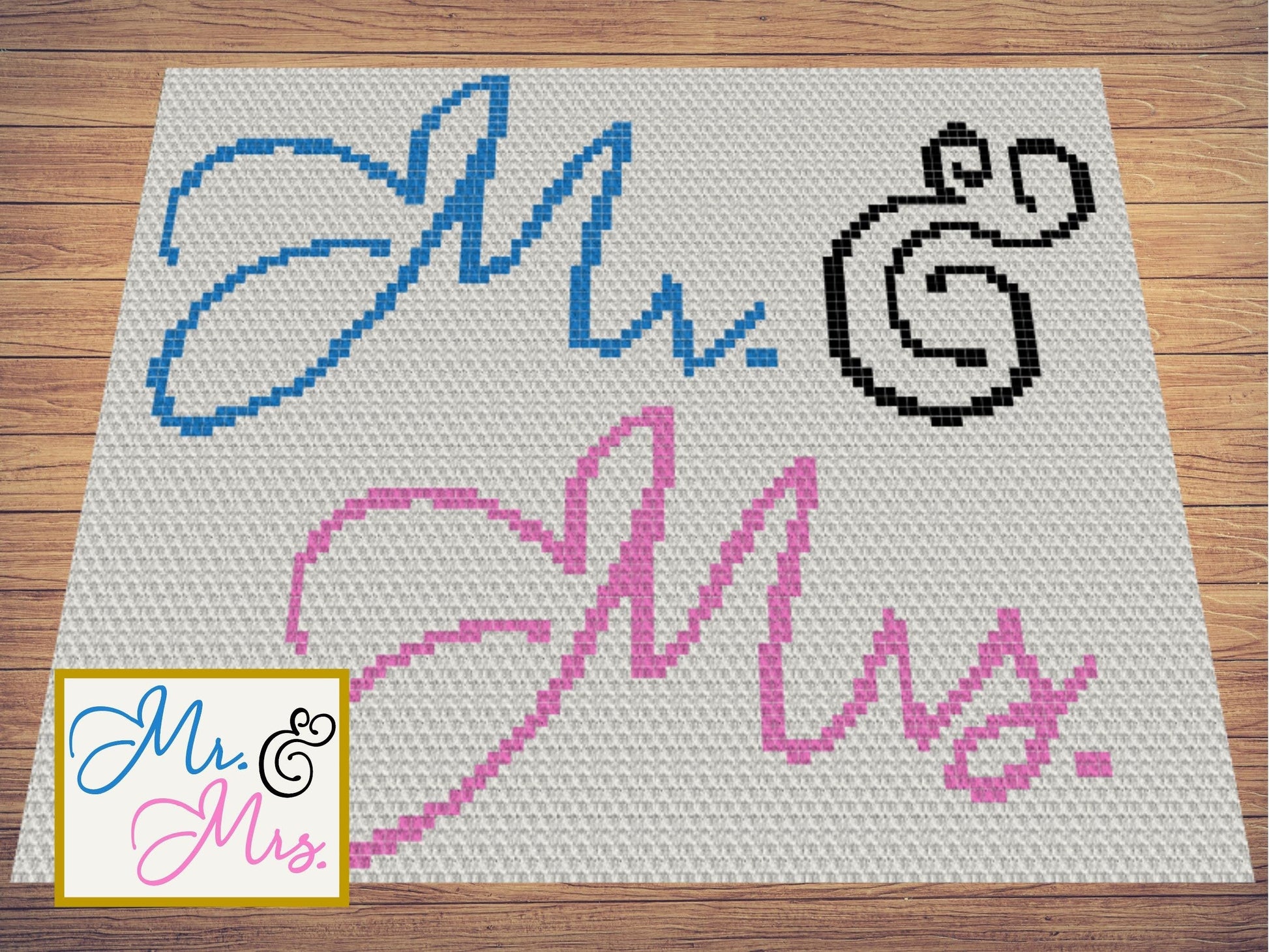 Mr & Mrs Wedding Gift Graph and Pattern C2C Tapestry Crochet-Anniversary Gift Graphgan-Wedding Crochet Blanket - C2C Blanket Engagement Gift