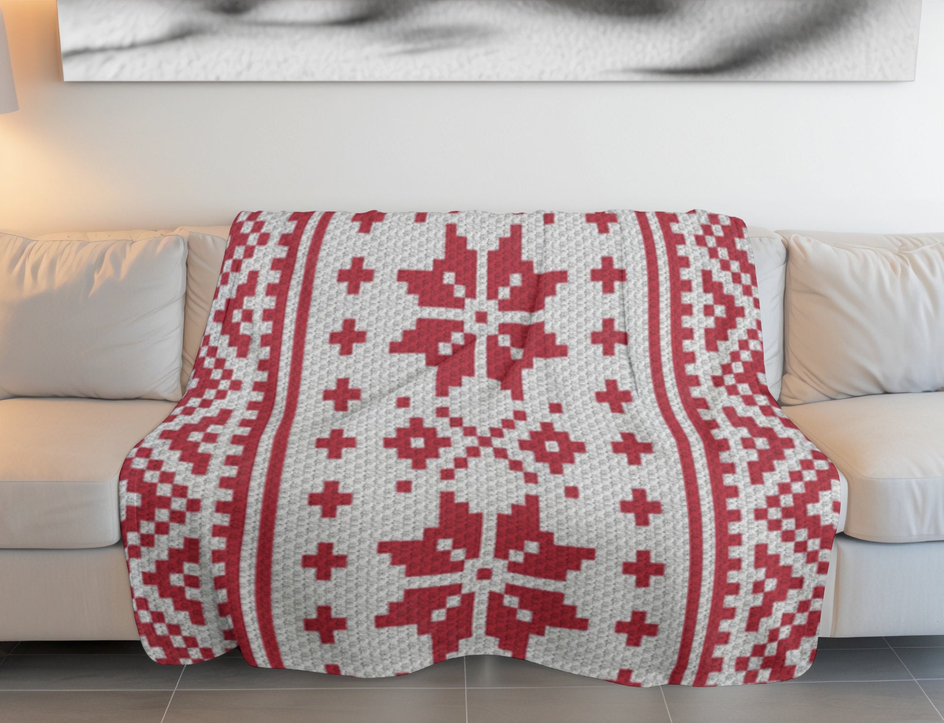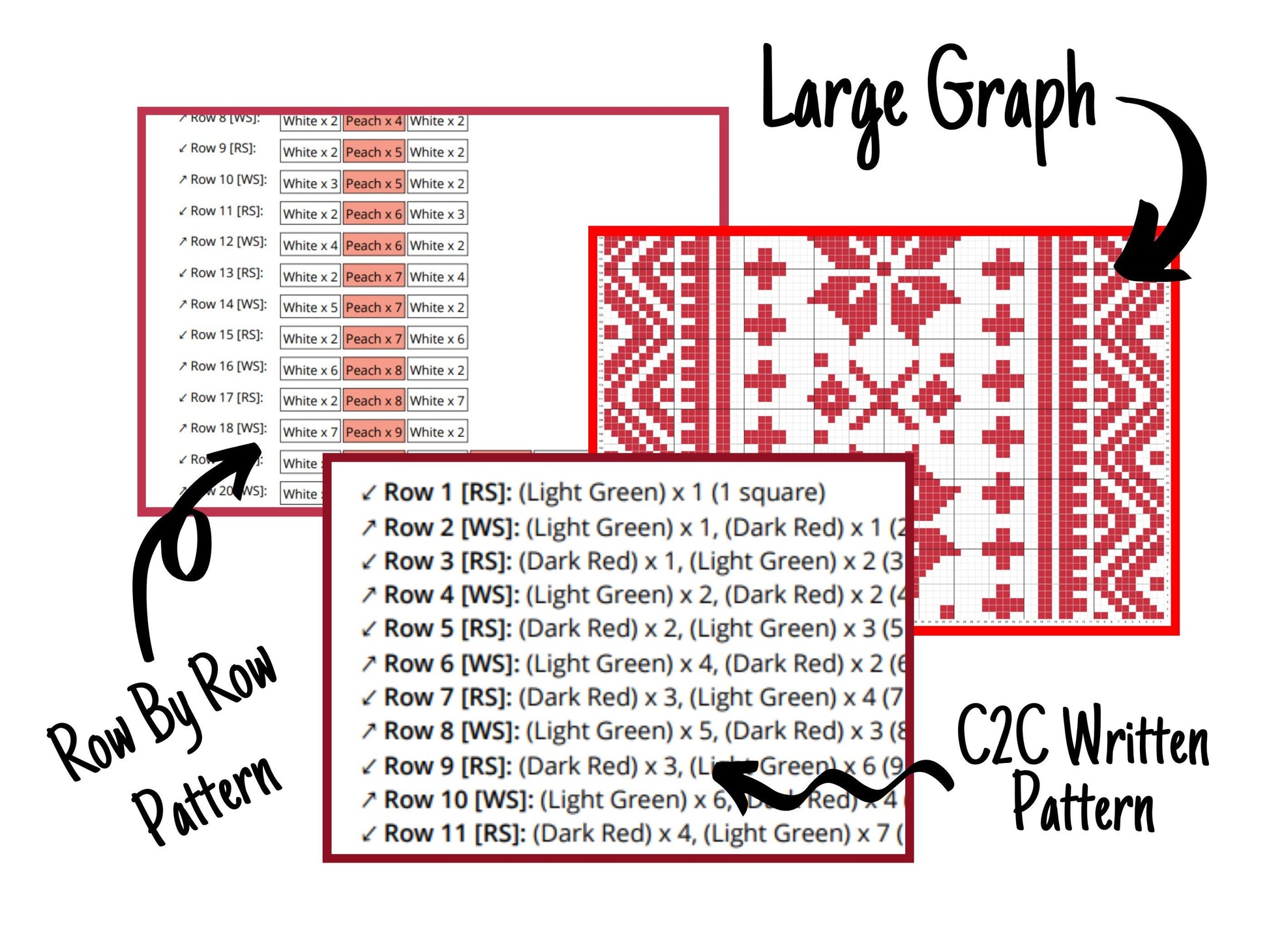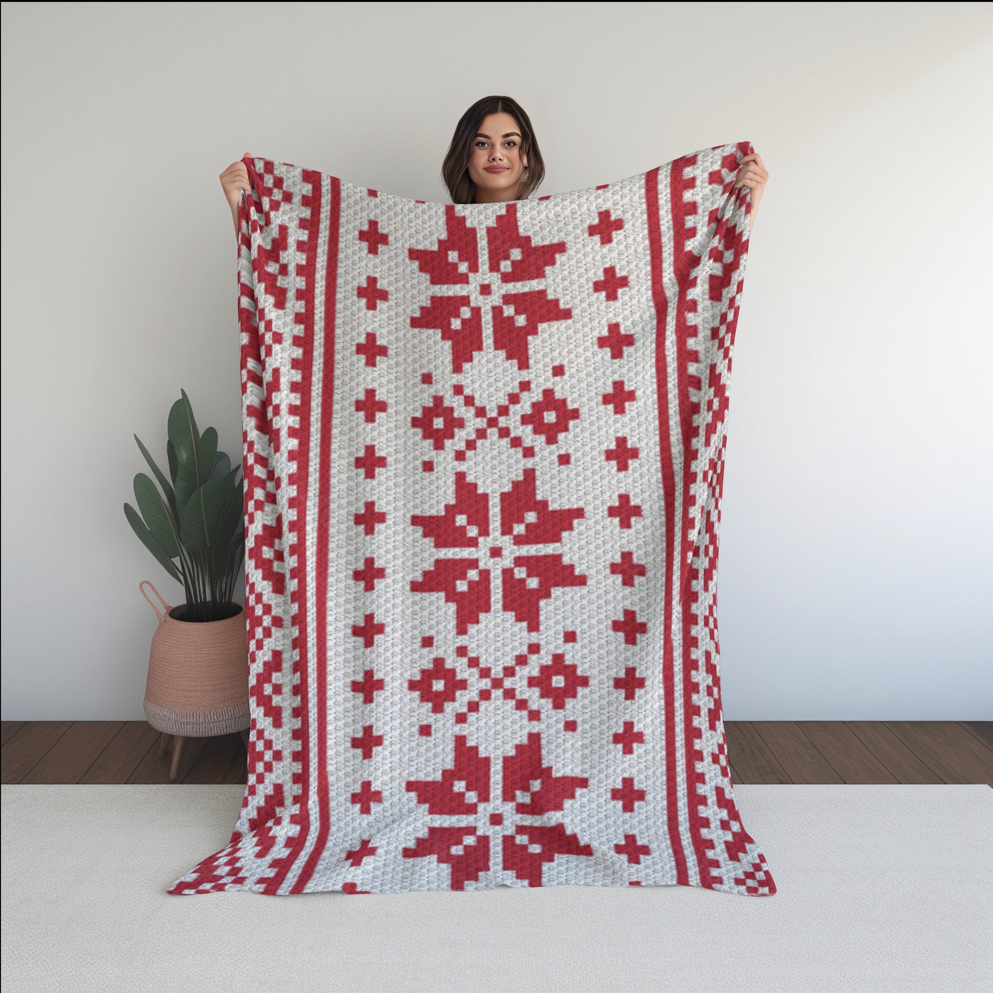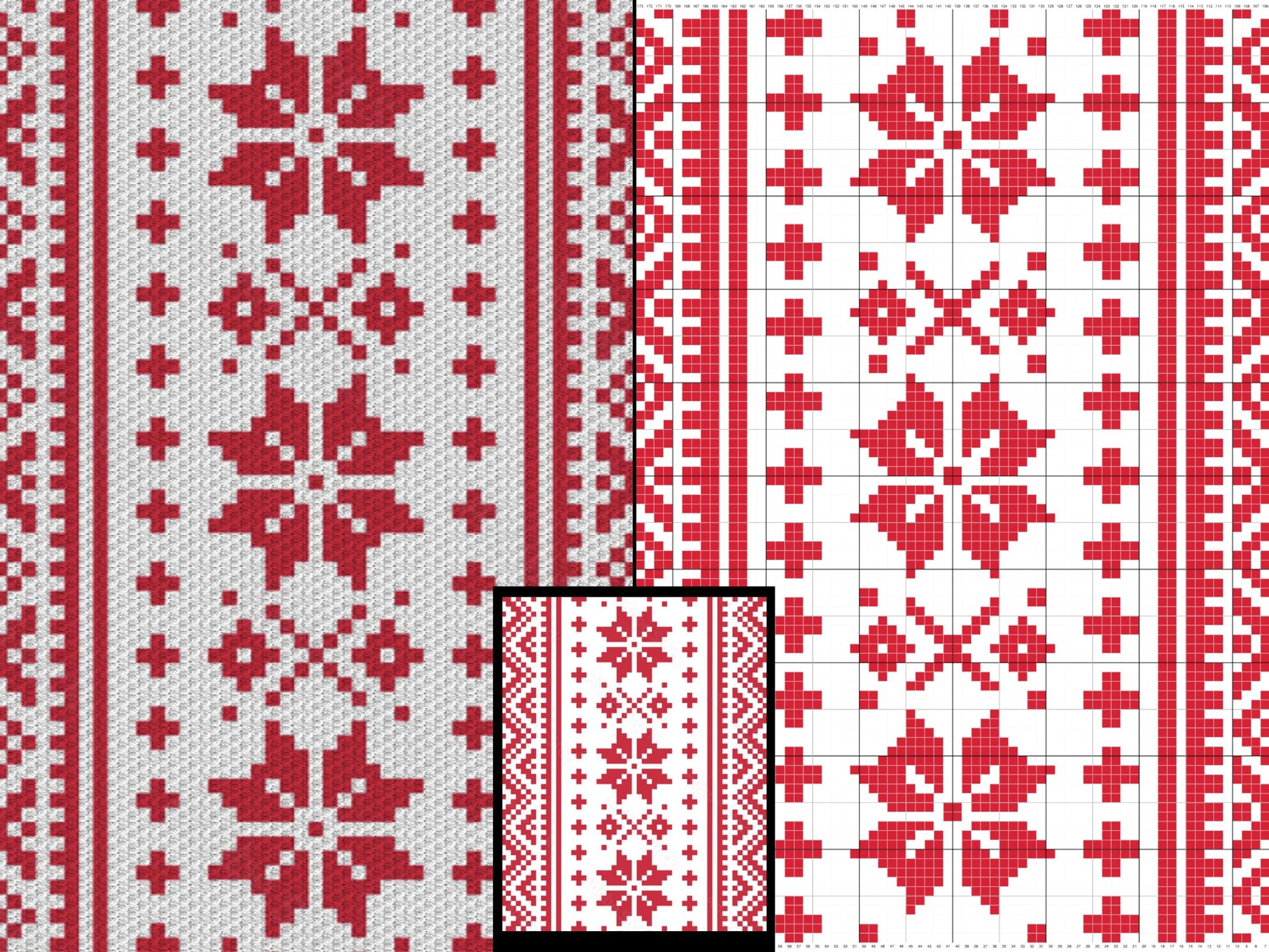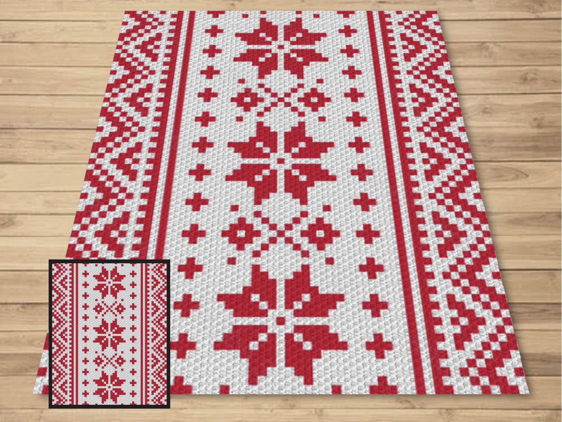 Nordic Winter Pattern Crochet Blanket With Tapestry & C2C Crochet Written Pattern + Graph - C2C Nordic Afghan Red White Christmas Patterns
