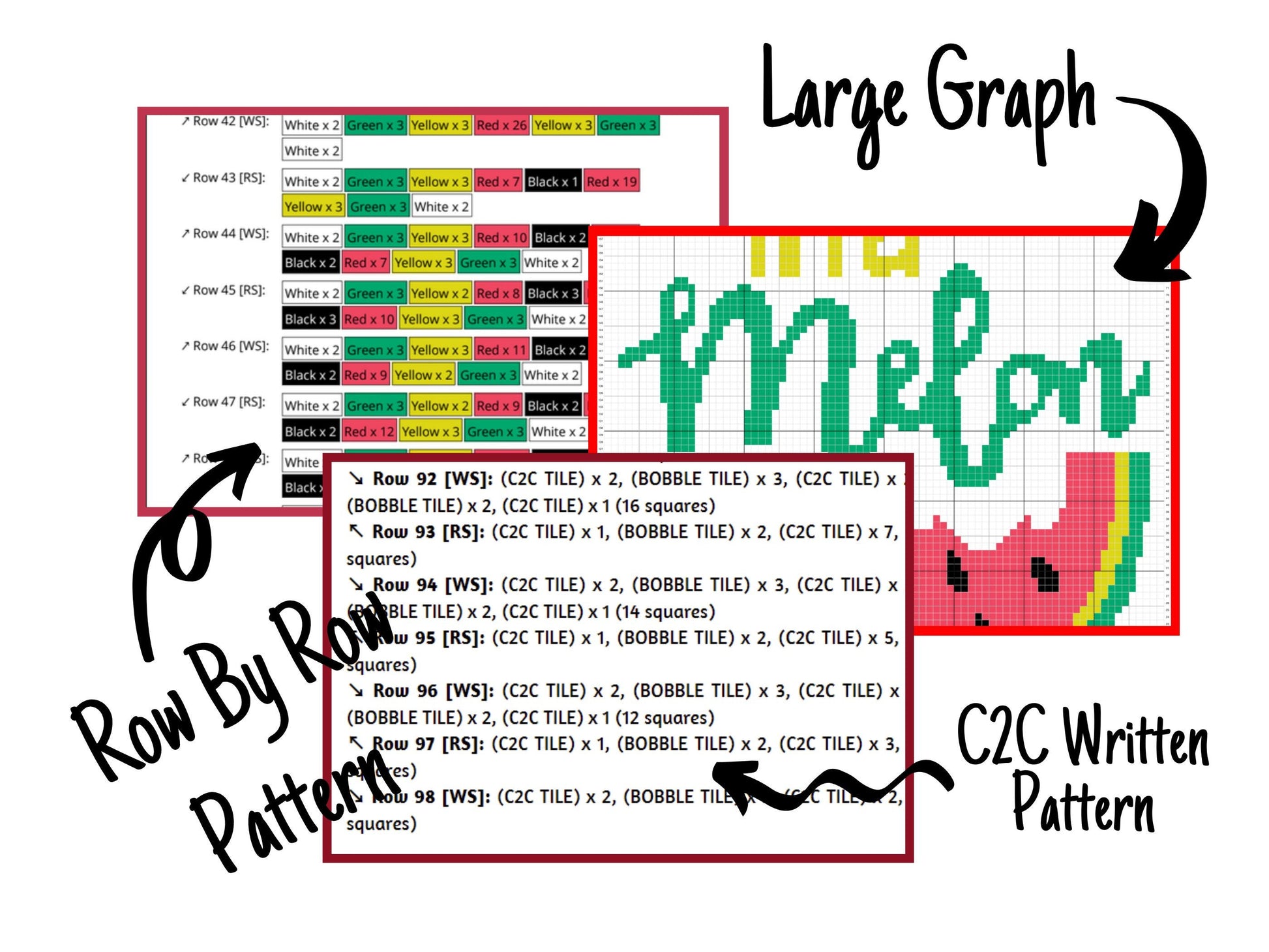 One In A Melon Graph + Written Pattern For C2C & Tapestry Crochet - C2C Quote Graphghan - Quote Crochet Blanket Summer Crochet Melon Afghan