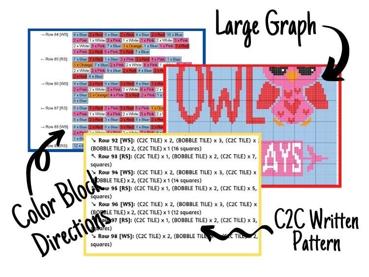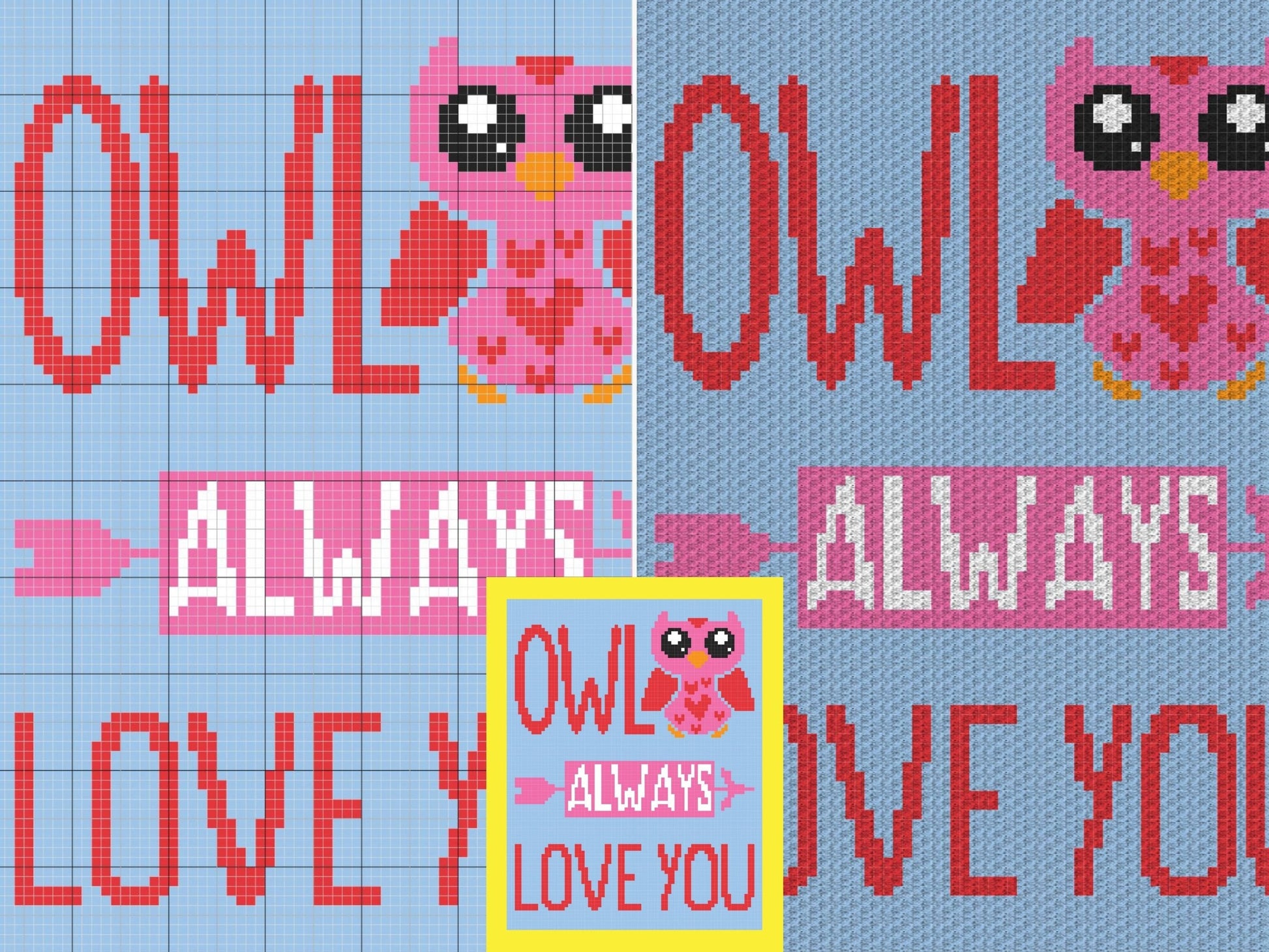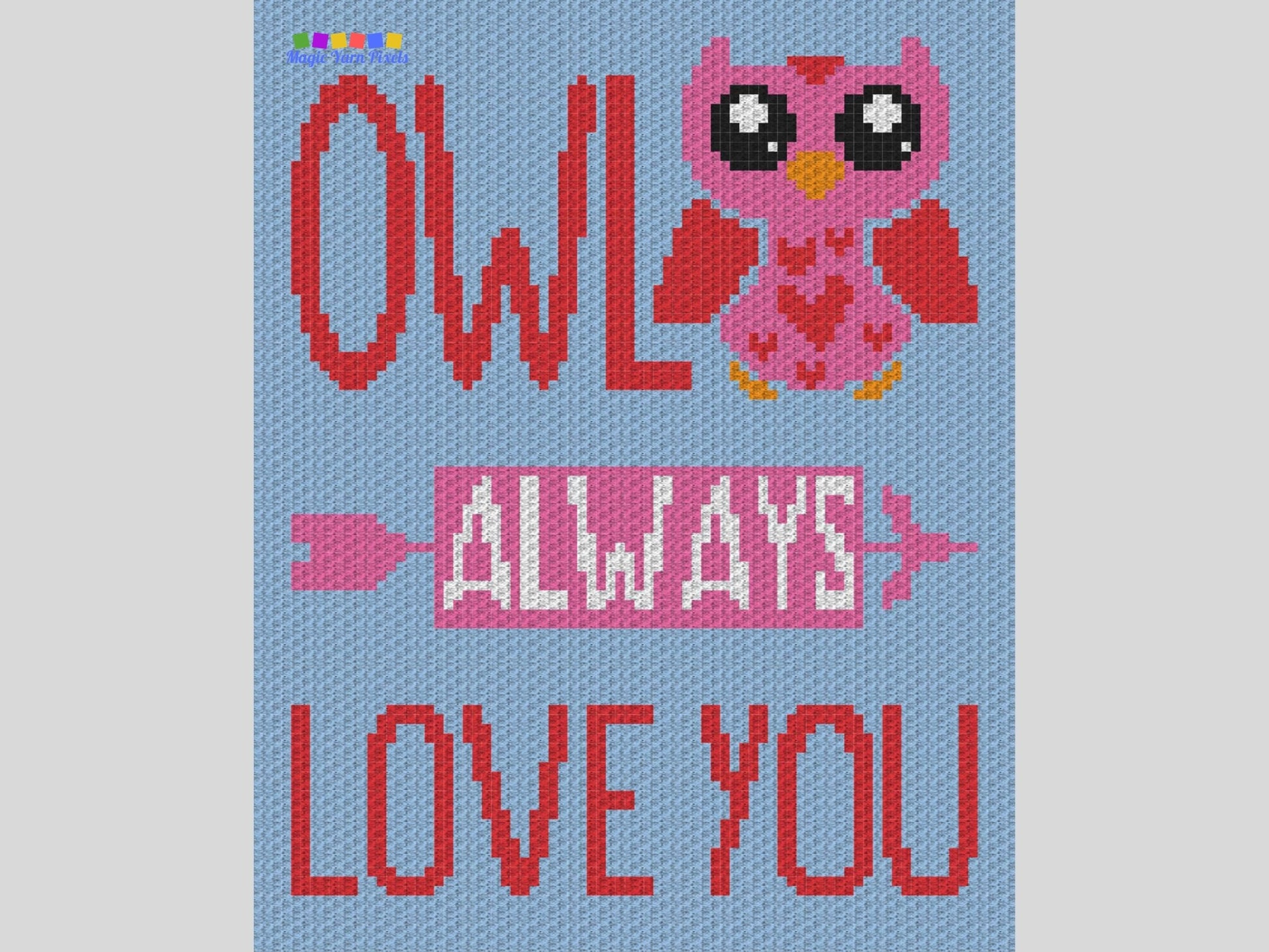 Owl Always Love You Graph + Written Pattern For C2C & Tapestry Crochet - Love Quote Crochet Pattern - Owl C2C Baby Blanket Baby Shower Gift