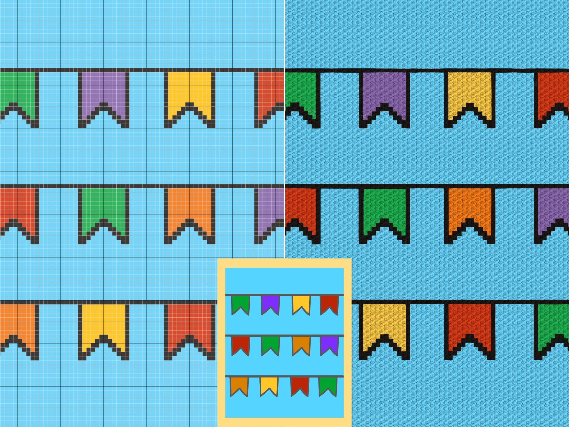 Party Bunting Graph and Pattern C2C & Tapestry Crochet - C2C Graphgan Birthday Crochet Blanket - C2C Birthday Party Baby Gift - Party Decors