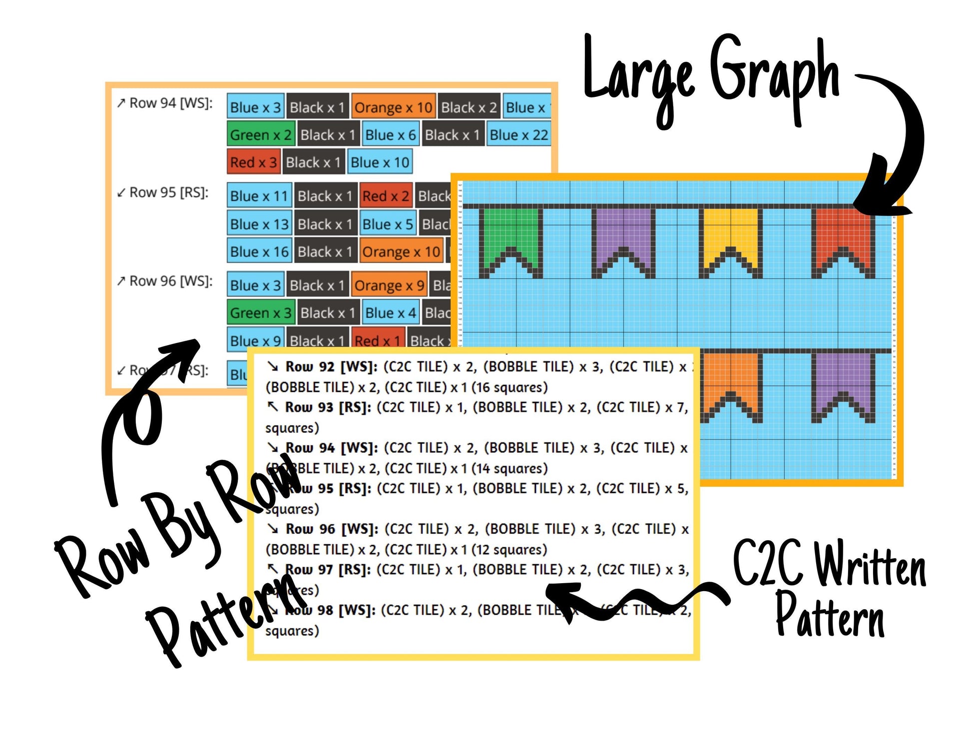 - the written c2c pattern (starts from the lower right corner)