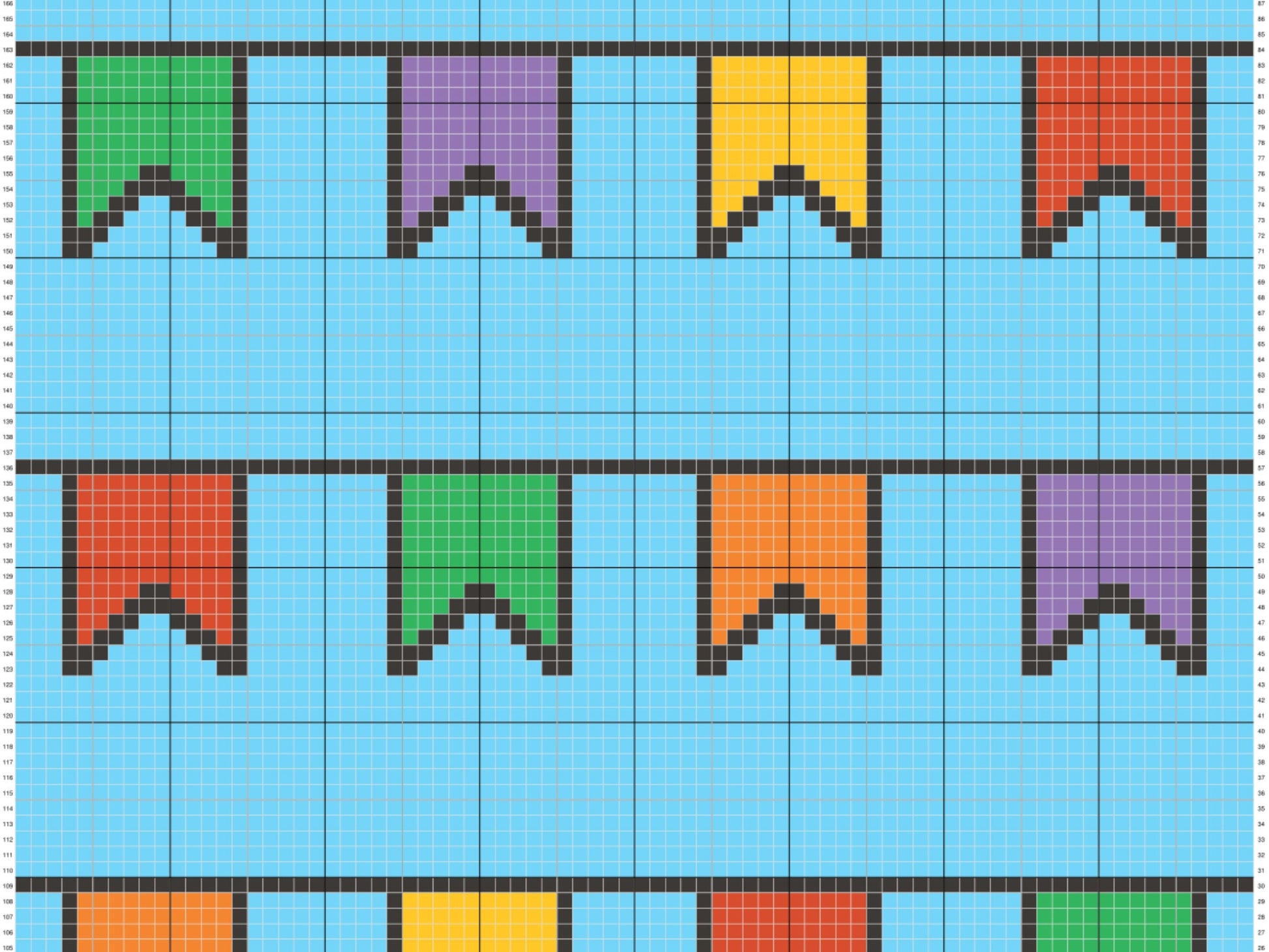 - the row by row color block pattern