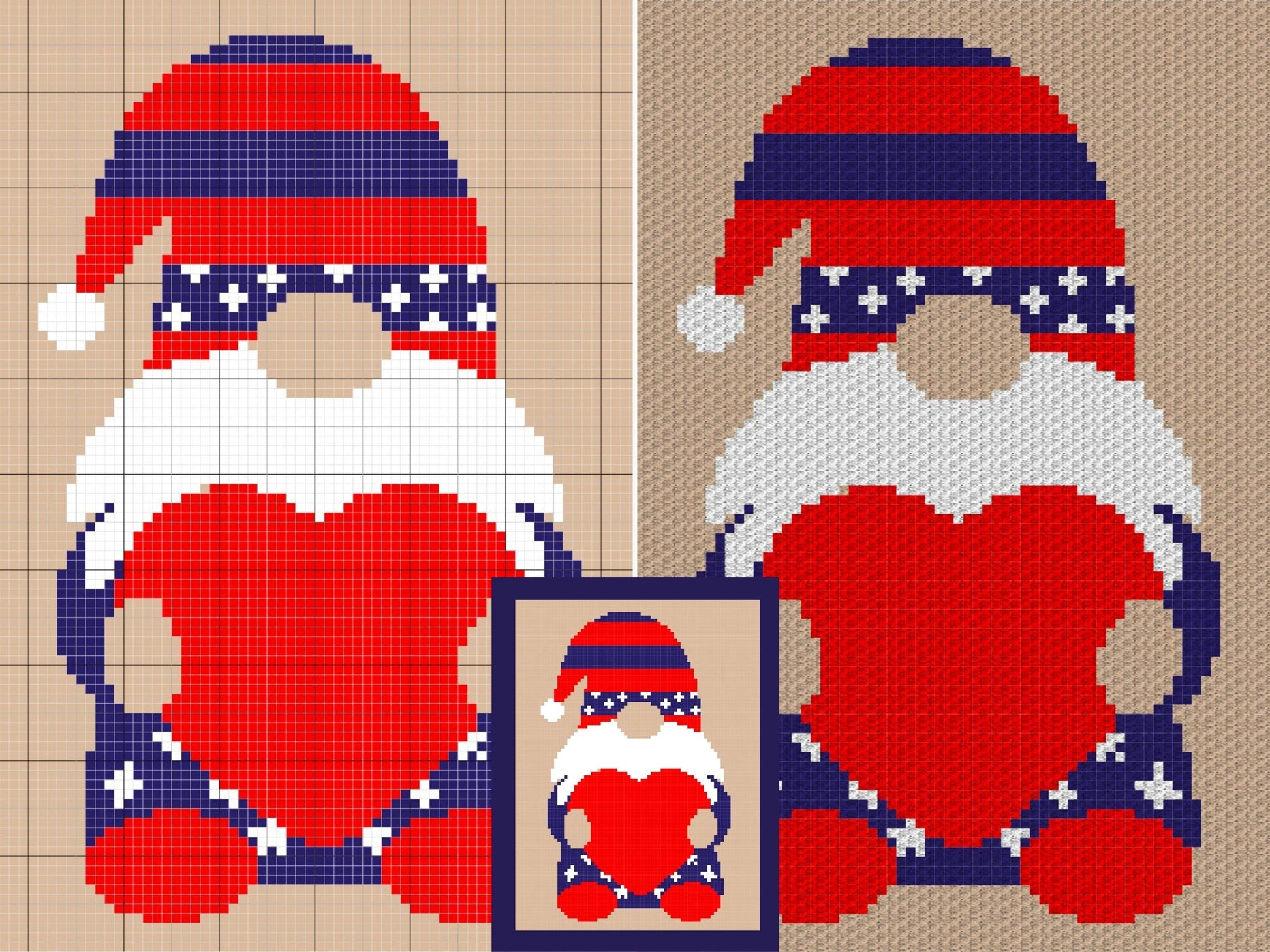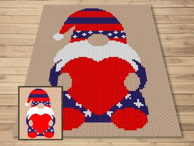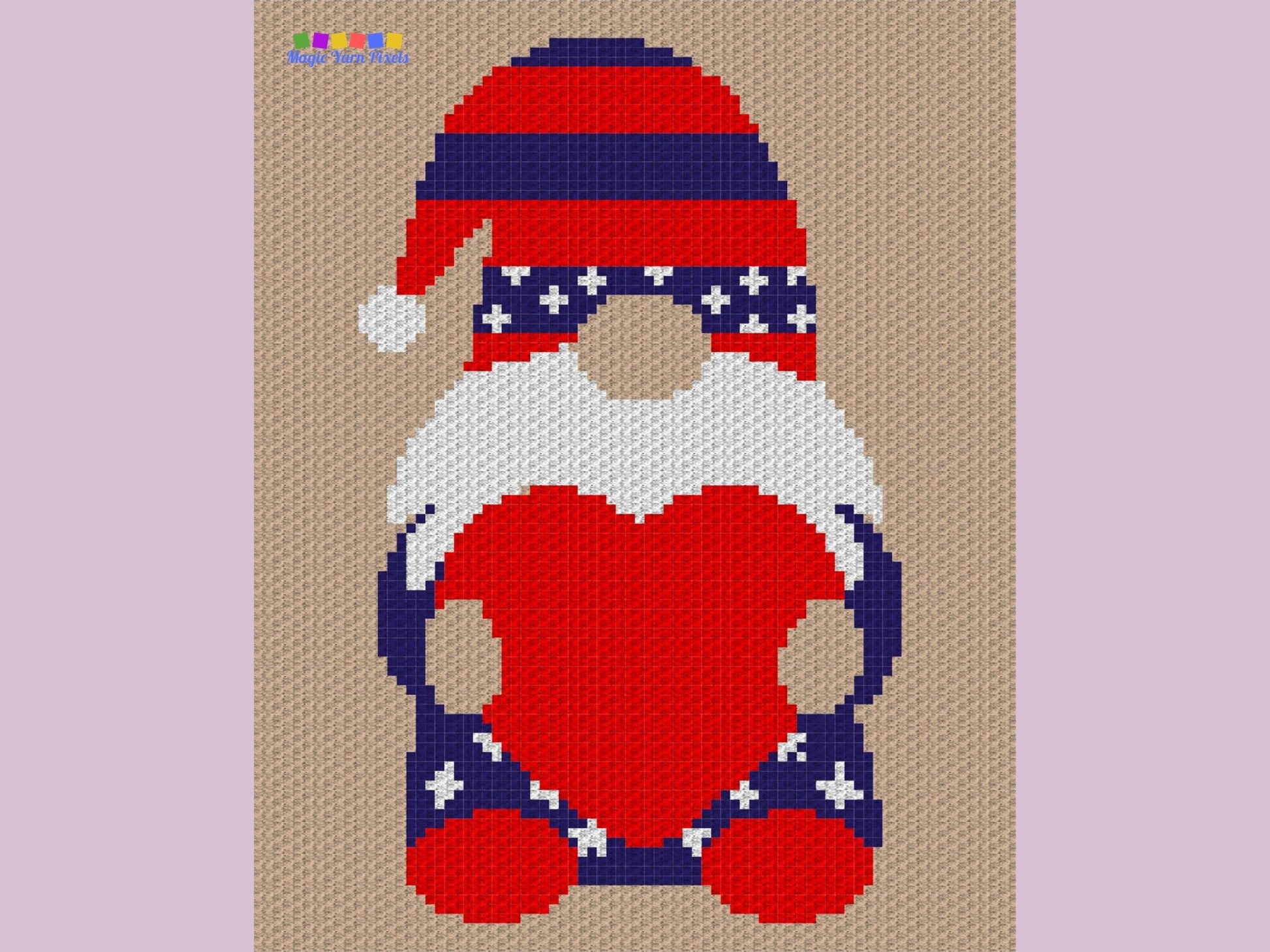 Patriotic Gnome Love Graph + Written Pattern For C2C & Tapestry Crochet - C2C Gnome Graphgan - Crochet Gnome Blanket - C2C Crochet Blanket