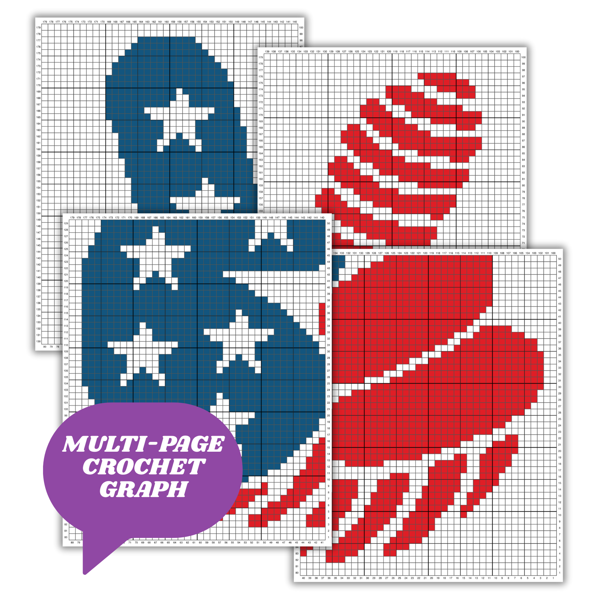 Patriotic Hand Pattern + Graph for C2C & Tapestry Crochet | Crochet 4th Of July C2C Blanket American Red White Blue Stars USA America Afghan