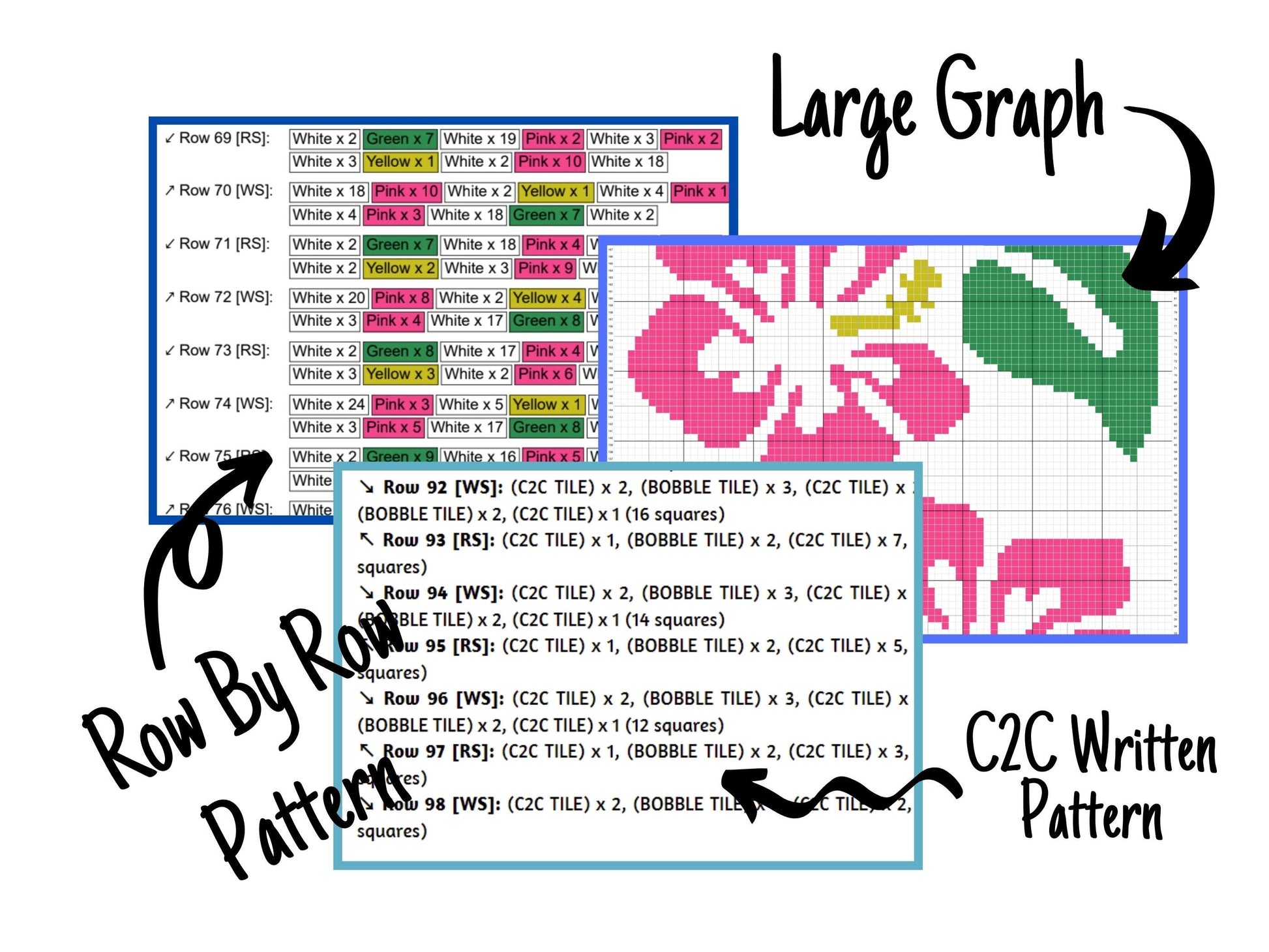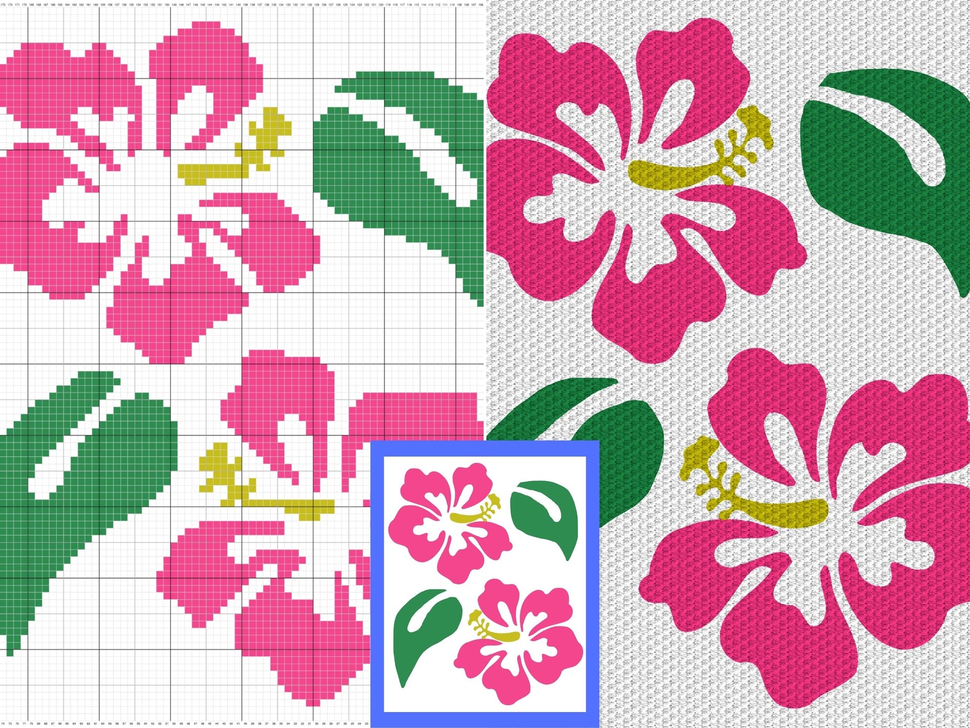 Pink Hawaiian Hibiscus Flower Graph and Pattern C2C & Tapestry Crochet - C2C Flower Graphgan - Crochet Beach Blanket C2C Floral Baby Blanket