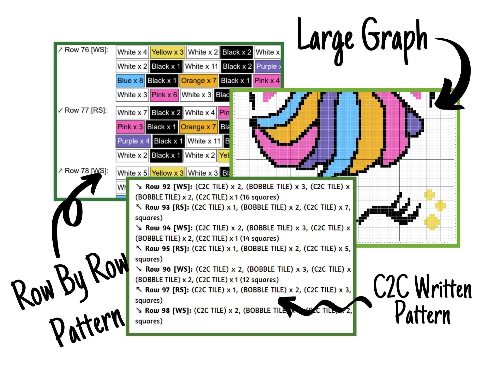 - the written c2c pattern (starts from the lower right corner)
