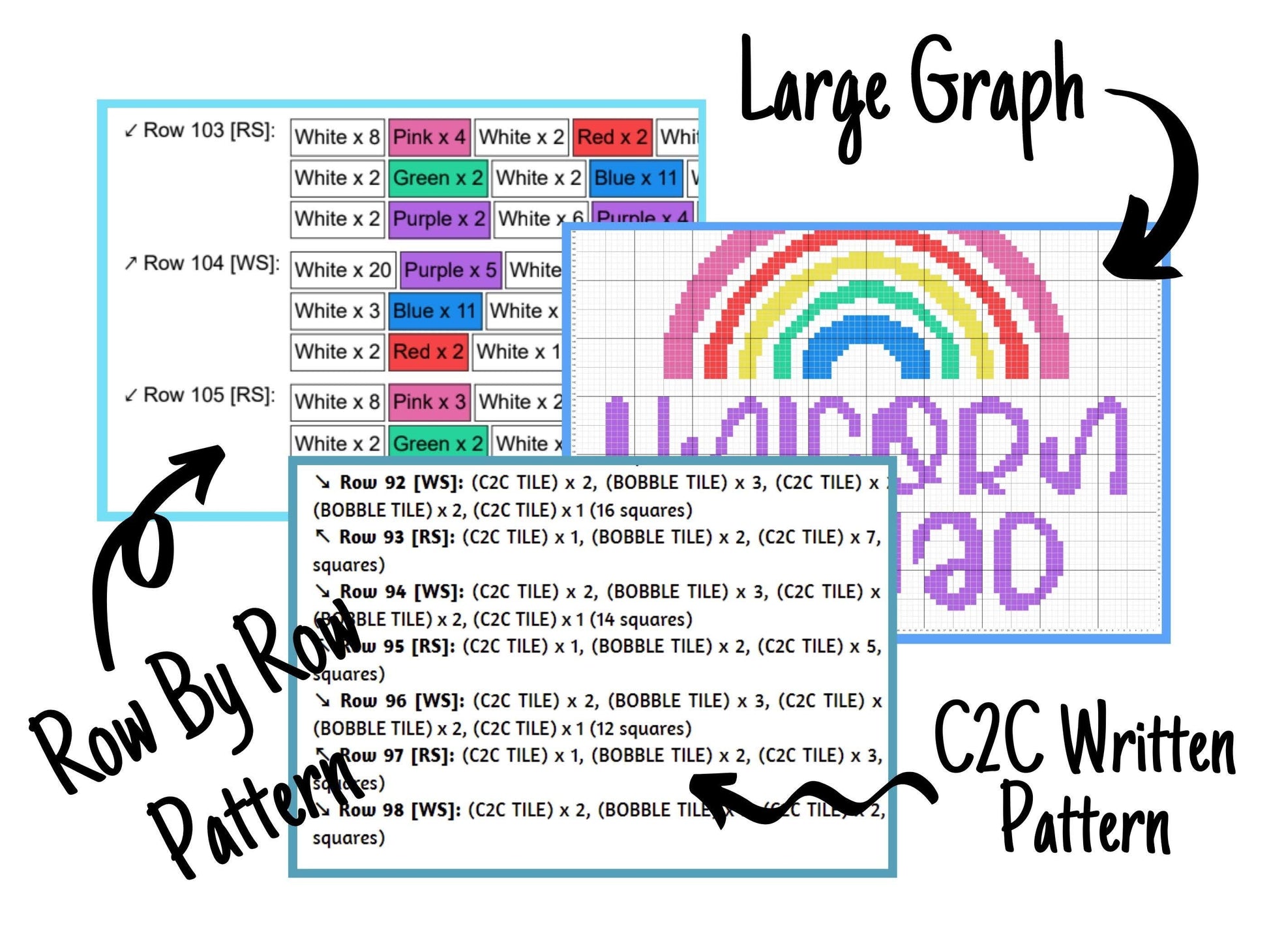 Rainbow Unicorn Squad Graph and Pattern C2C & Tapestry Crochet - Rainbow C2C Graphgan - Rainbow Unicorn Crochet - C2C Rainbow Baby Blankets
